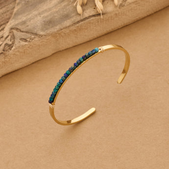 Bracelet    - Stainless steel - Azurite Natural Stone - Gemstone  - Brass wire - 18k real vacuum plating