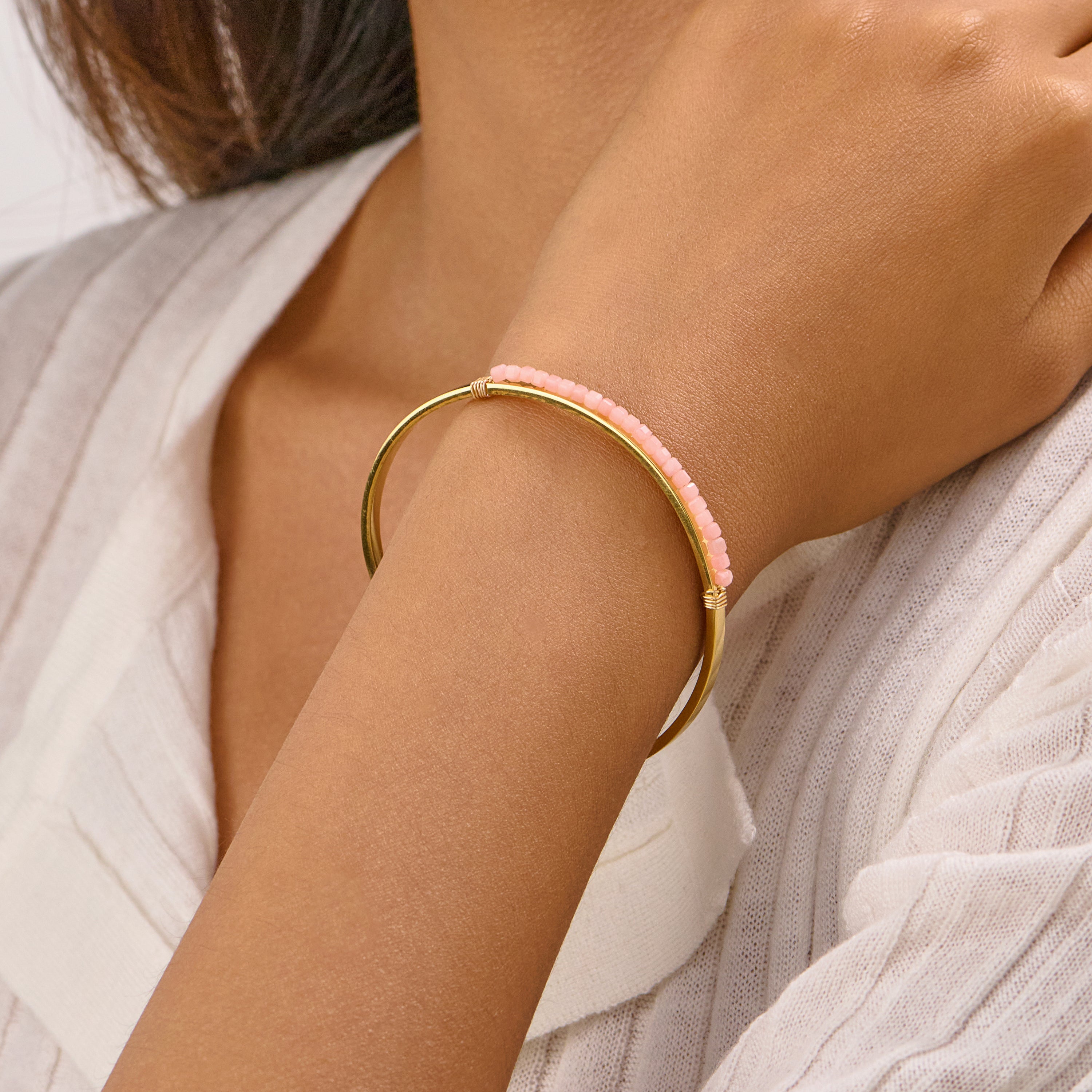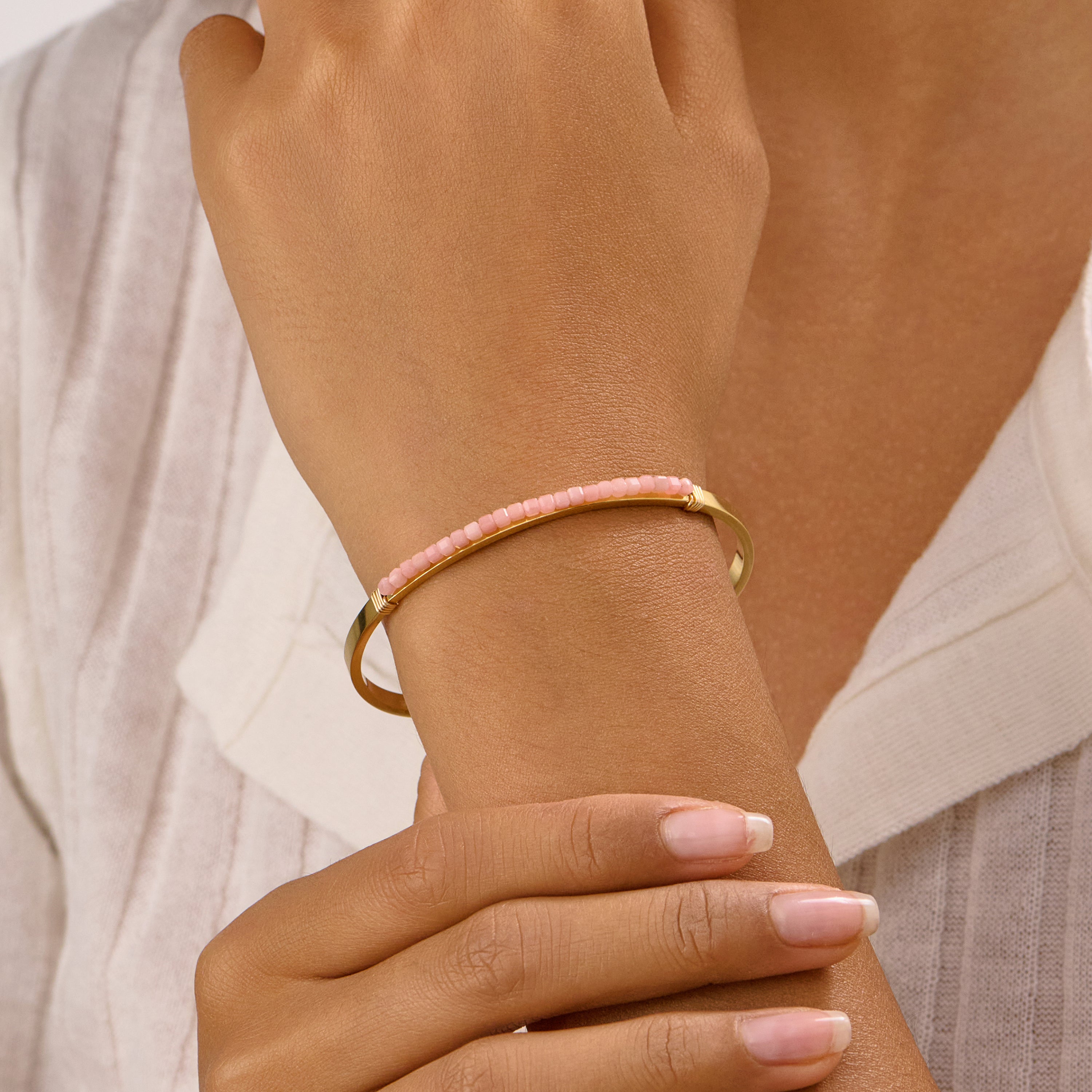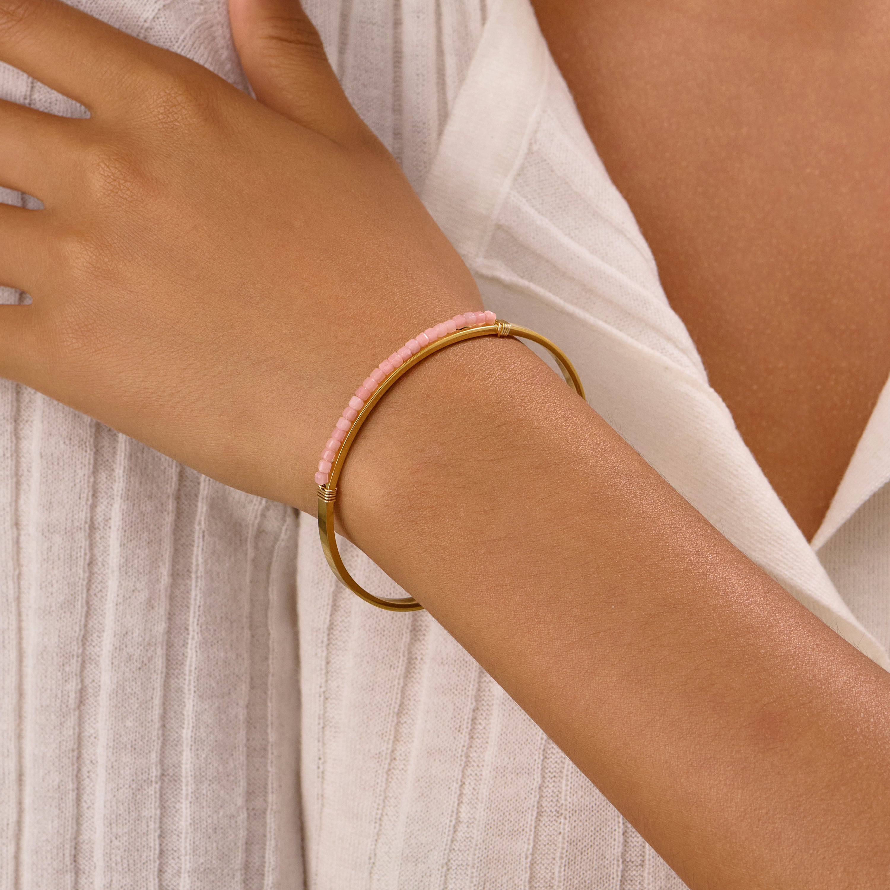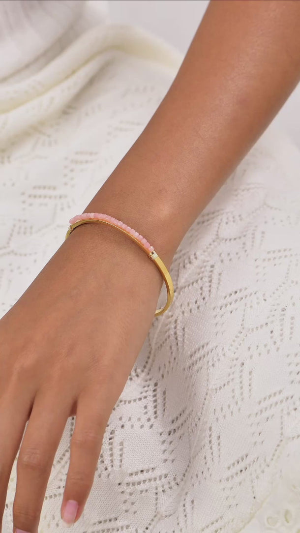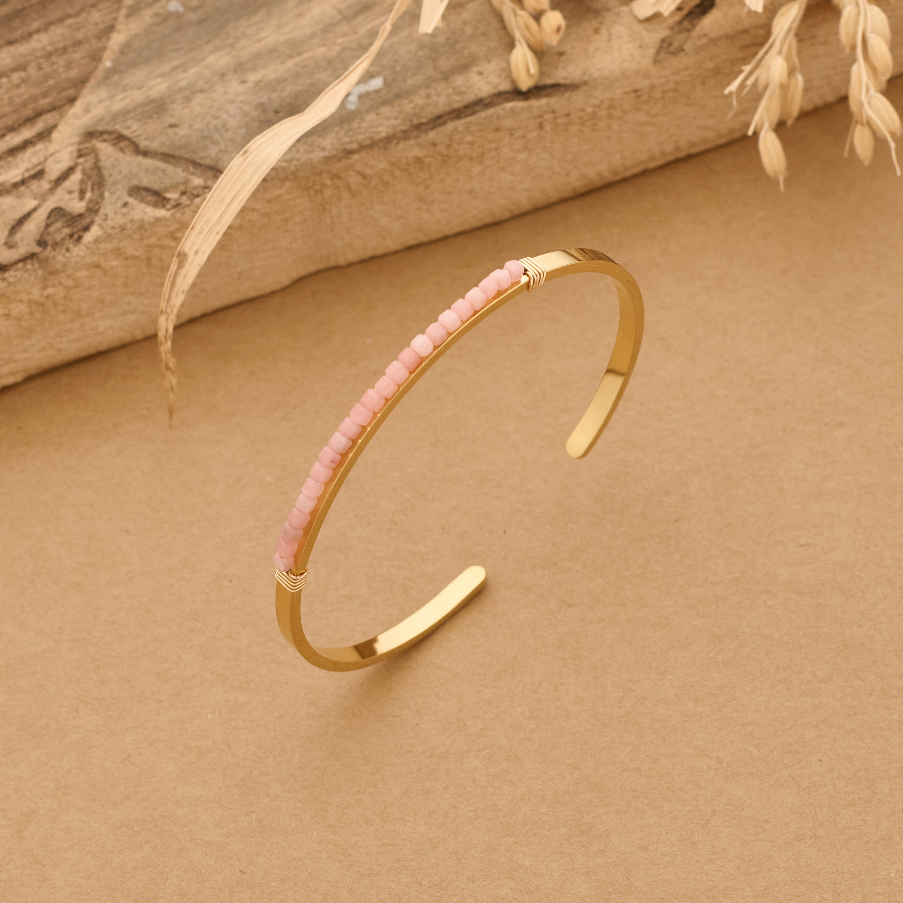 Bracelet - Stainless steel - Pink opal Natural Stone - Gemstone - Brass wire - 18k real vacuum plating