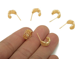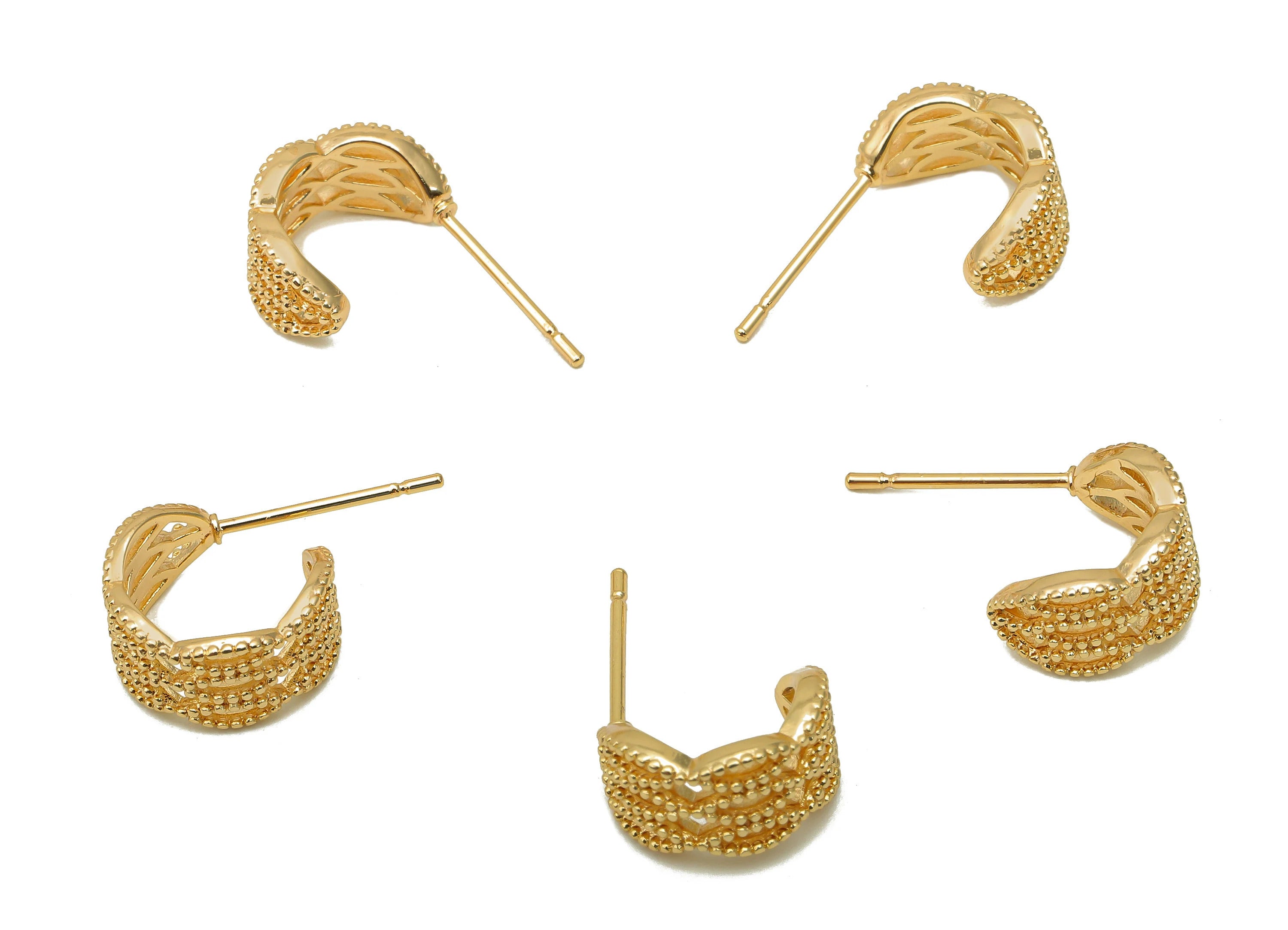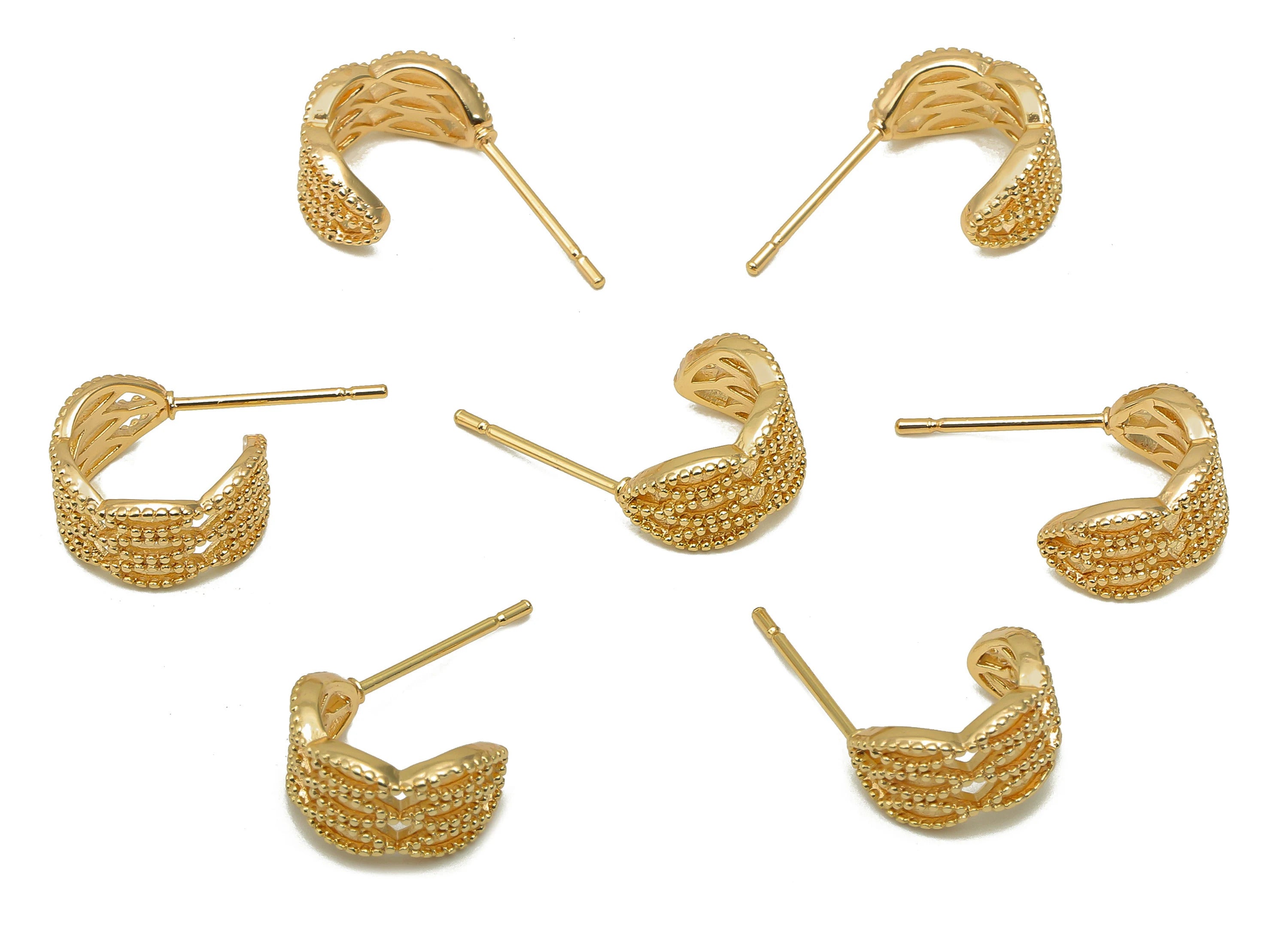 推回式耳钉 - 黄铜 - 316 不锈钢耳钉 - 18k 真金镀黄铜 - 3.7 克 - MJ200307