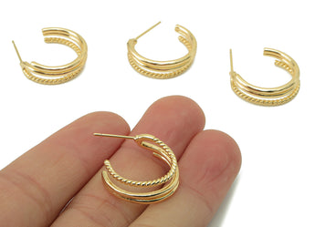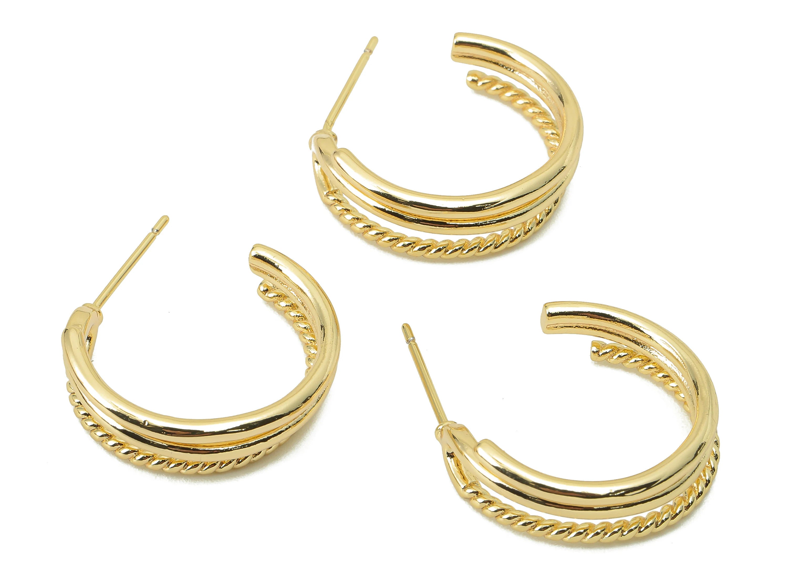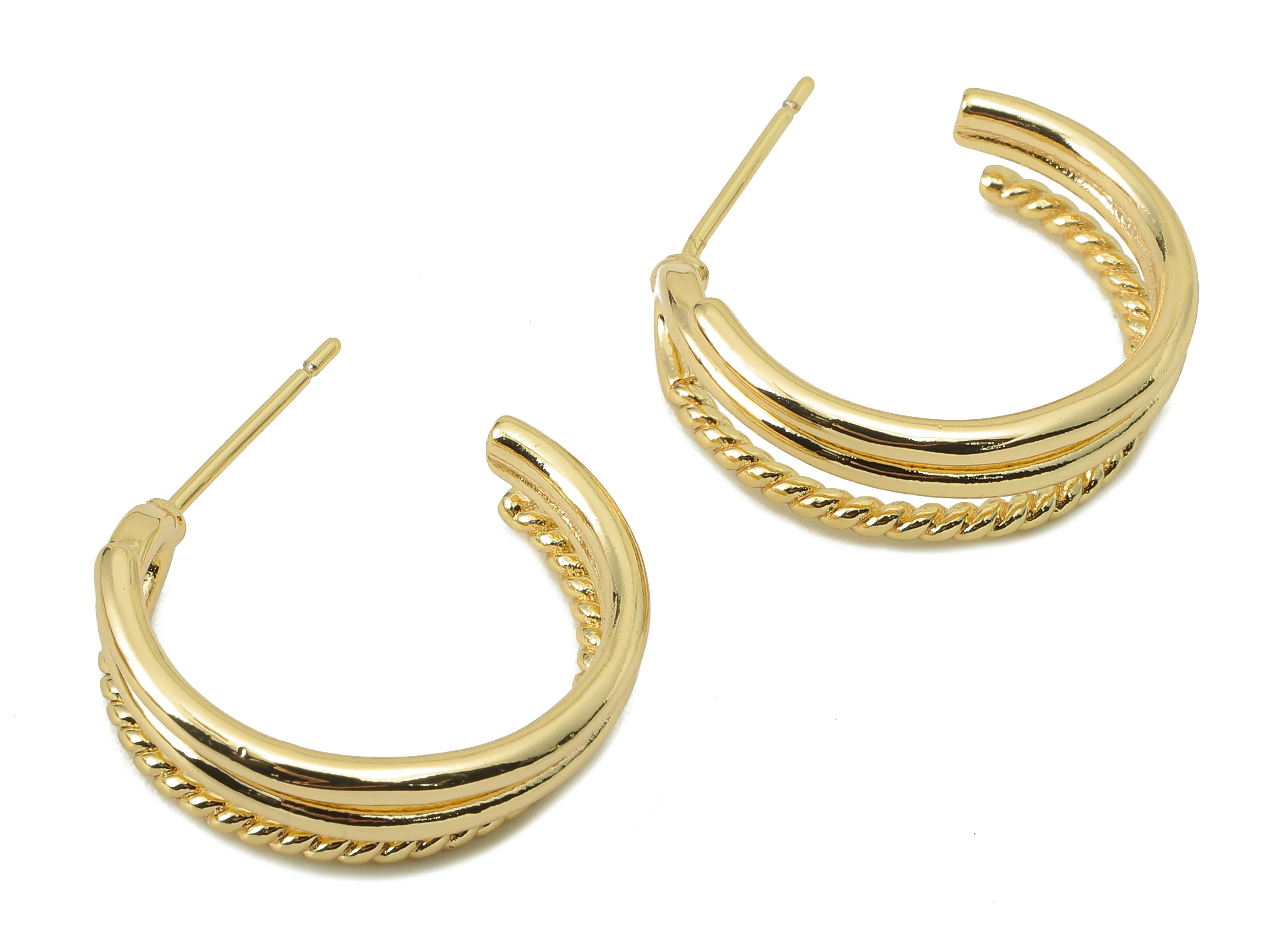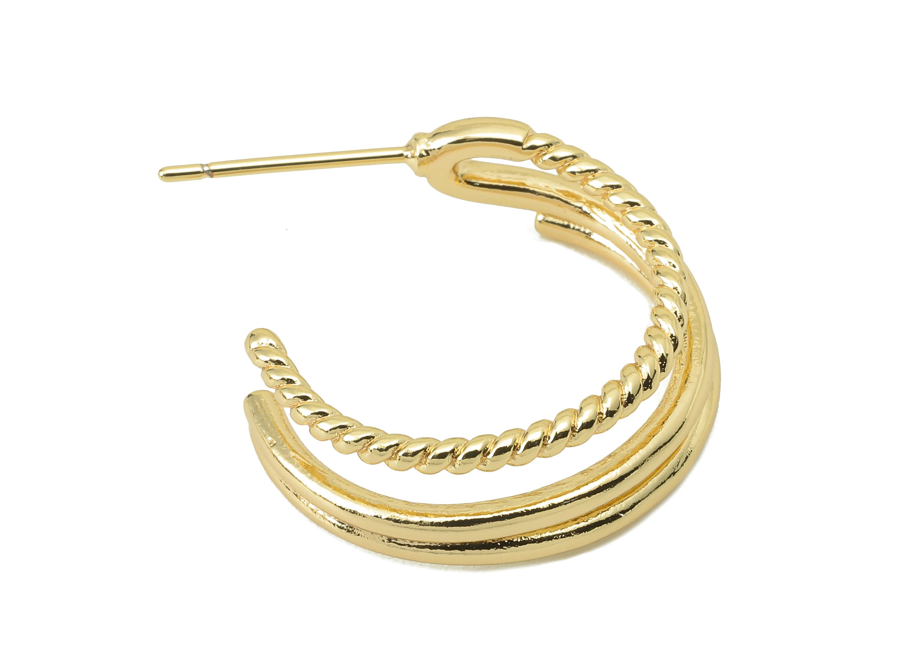 推回式耳钉 - 黄铜 - 316 不锈钢耳钉 - 18K 真金镀黄铜 - 7 克 - MJ200382
