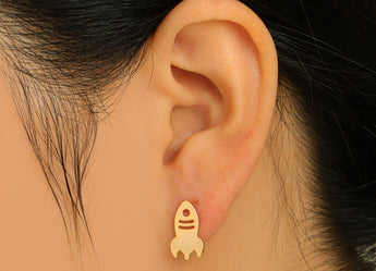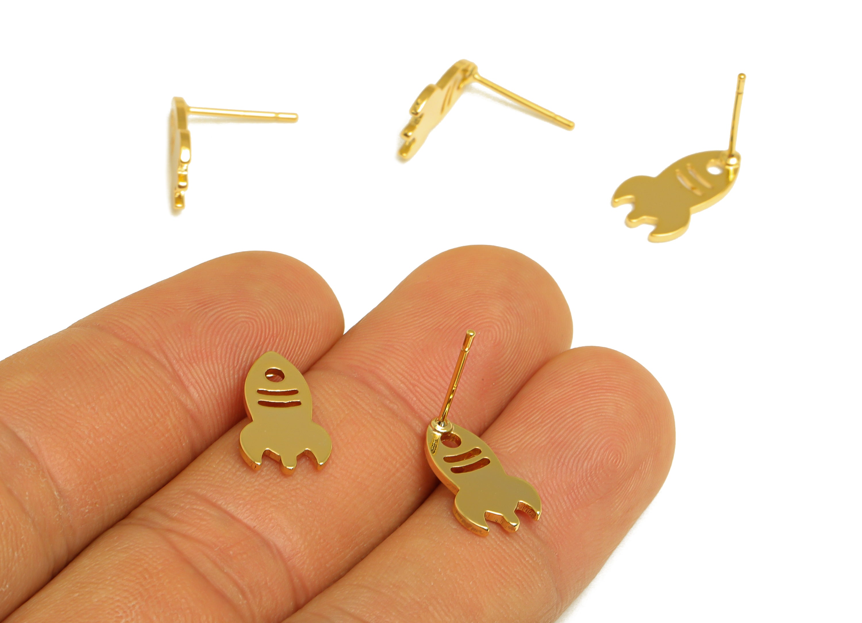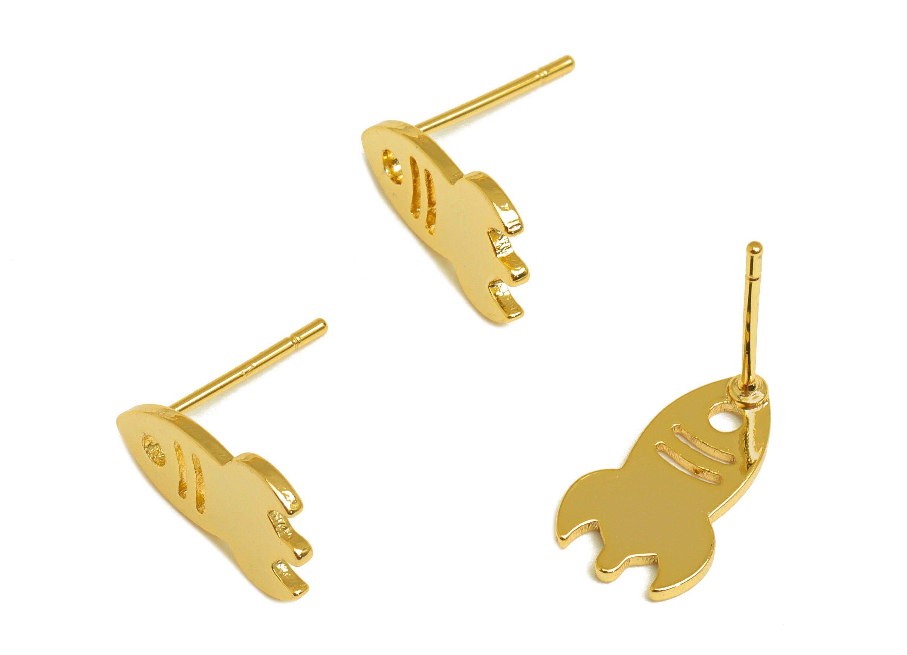 推回式耳钉 - 黄铜 - 316 不锈钢耳钉 - 18k 真金镀层 - 1.6 克 - MJ102688