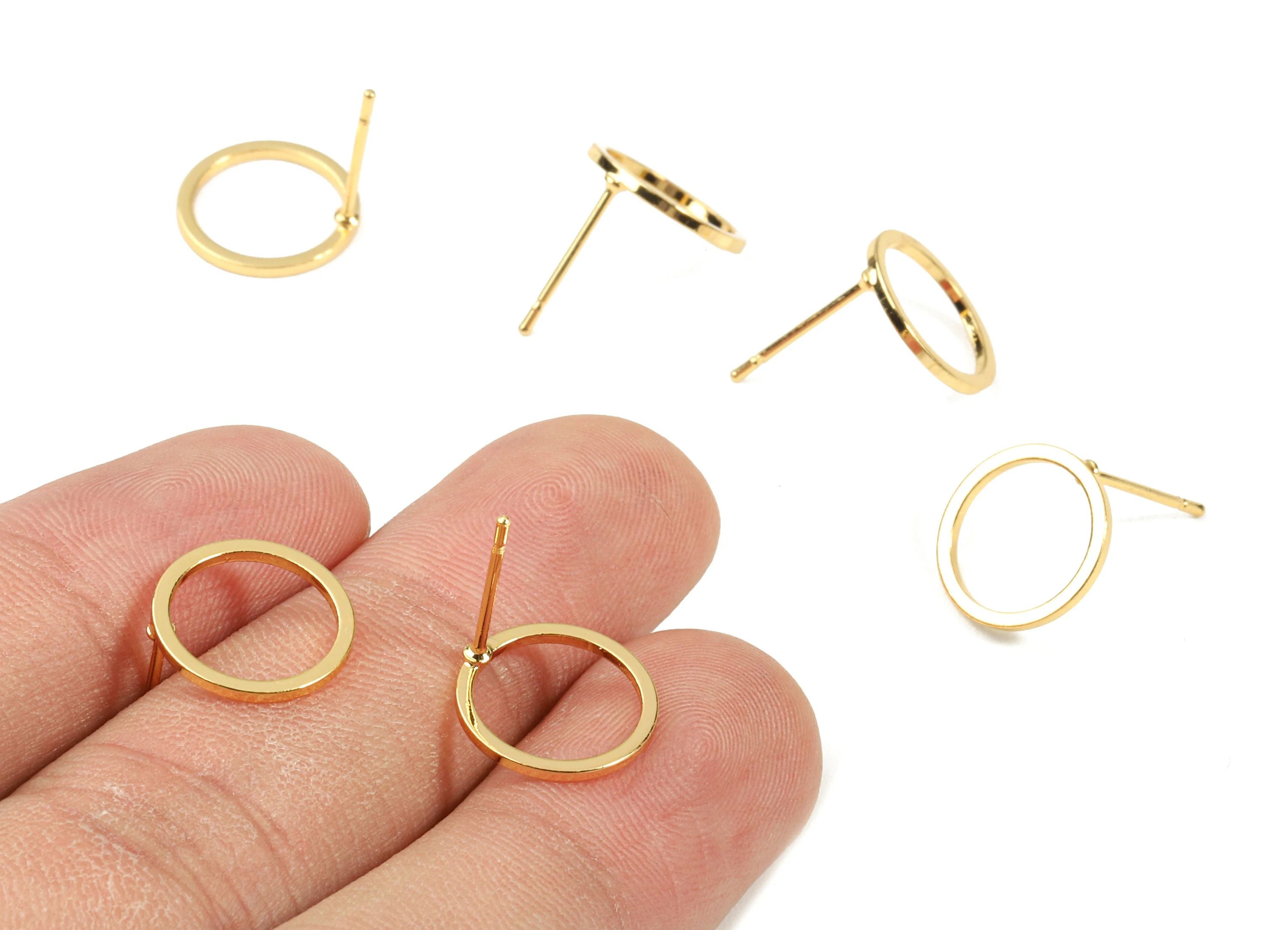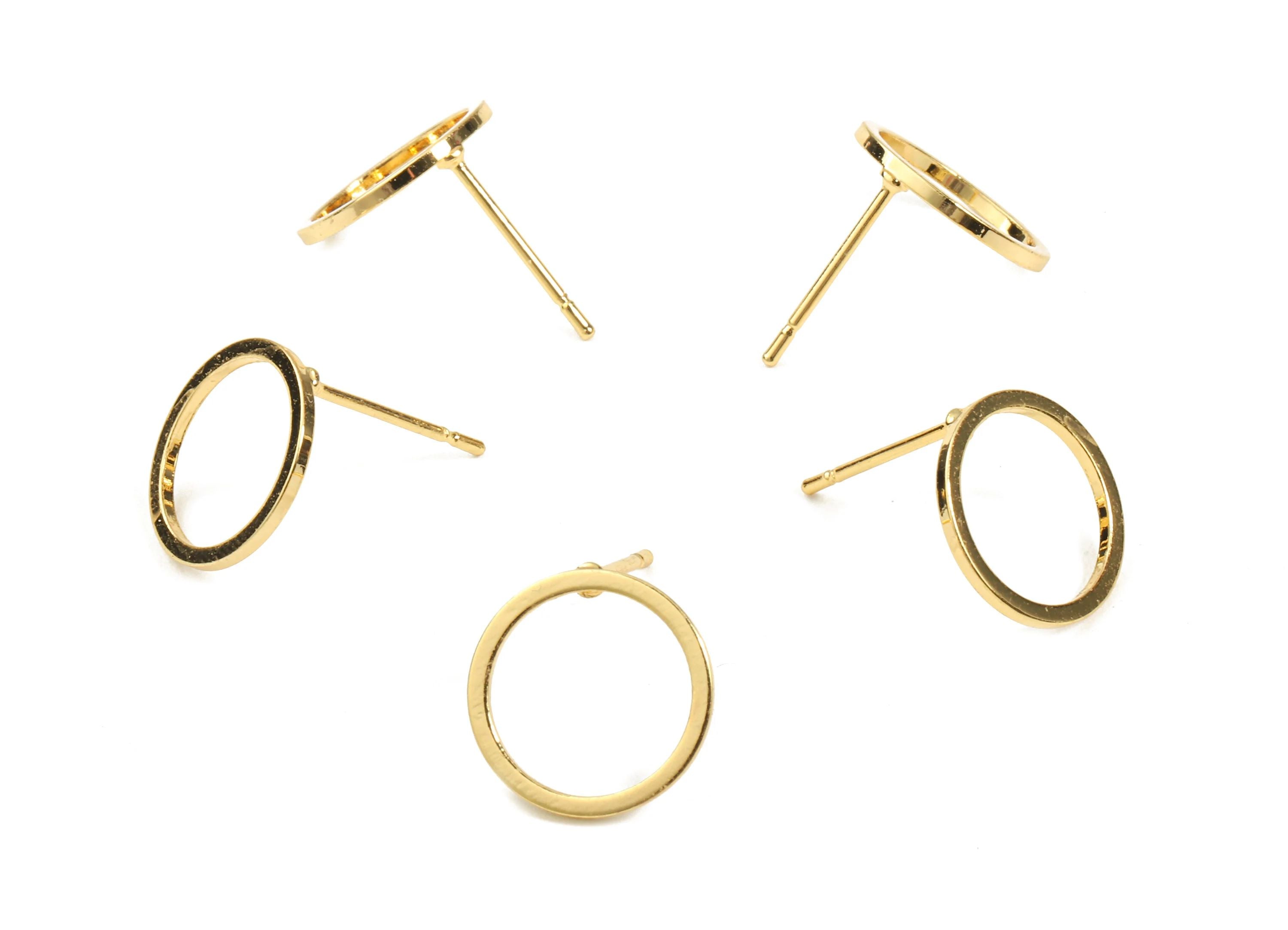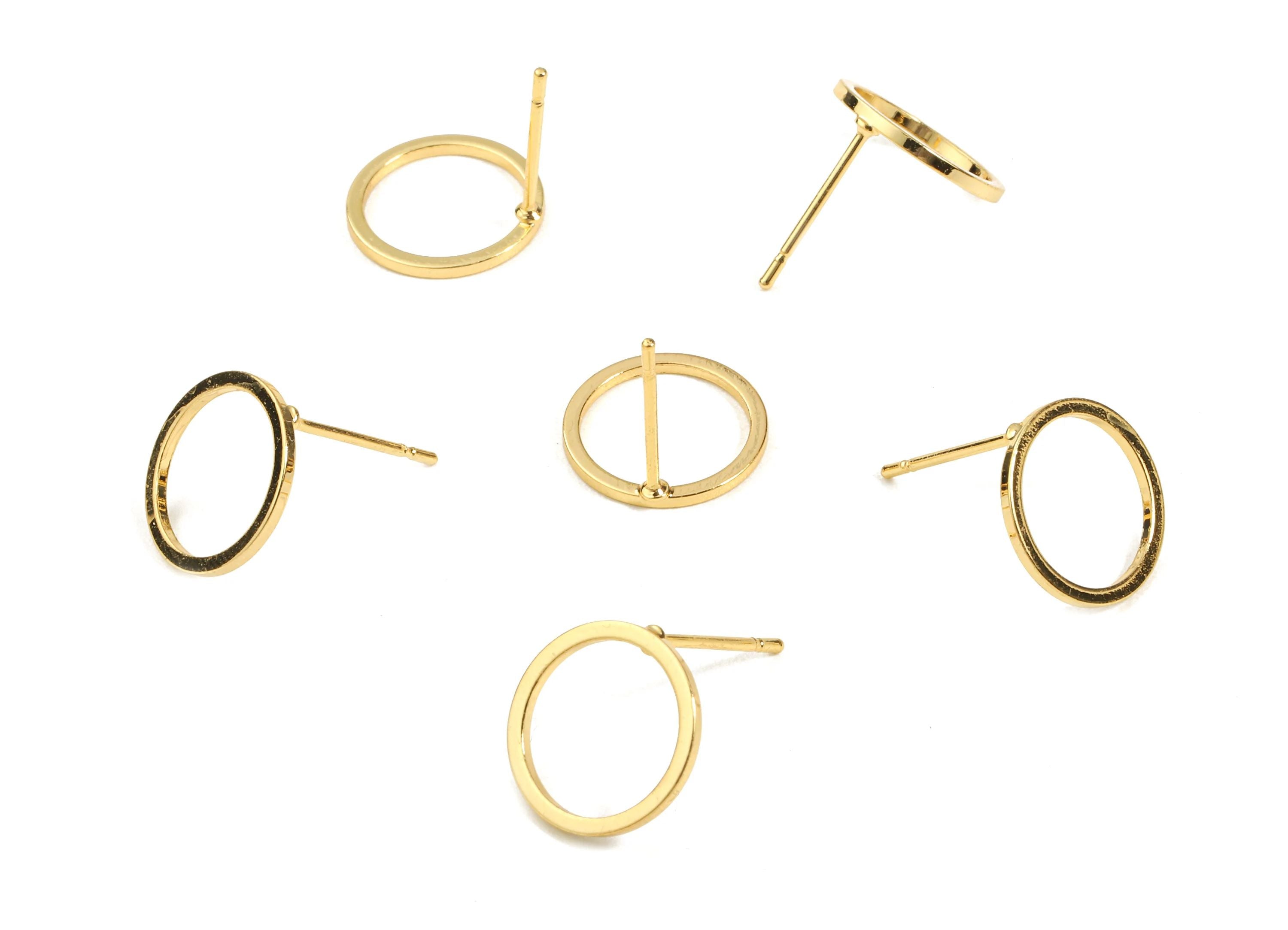 推回式耳钉 - 黄铜 - 316 不锈钢耳钉 - 18k 真金镀层 - 2.7 克 - MJ200298