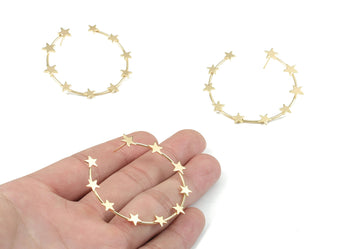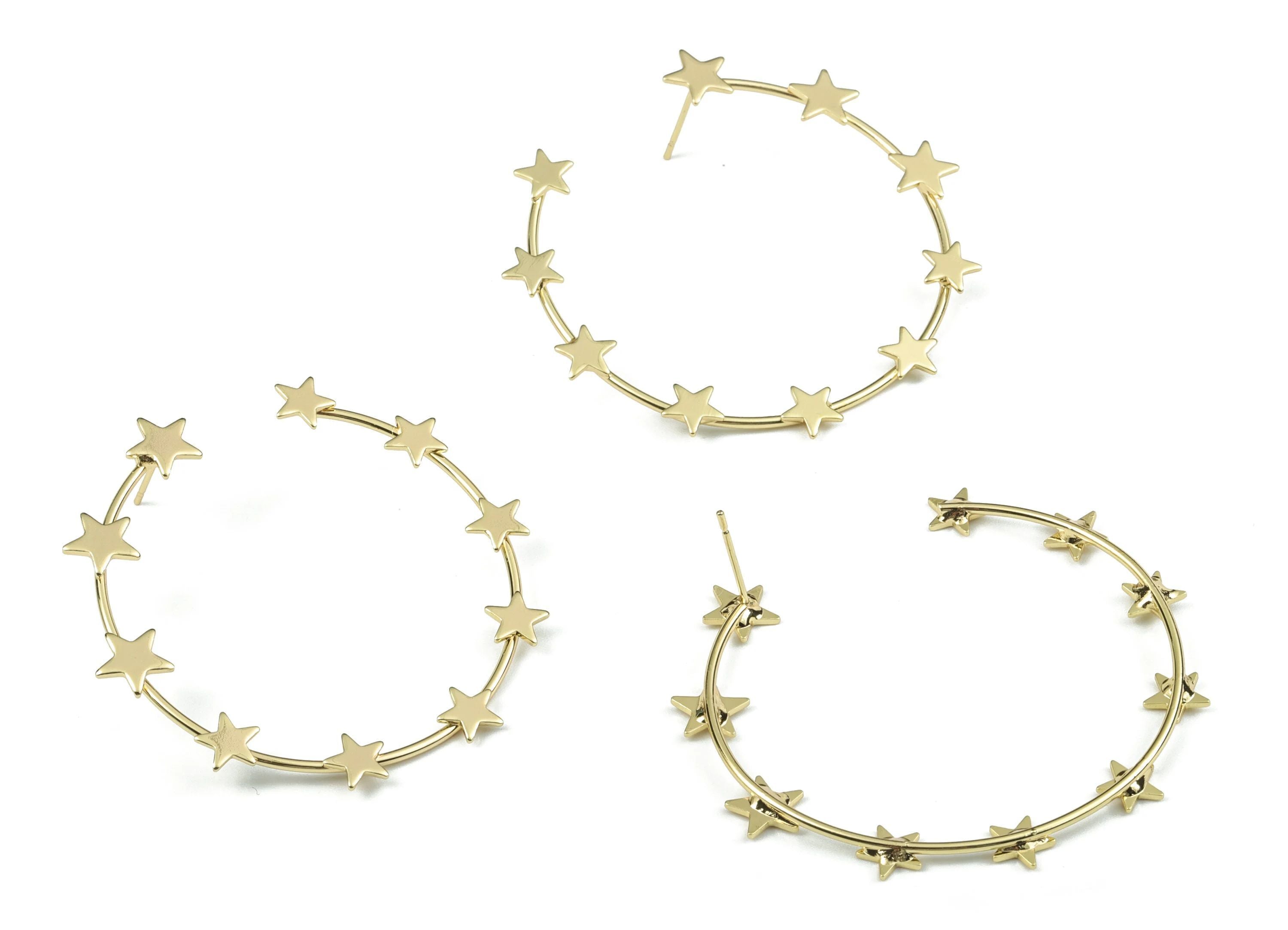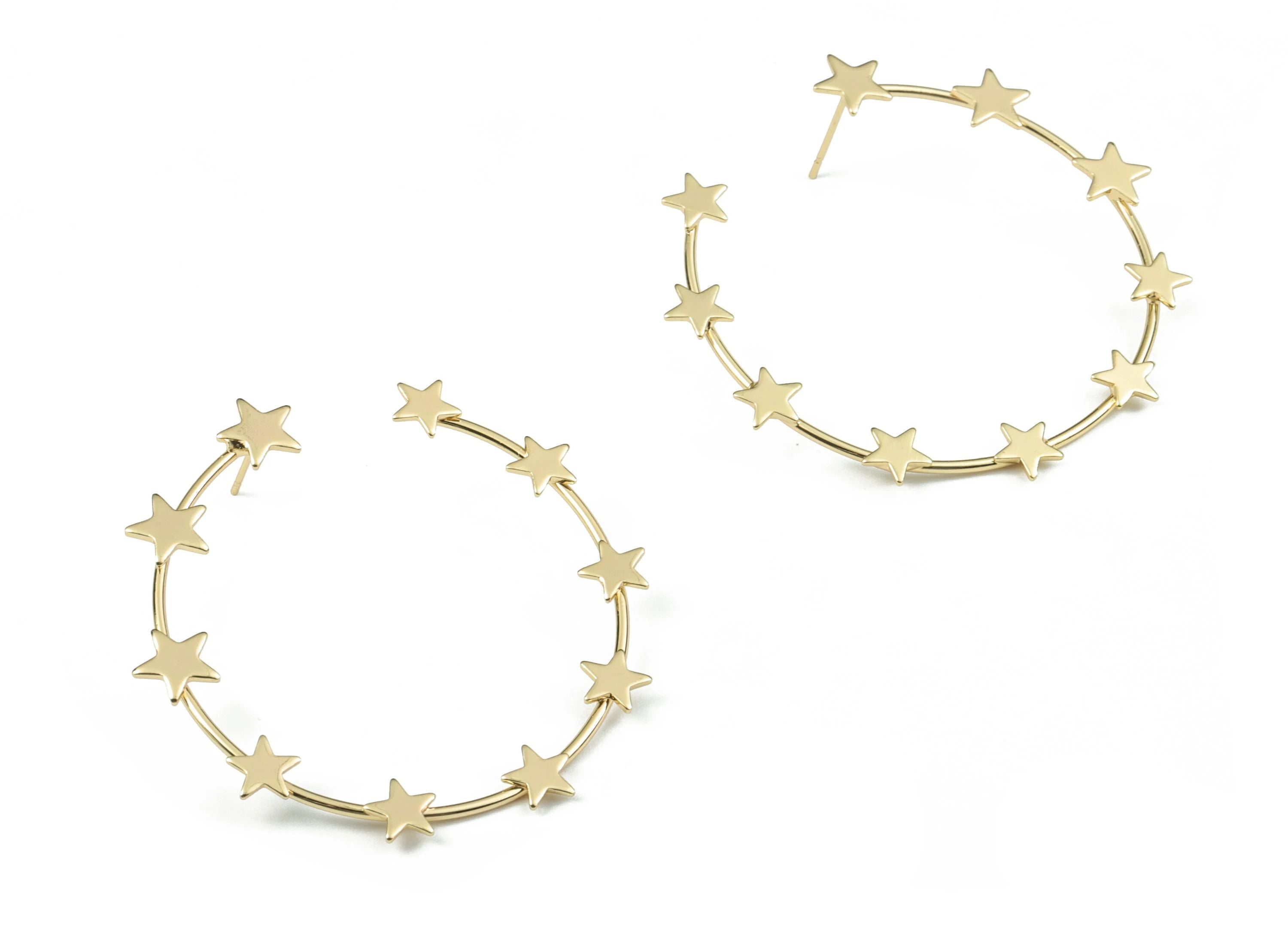推回式耳钉 - 黄铜 - 316 不锈钢外科耳钉 - 18K 真金镀黄铜 - 8.4 克 - MJ200338