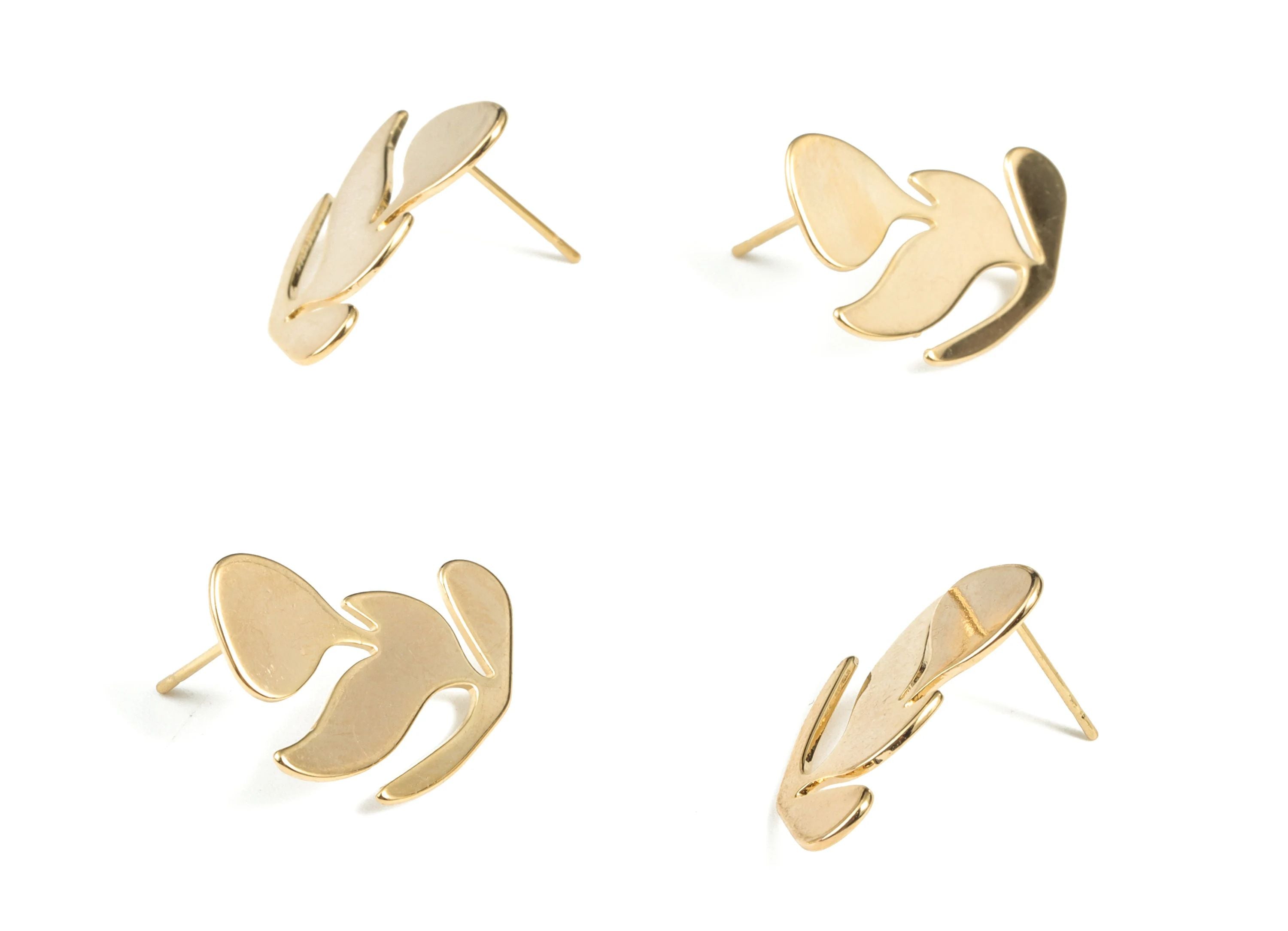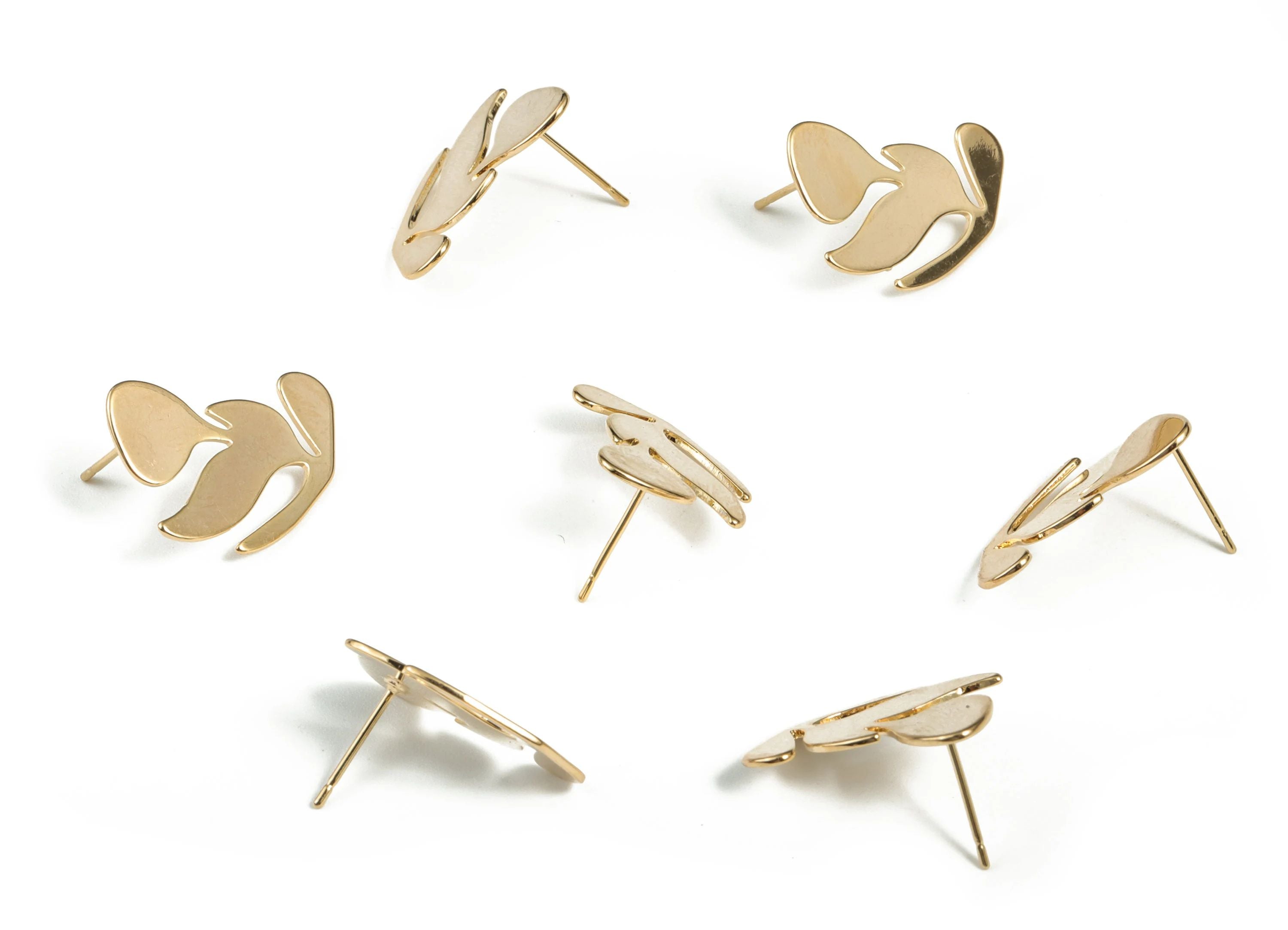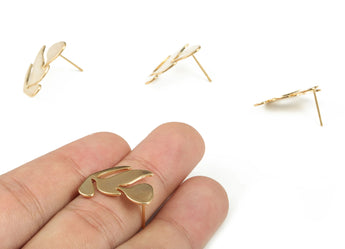 推回式耳钉 - 黄铜 - 316 医用不锈钢耳钉 - 18K 真金镀黄铜 - 4.7 克 -MJ200347