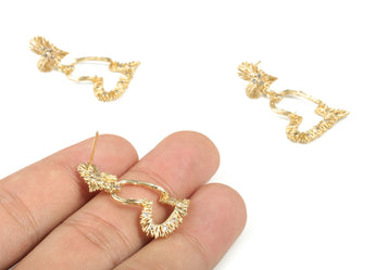 推回式耳钉 - 黄铜 - 316 医用不锈钢 - 锆石 - 18K 真金镀层 - 4.7 克 - MJ101829