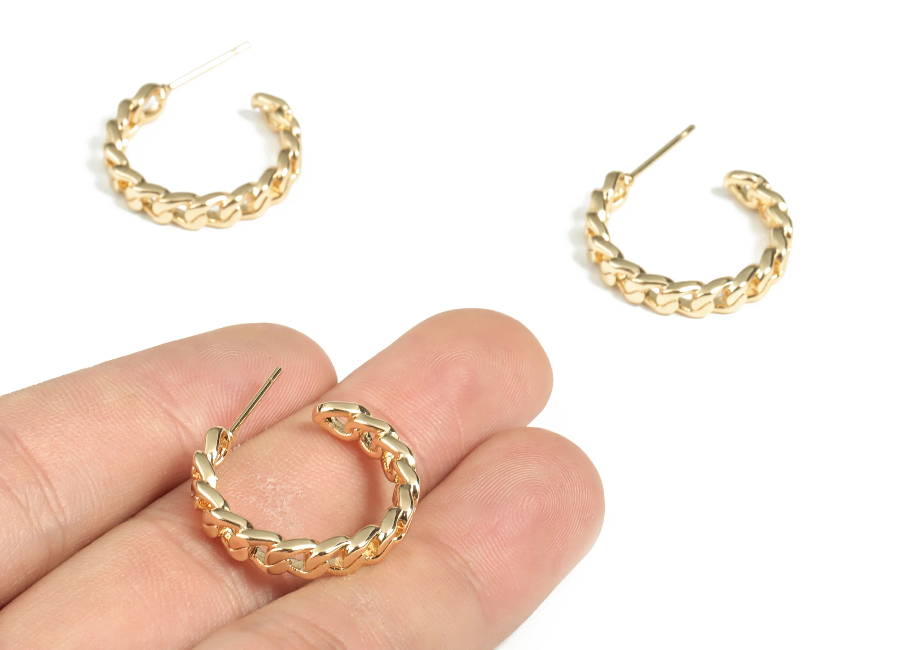 推回式耳钉 - 黄铜 - 316 医用不锈钢耳钉 - 18K 真金镀黄铜 - 7.5 克 - MJ102154