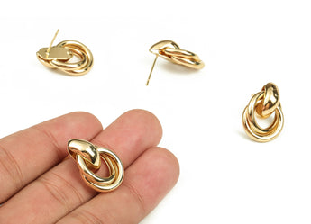 推回式耳钉 - 黄铜 - 黄铜耳钉 - 18K 真金镀黄铜 - 7克 - MJ200350