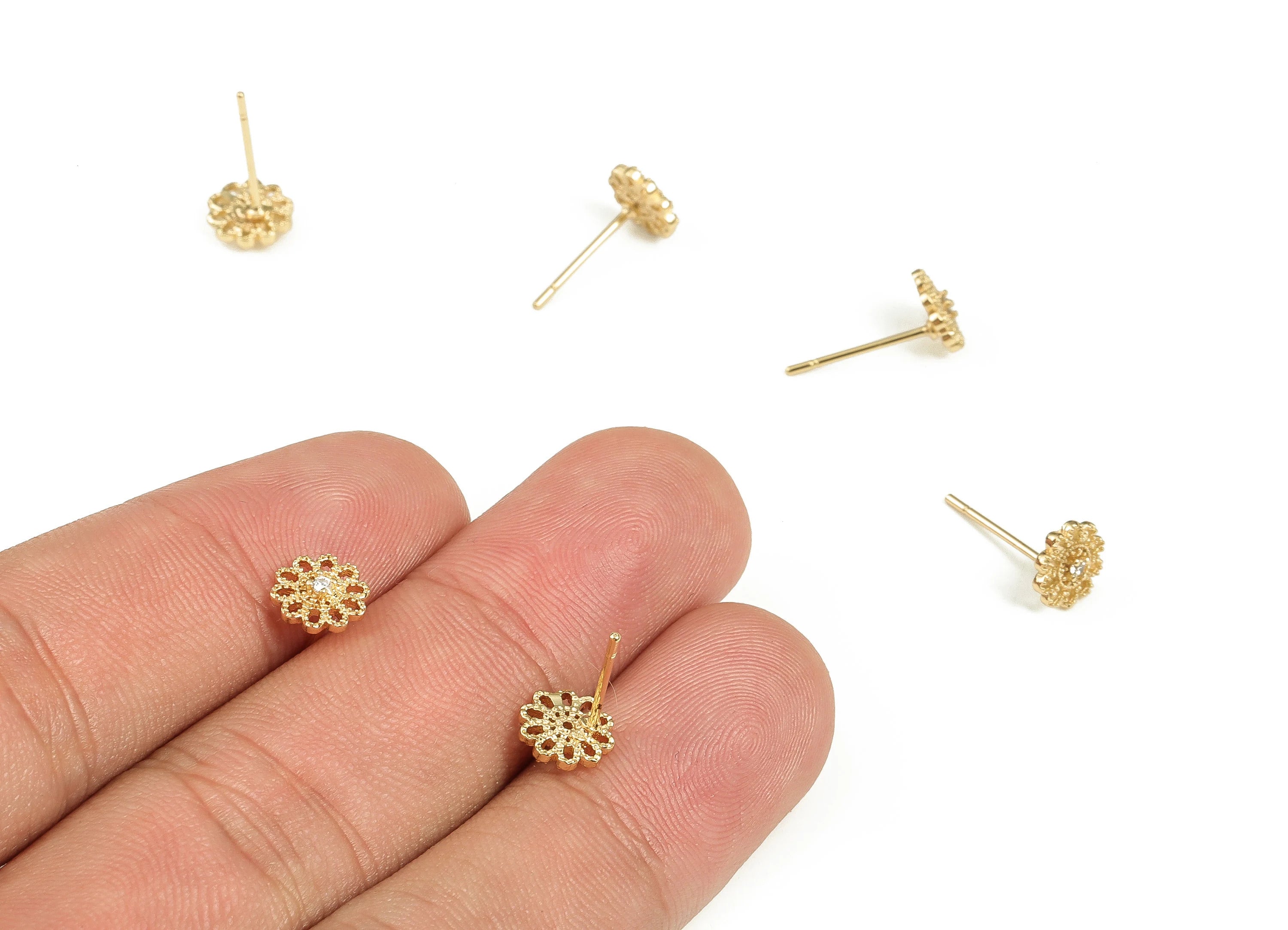 材质:黄铜 - 黄铜耳钉 - 锆石