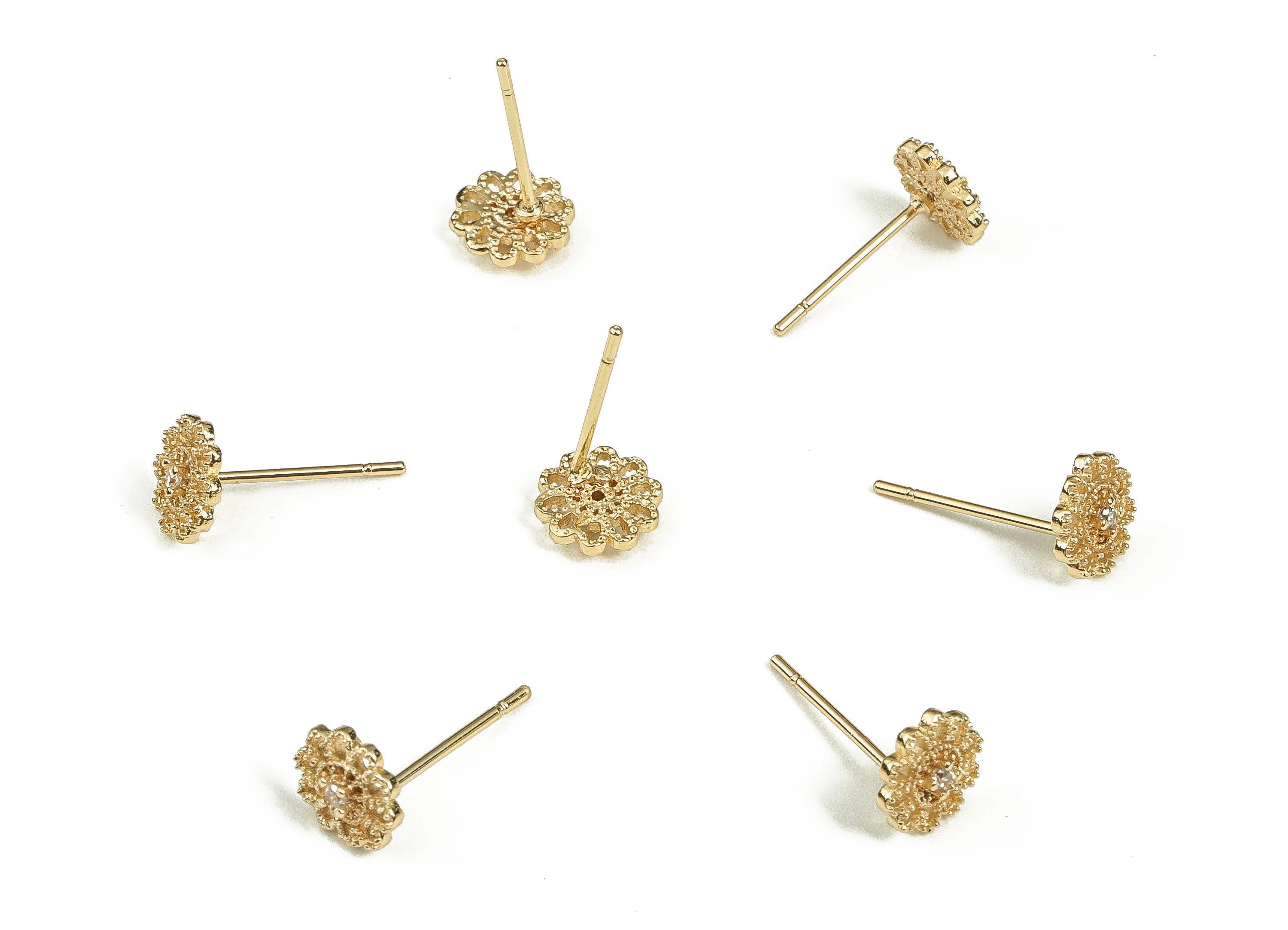 推回式耳钉 - 黄铜 - 黄铜耳钉 - 锆石 - 18K 真金镀黄铜 - 2.6 克 - MJ200355
