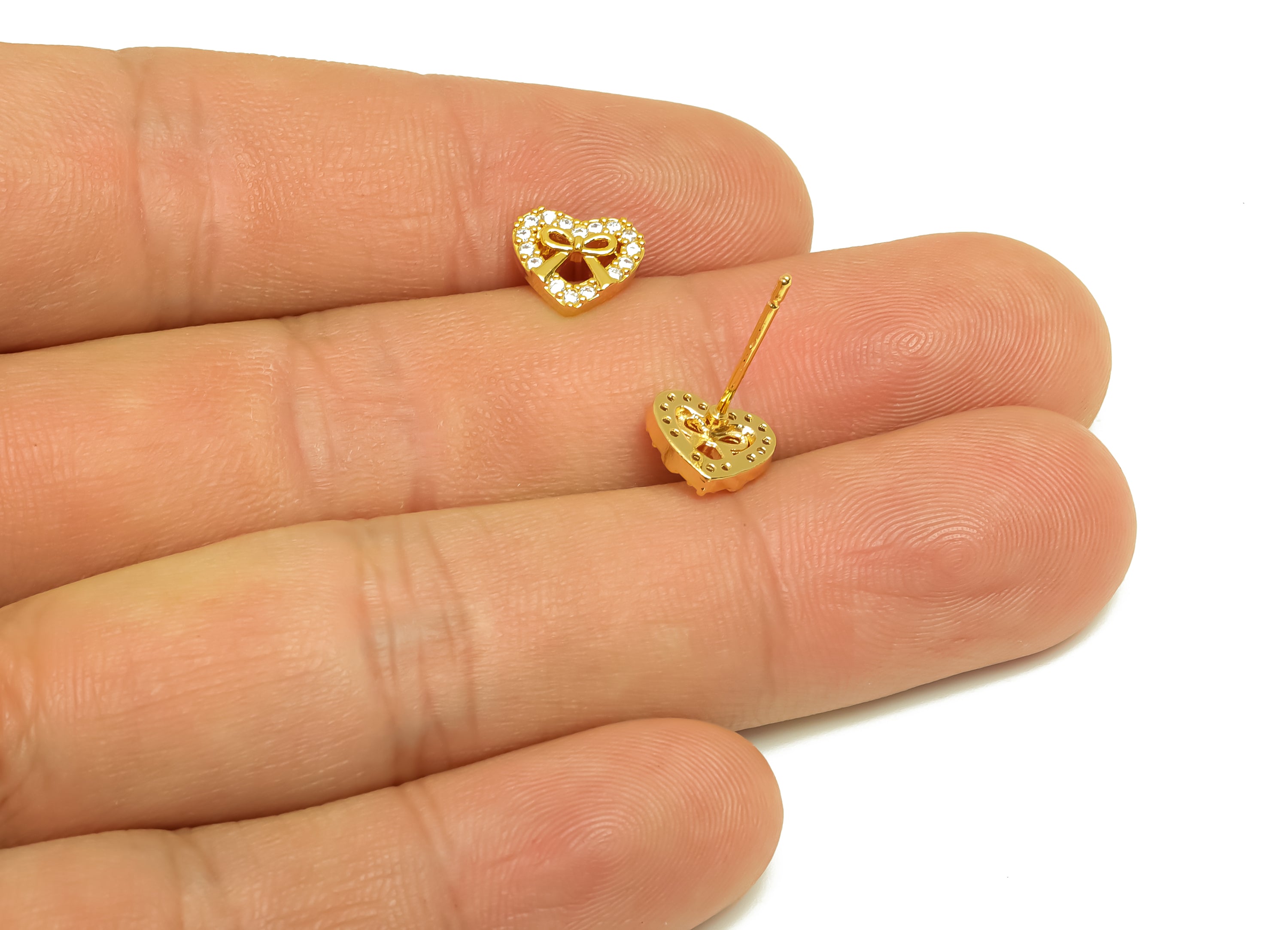 推回式耳钉 - 黄铜 - 黄铜耳钉 - 锆石 - 18k 真金镀层 - 1.2 克 - MJ103206