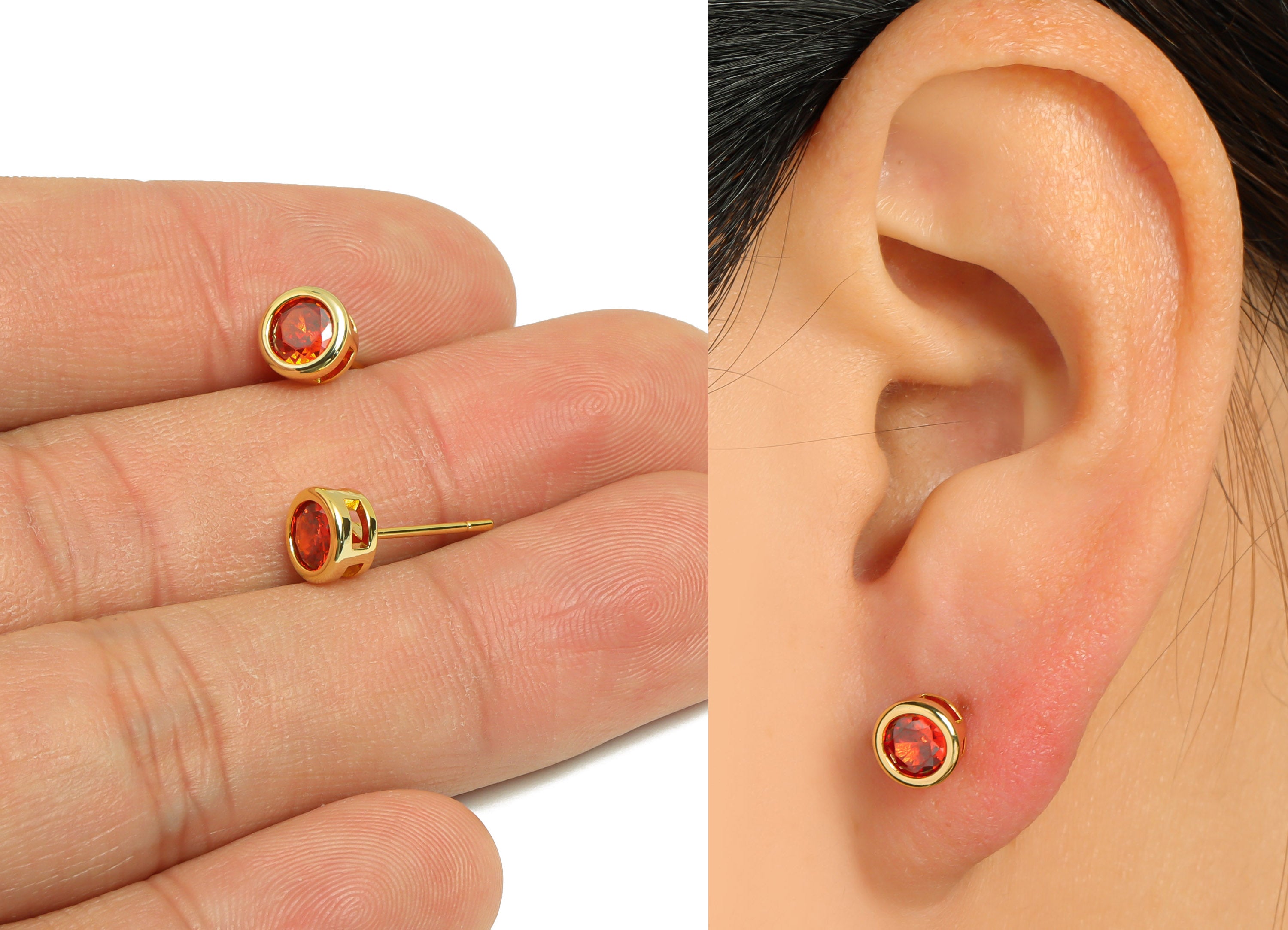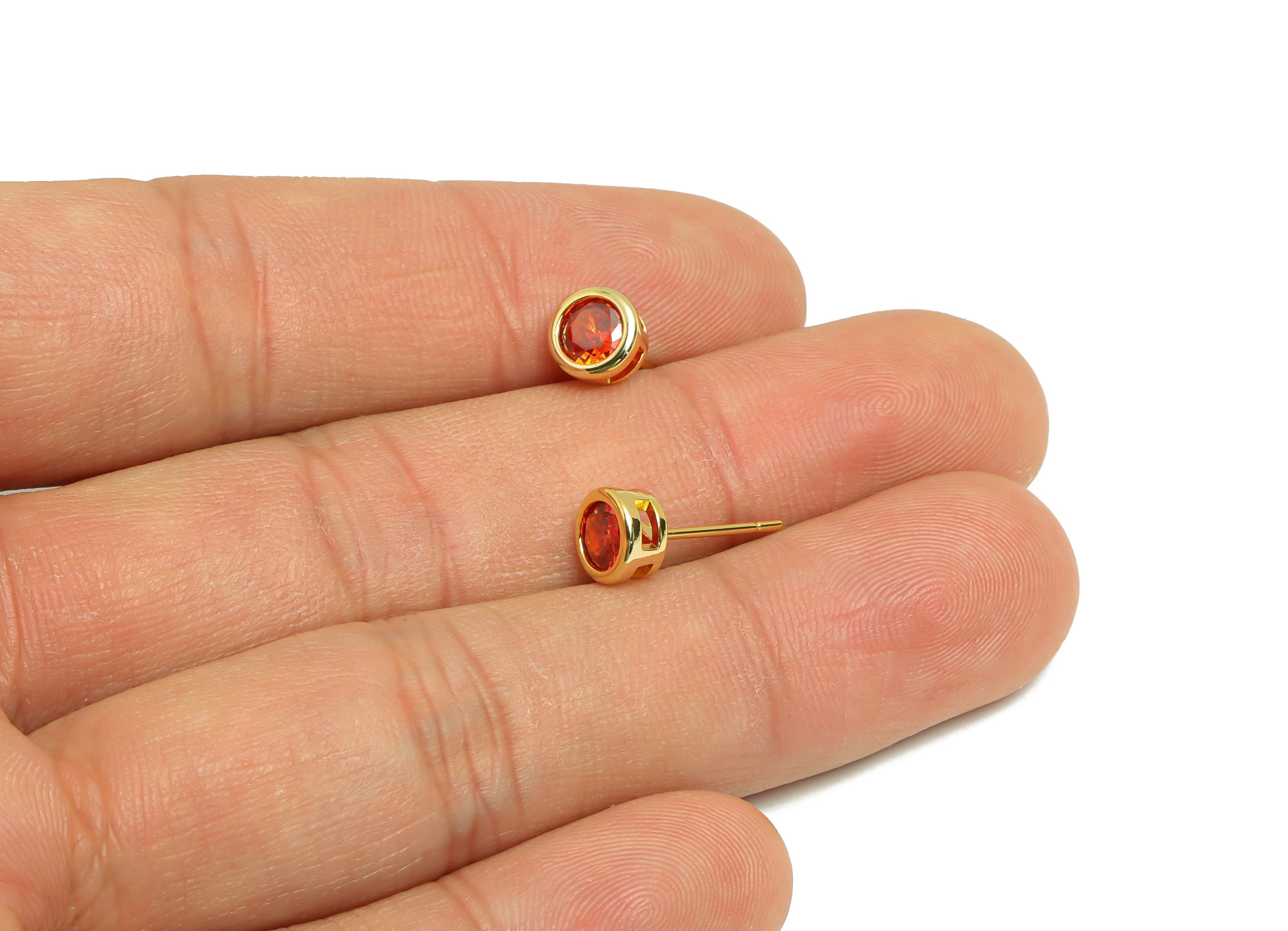 推回式耳钉 - 黄铜 - 方晶锆石 - 18k 真金镀层 - 橙色 (CZ-11) - 3 克 - MJ101766