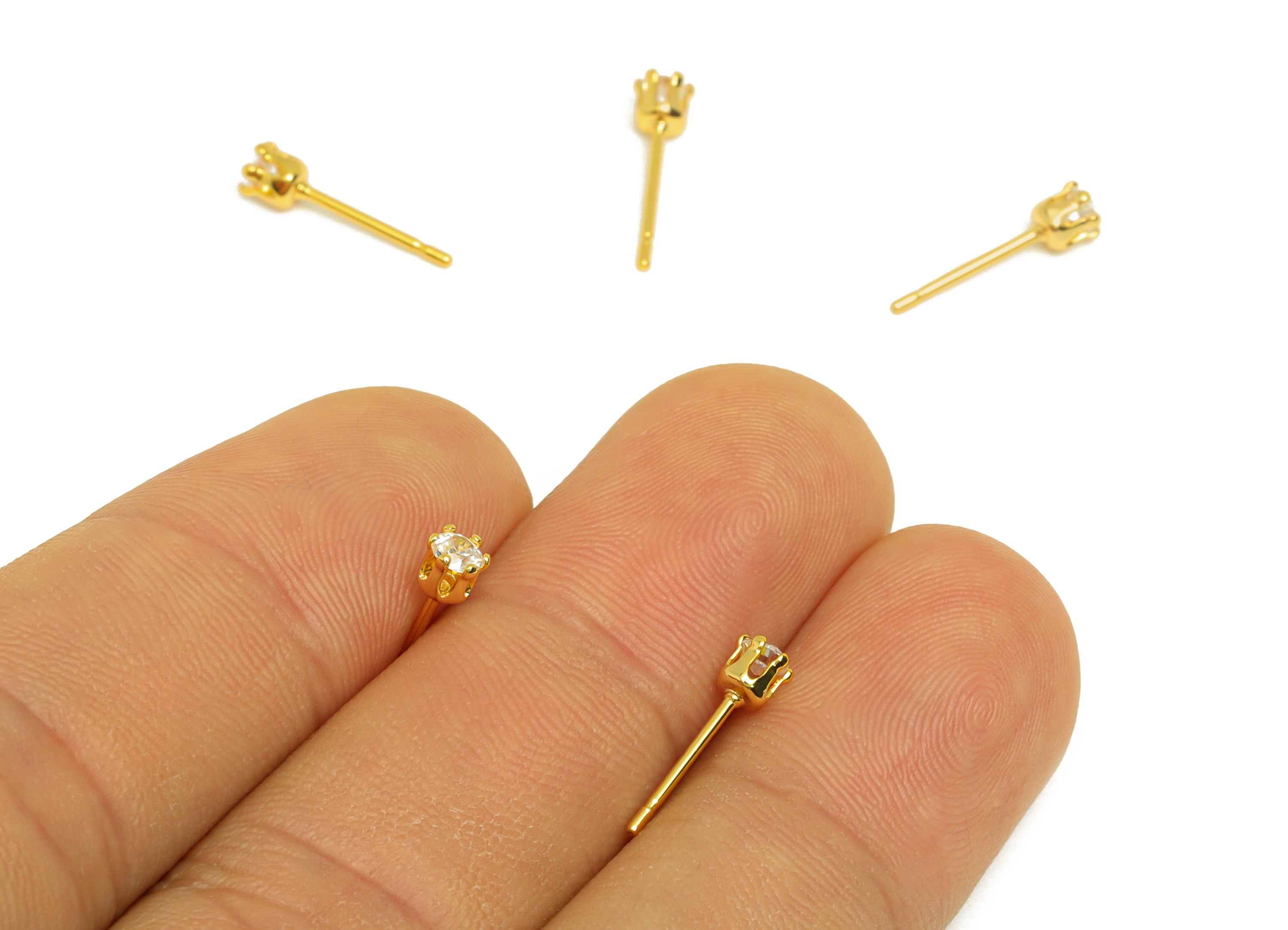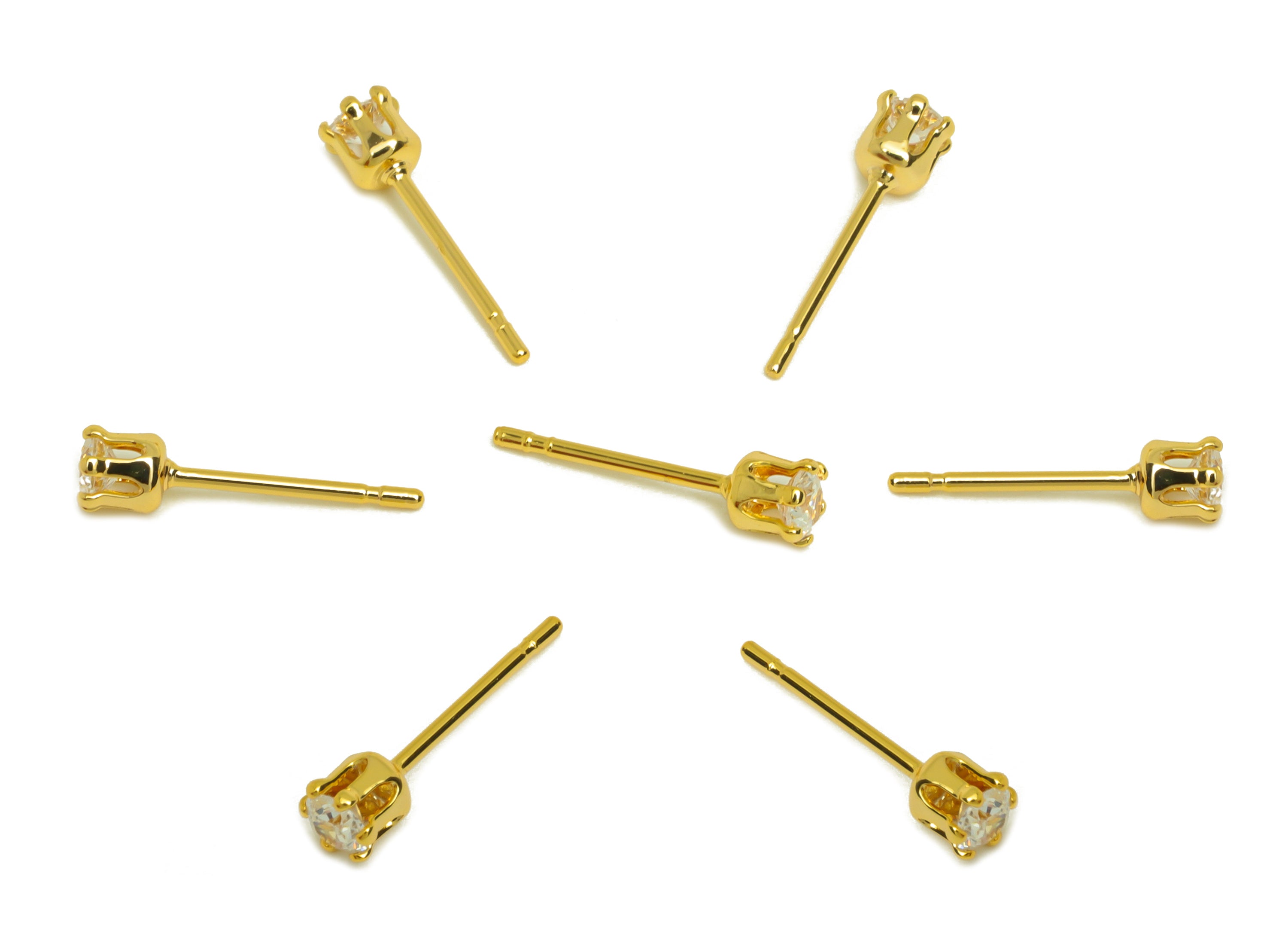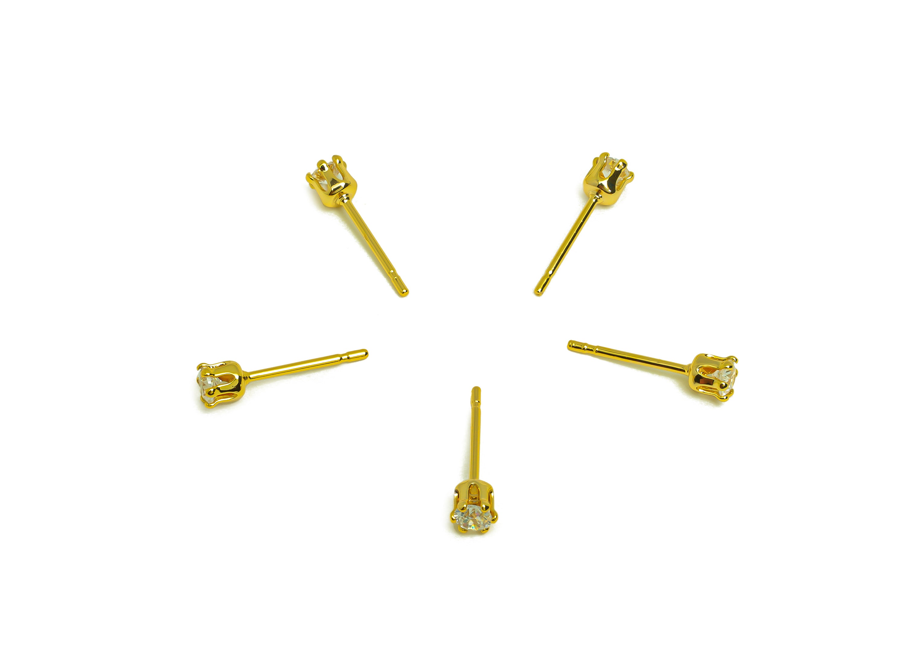 推回式耳钉 - 黄铜 - 方晶锆石 - 316 不锈钢耳钉 - 18K 真金镀层 - 0.3 克 - MJ103170
