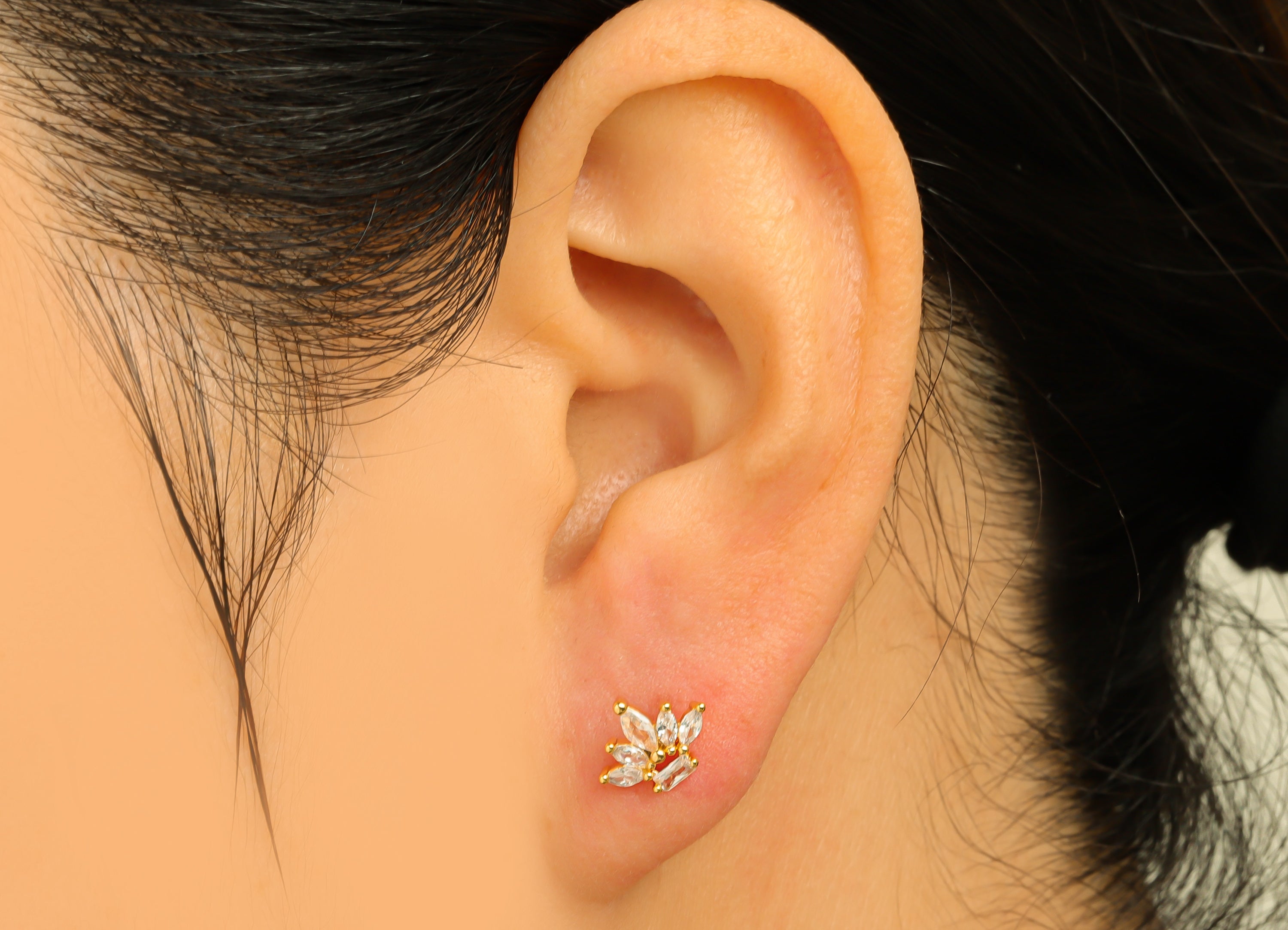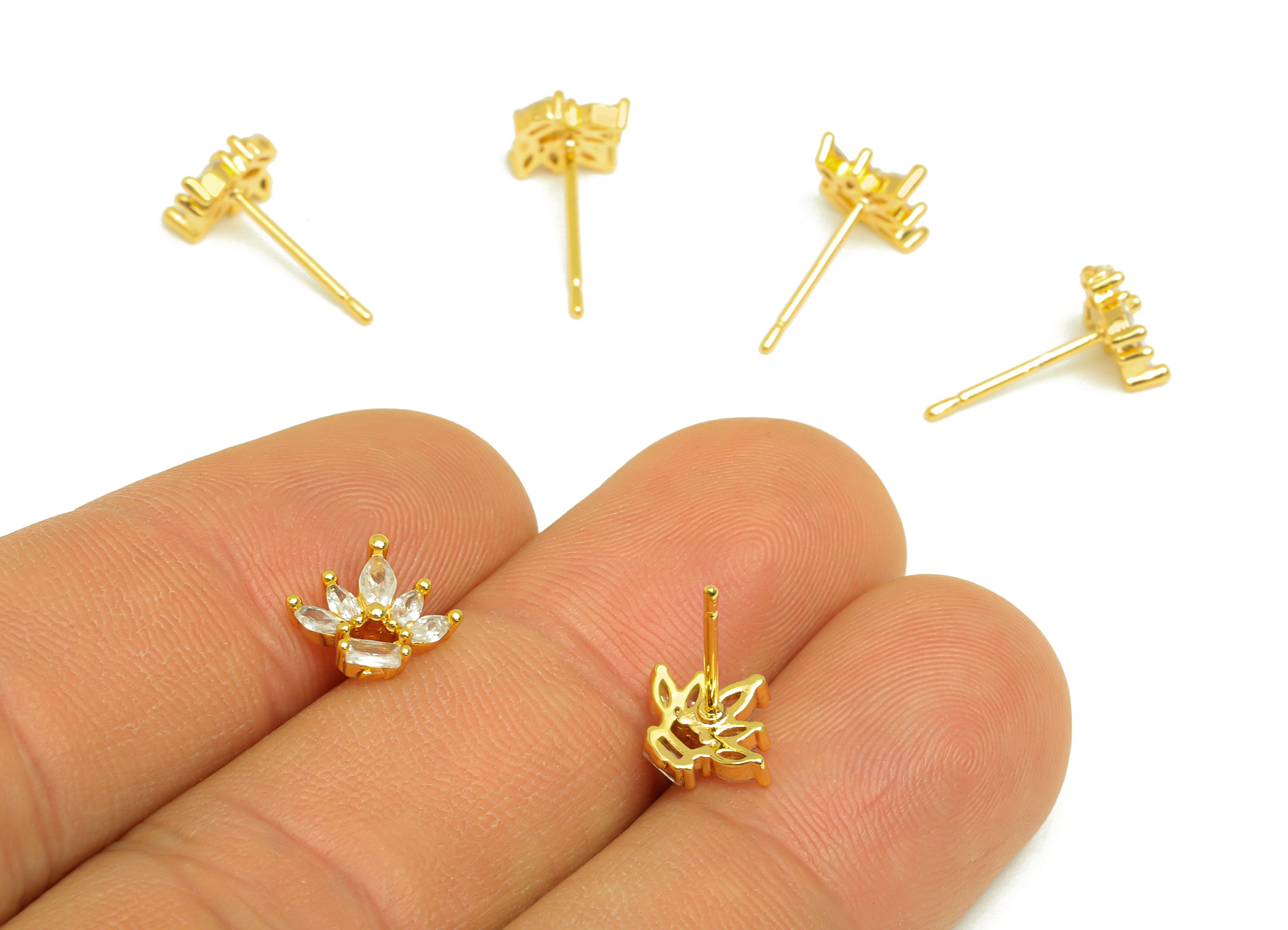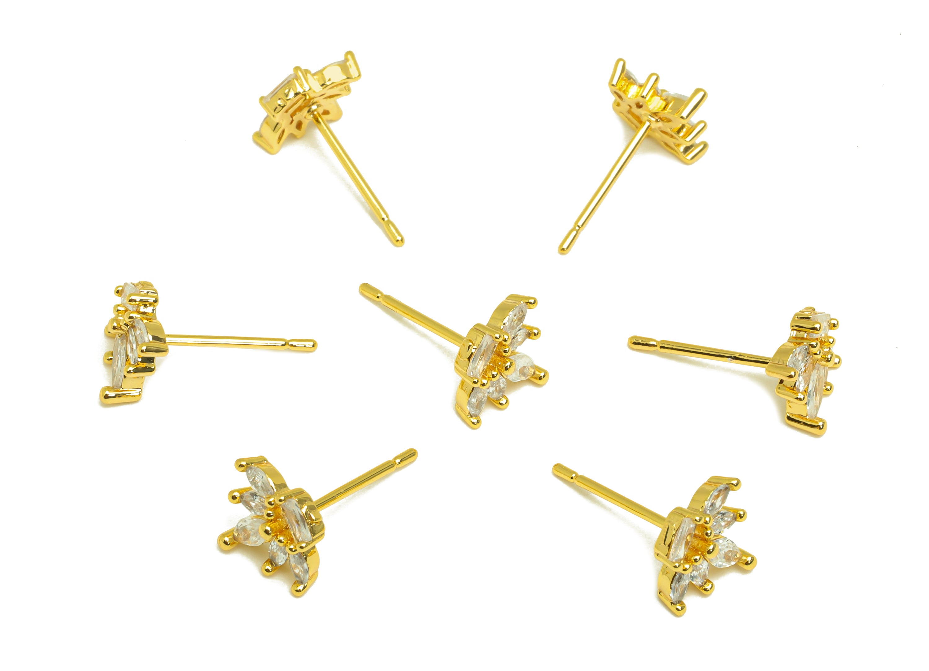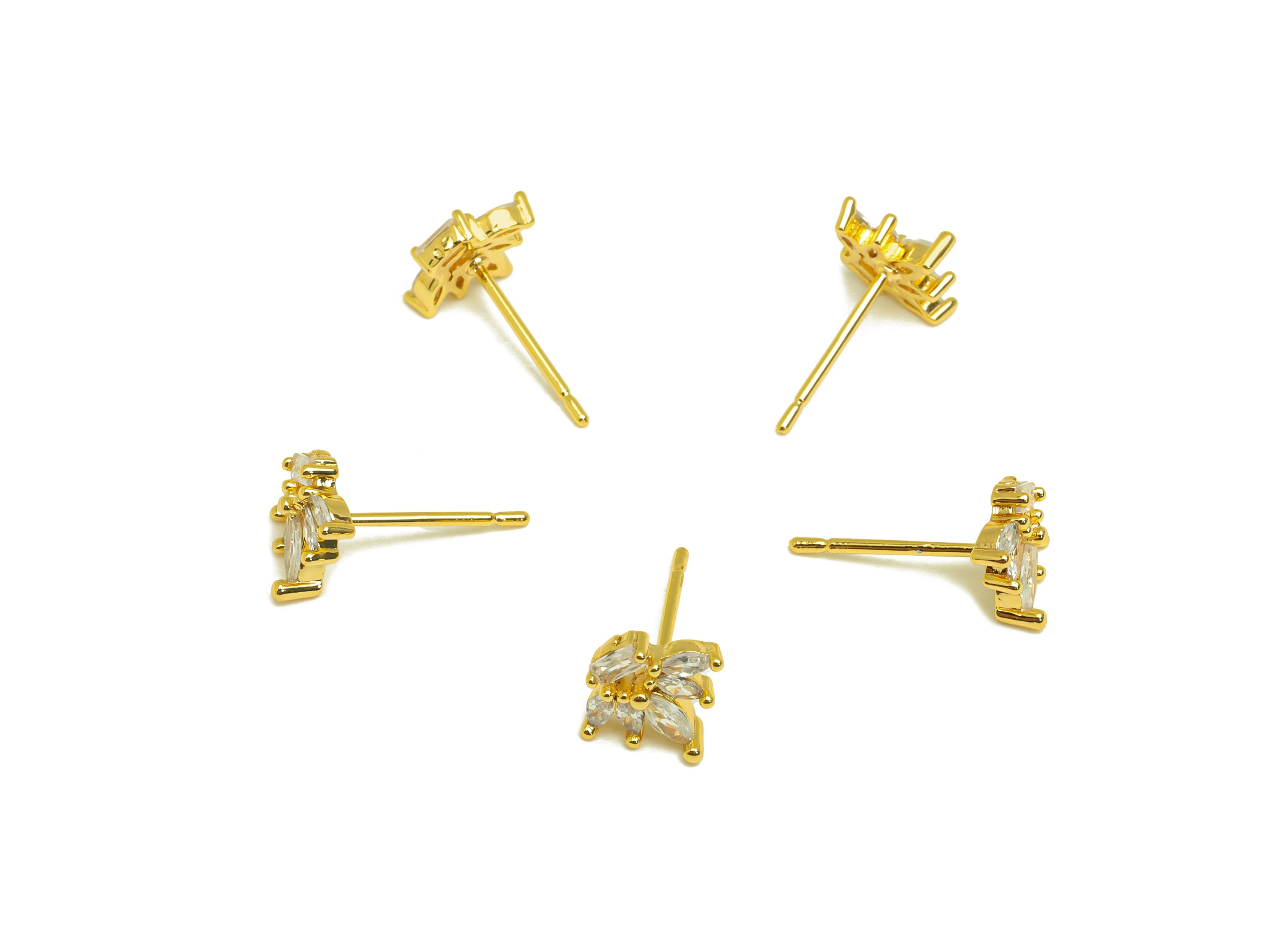 推回式耳钉 - 黄铜 - 方晶锆石 - 316 不锈钢耳钉 - 18k 真金镀层 - 0.9 克 - MJ102769