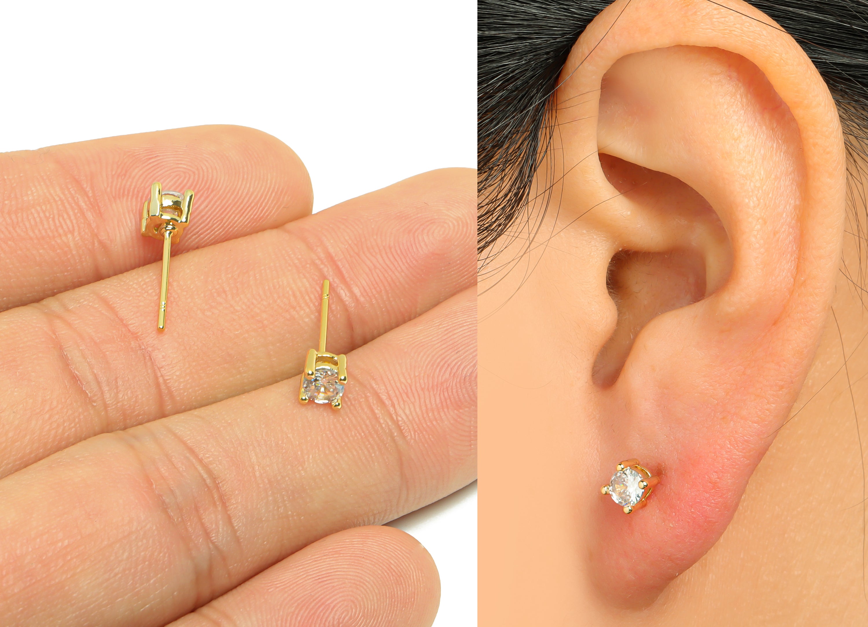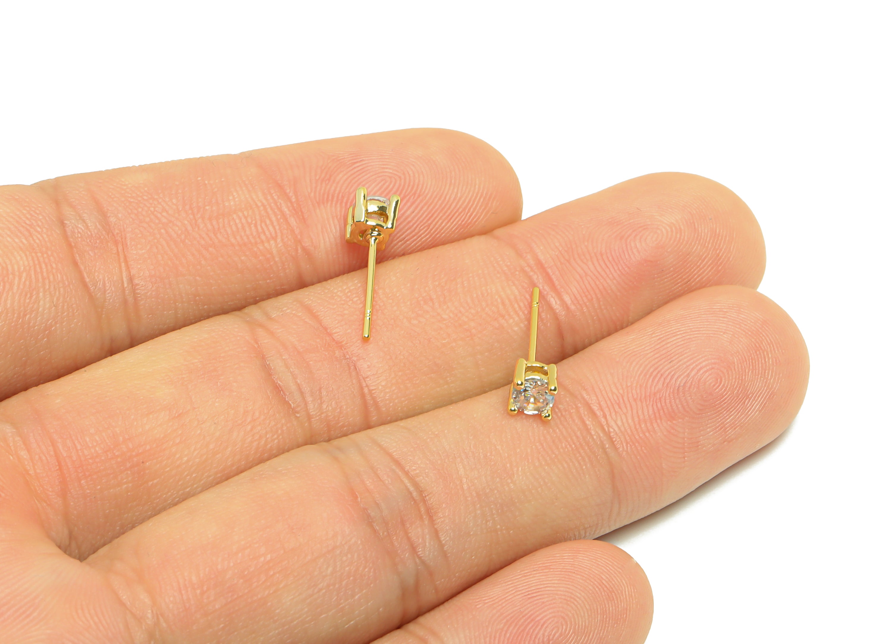 推回式耳钉 - 黄铜 - 立方锆石 - 316 不锈钢耳钉 - 18K 真金镀层 - 2.6 克 - MJ101818