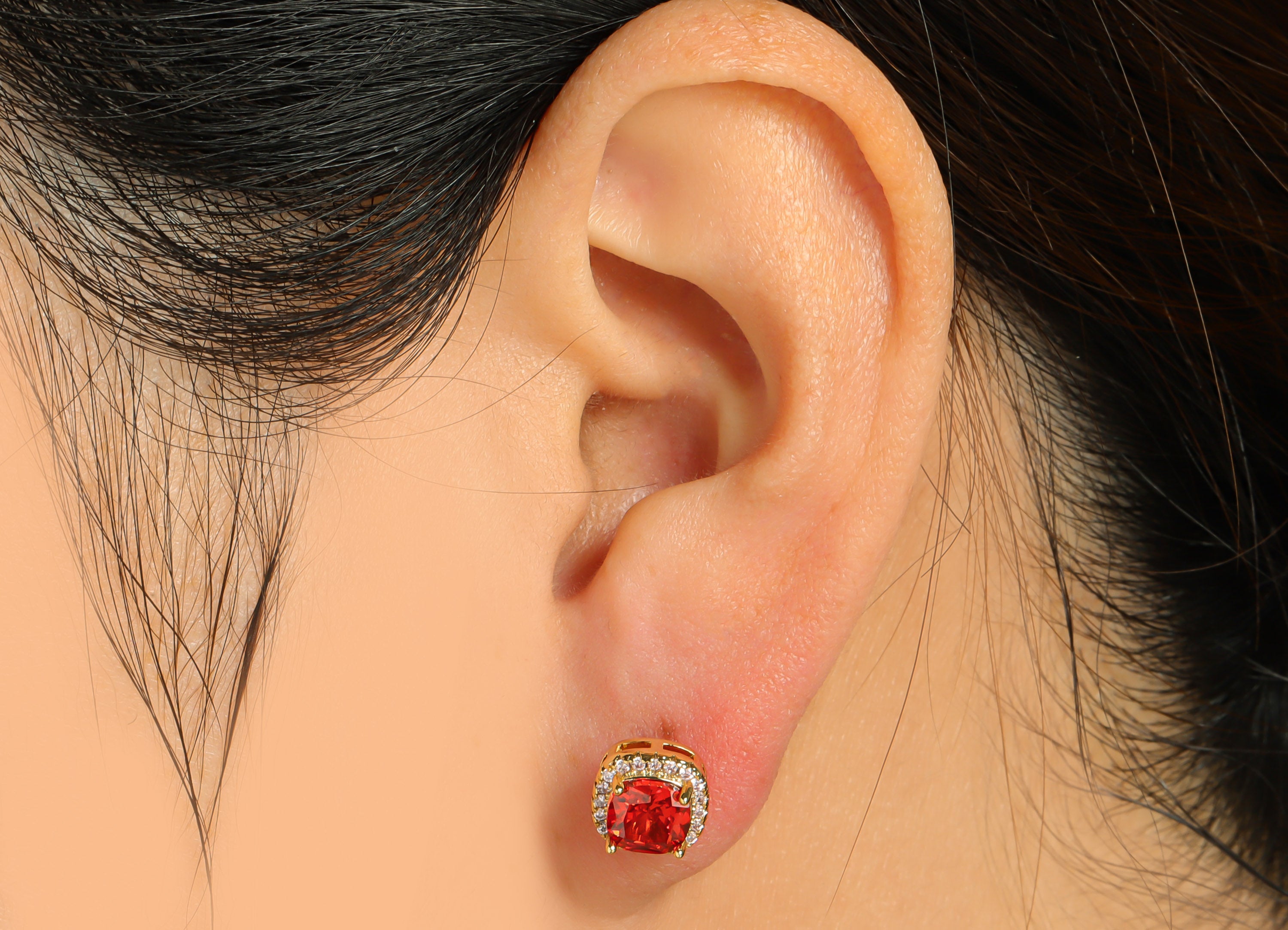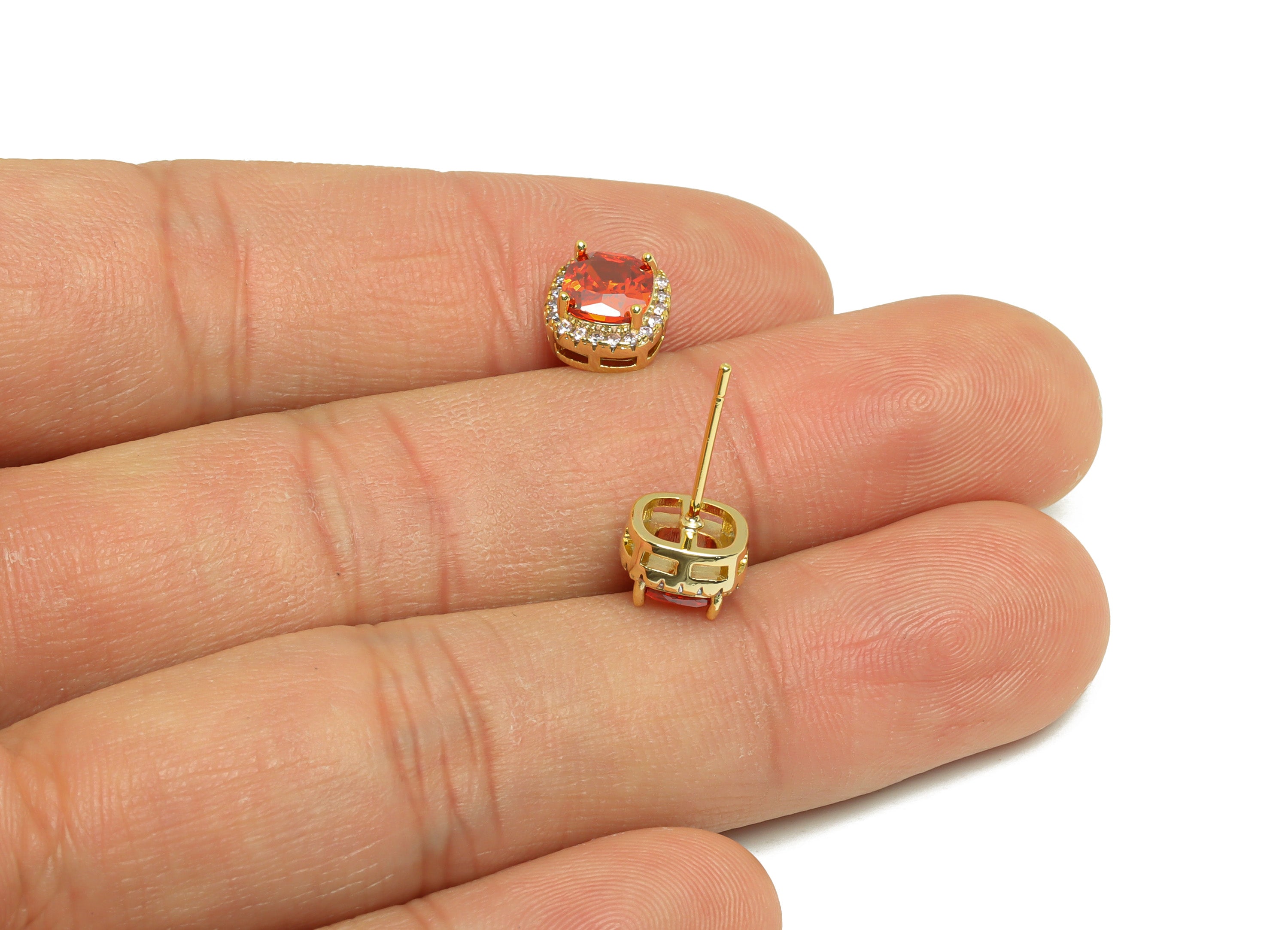 推回式耳钉 - 黄铜 - 方晶锆石 - 316 不锈钢耳钉 - 18K 真金镀层 - 粉色 (CZ-01) - 橘红色 (CZ-12) - 3.6 克 - MJ101723