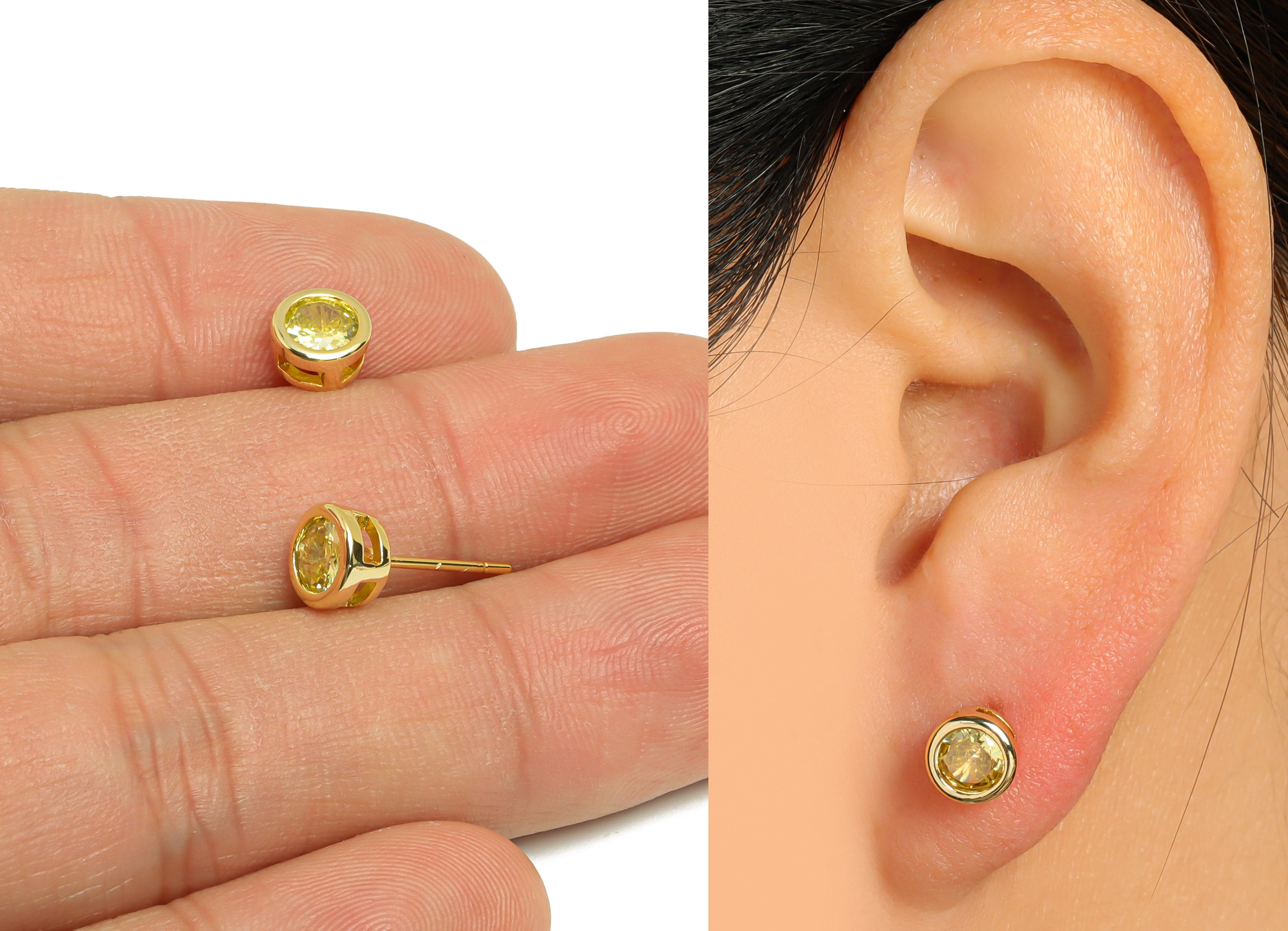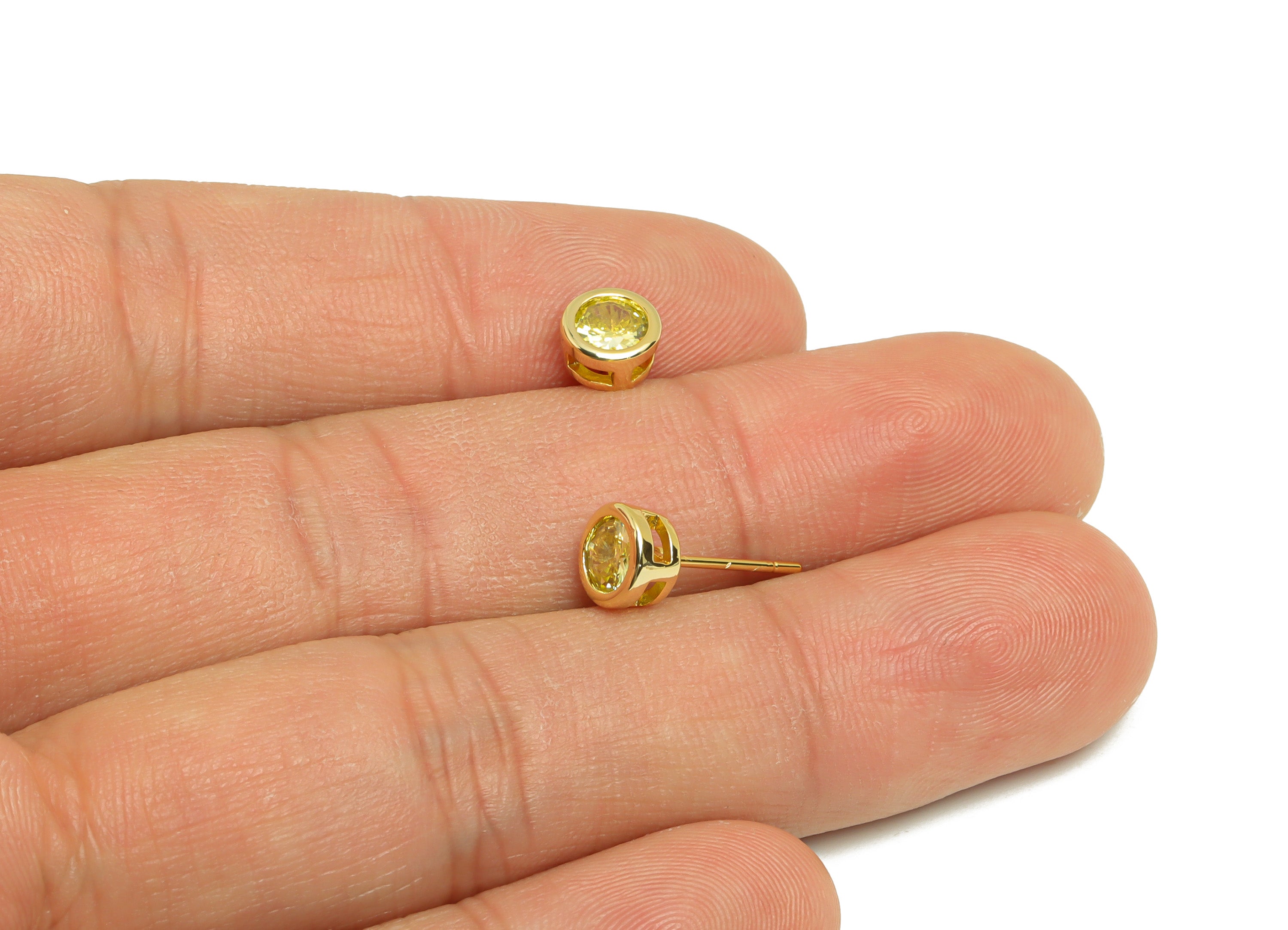 推回式耳钉 - 黄铜 - 方晶锆石 - 316 不锈钢耳钉 - 18k 真金镀层 - 黄色 (CZ-04) - 3 克 - MJ101758