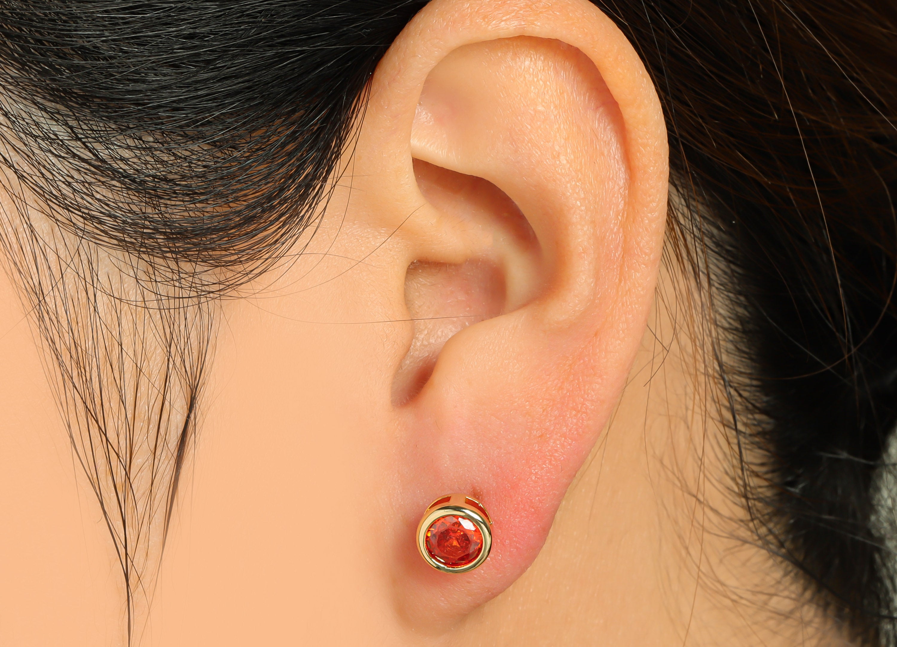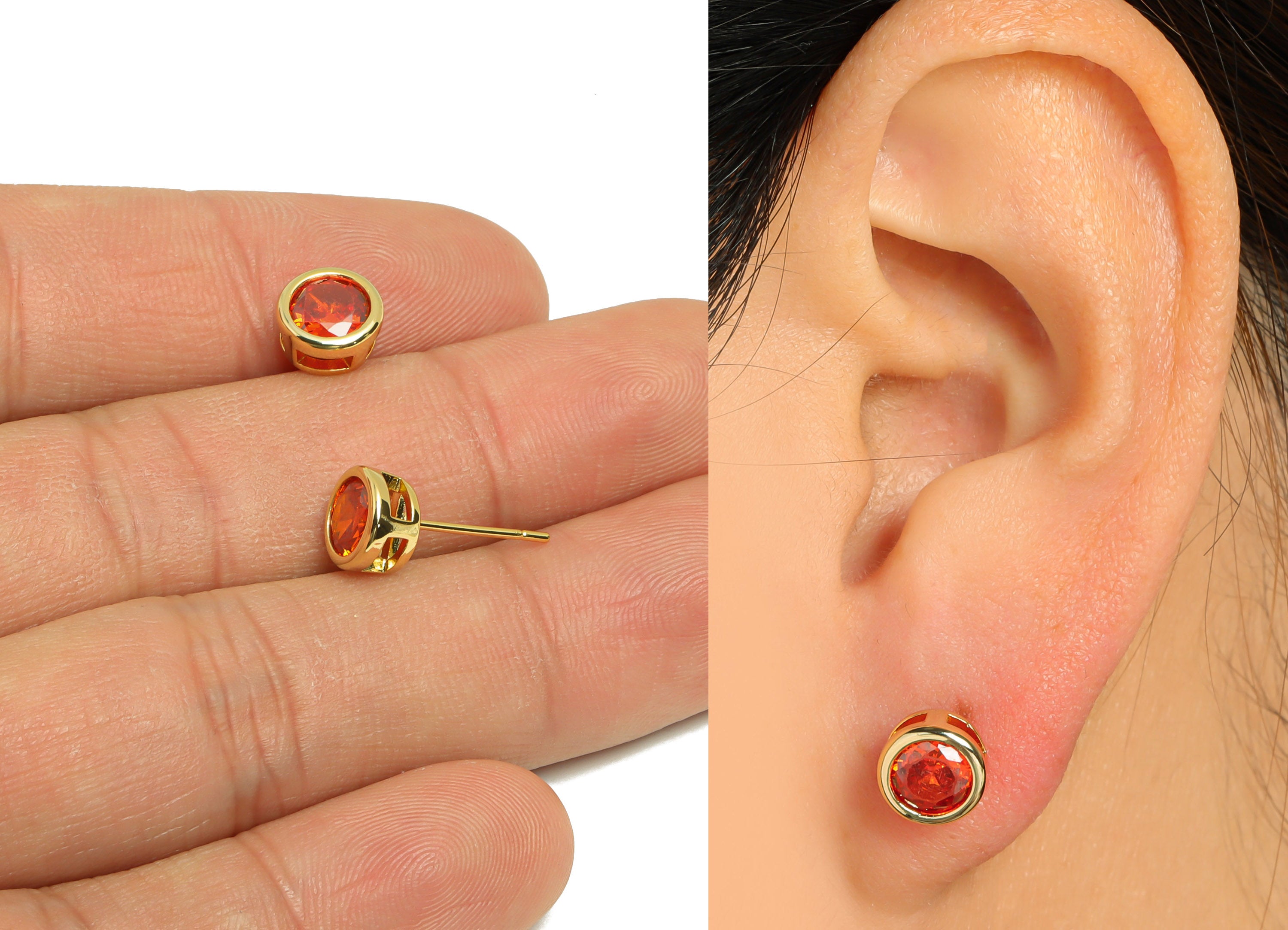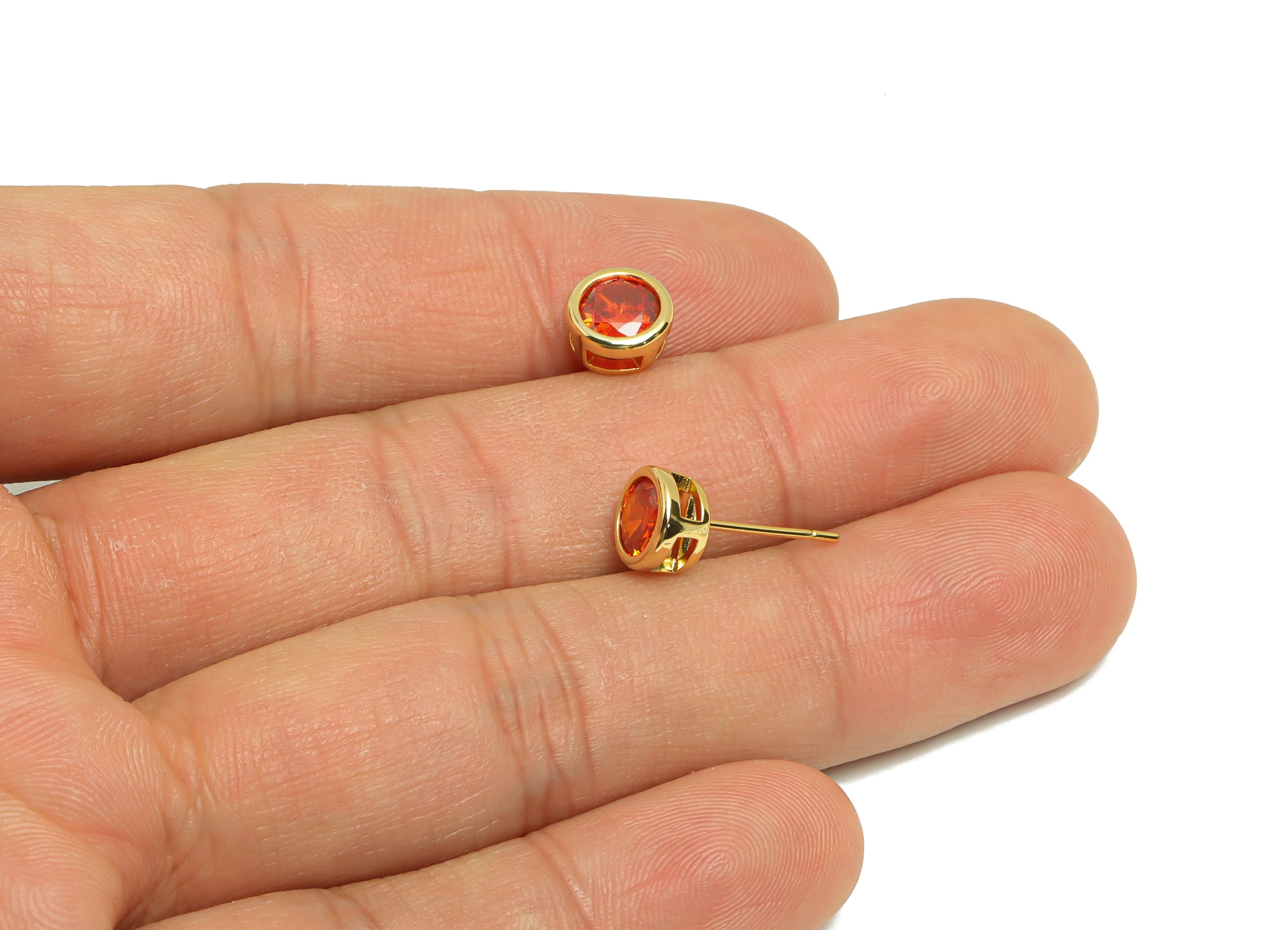 推回式耳钉 - 黄铜 - 方晶锆石 - 316 不锈钢耳钉 - 橙红色 (CZ-12) - 18K 真金镀层 - 3.6 克 - MJ101779