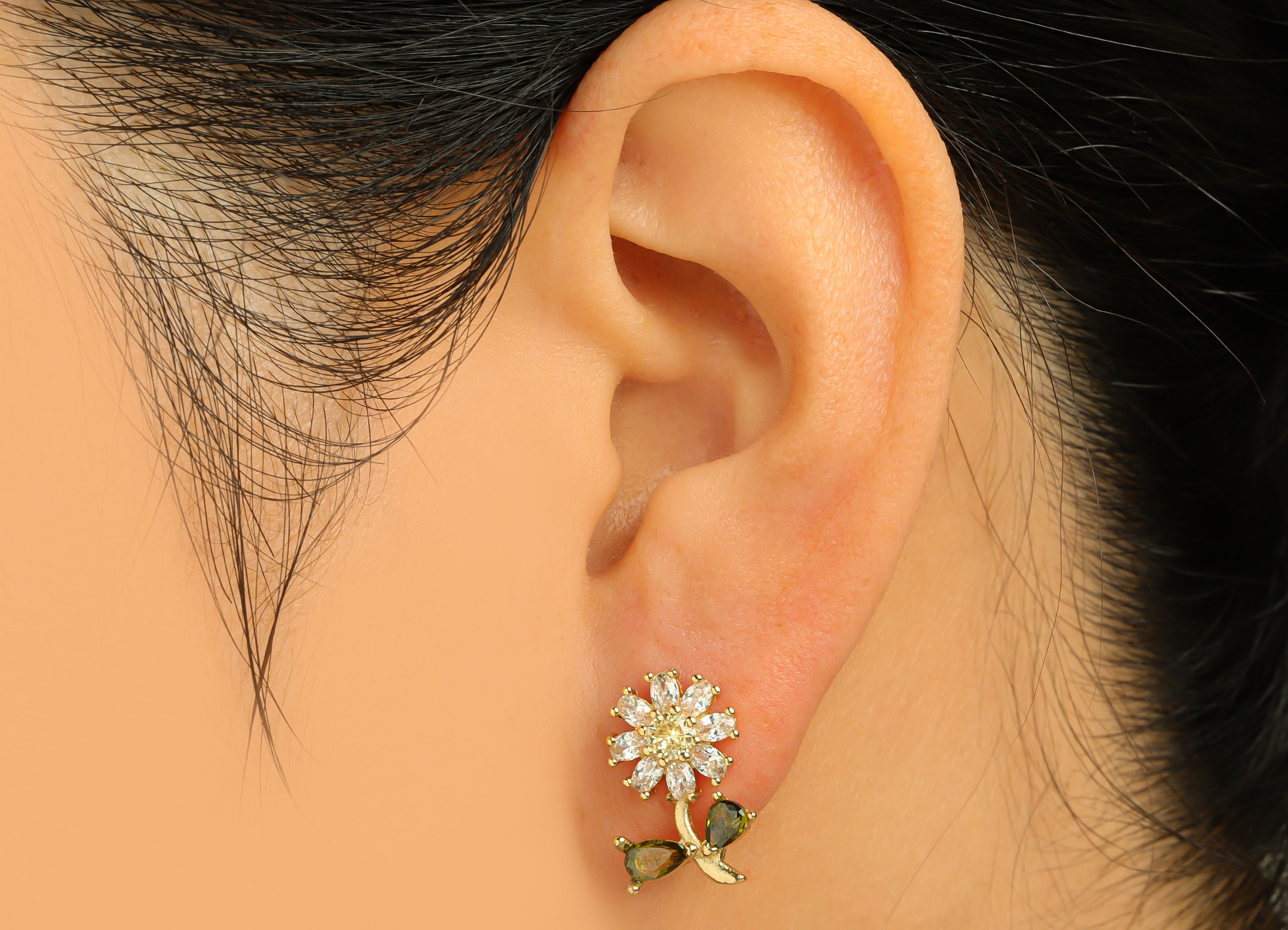 材质:黄铜 - 锆石 - 黄铜耳钉
