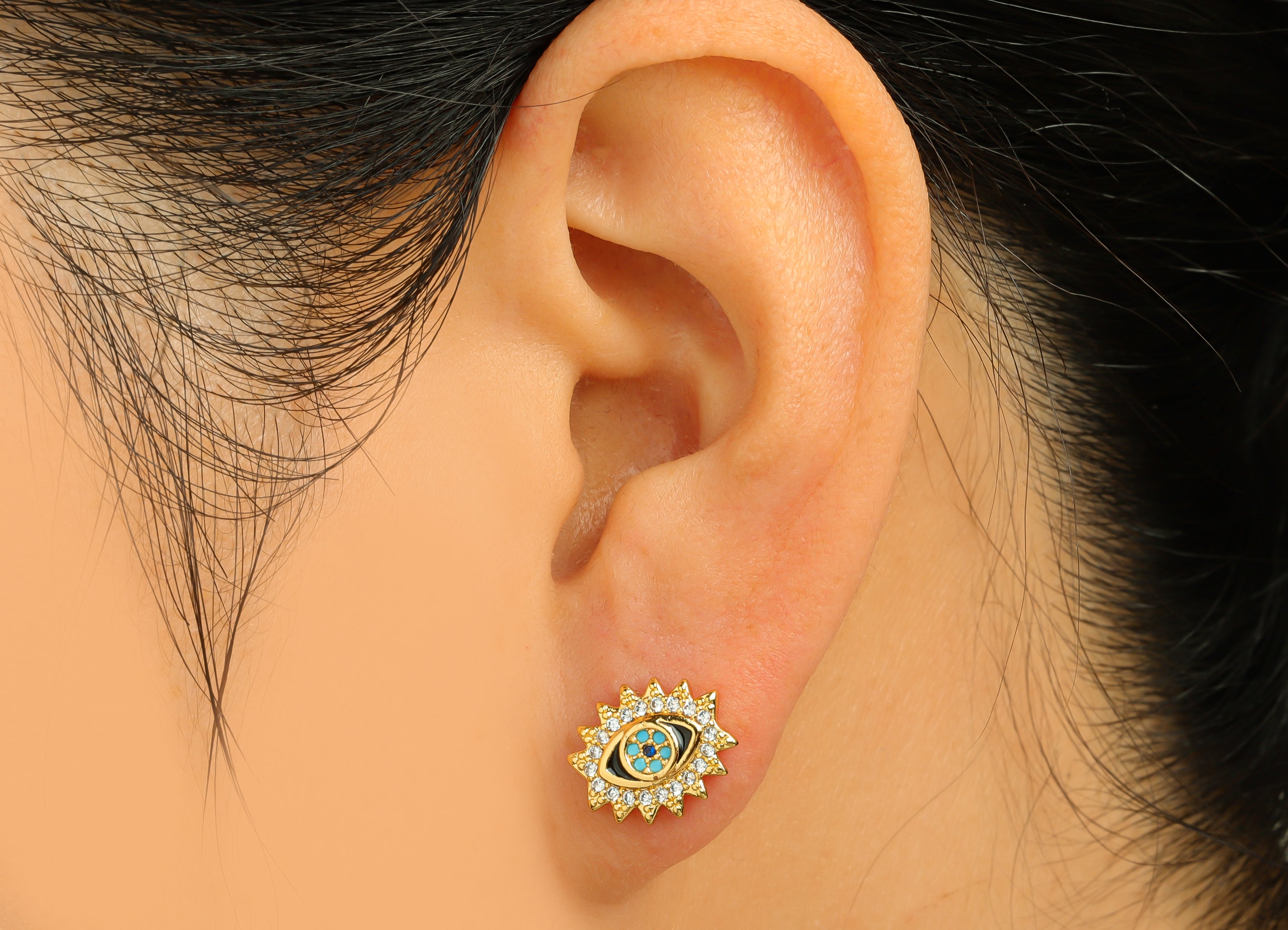 材质:黄铜 - 珐琅 - 锆石 - 黄铜耳钉