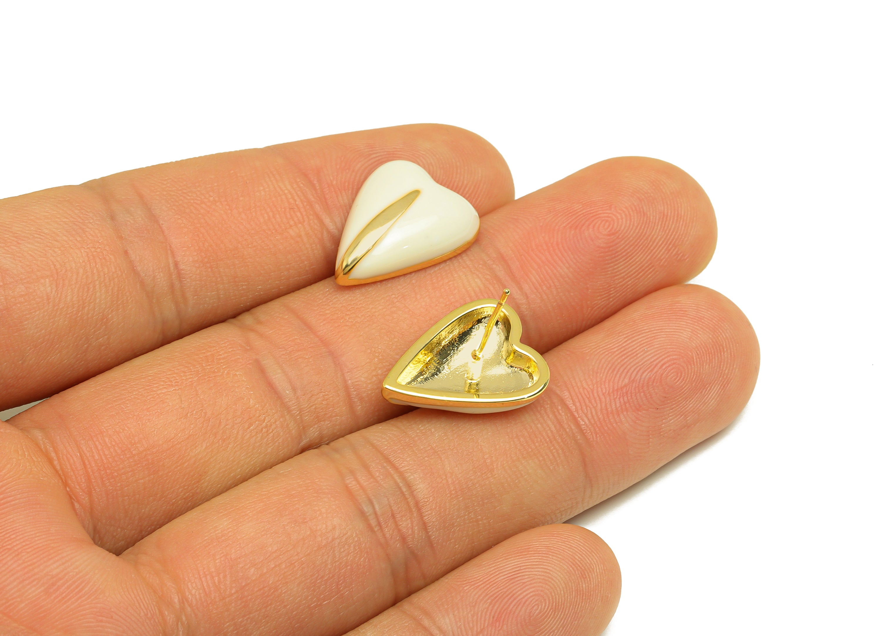 推回式耳钉 - 黄铜 - 仿银耳钉 - 珐琅 - 18K 真金镀层 - 3.9 克 - MJ103141
