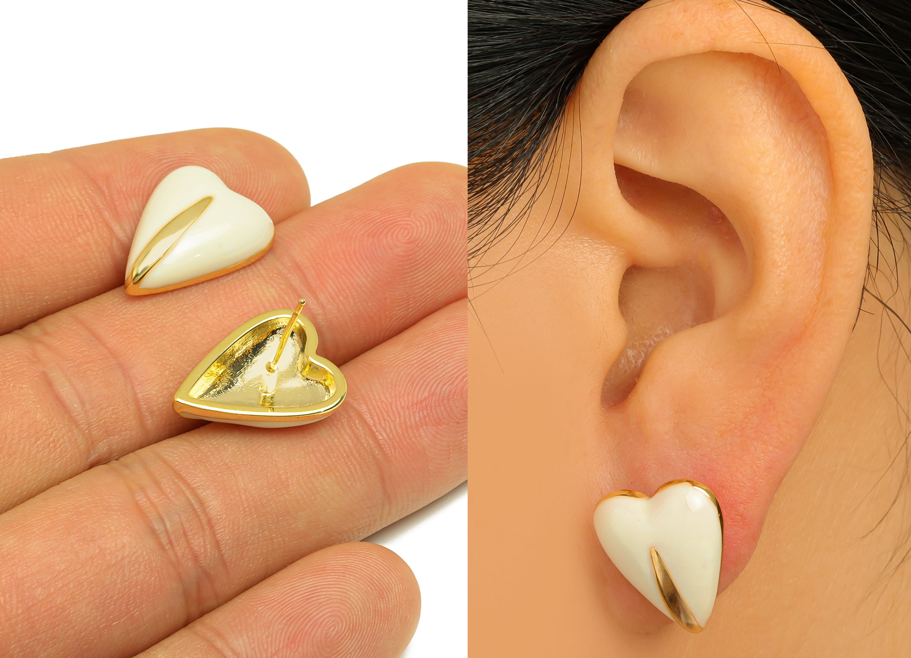 材质:黄铜 - 仿银耳钉 - 珐琅