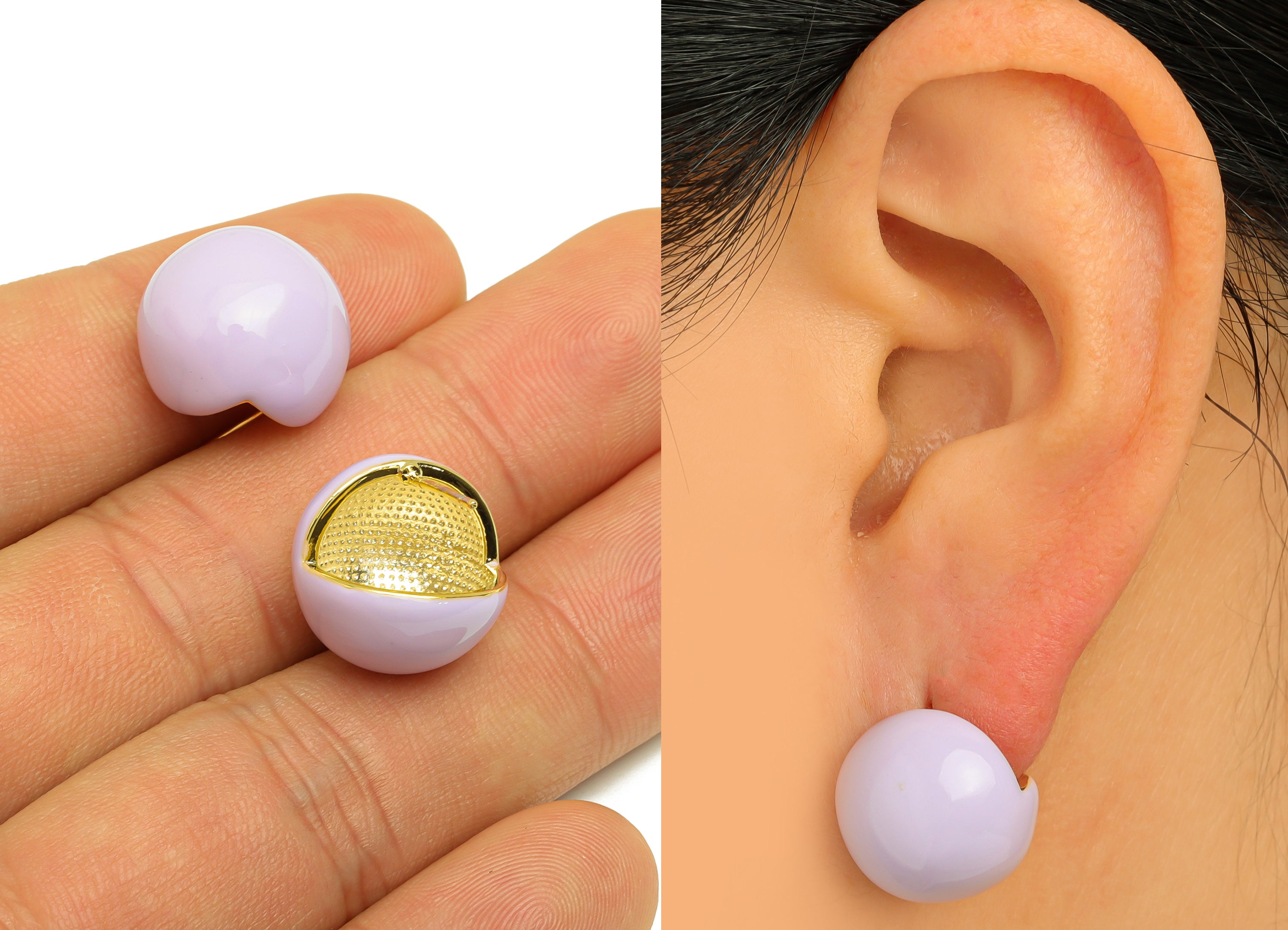 材质:黄铜 - 仿银耳钉 - 珐琅