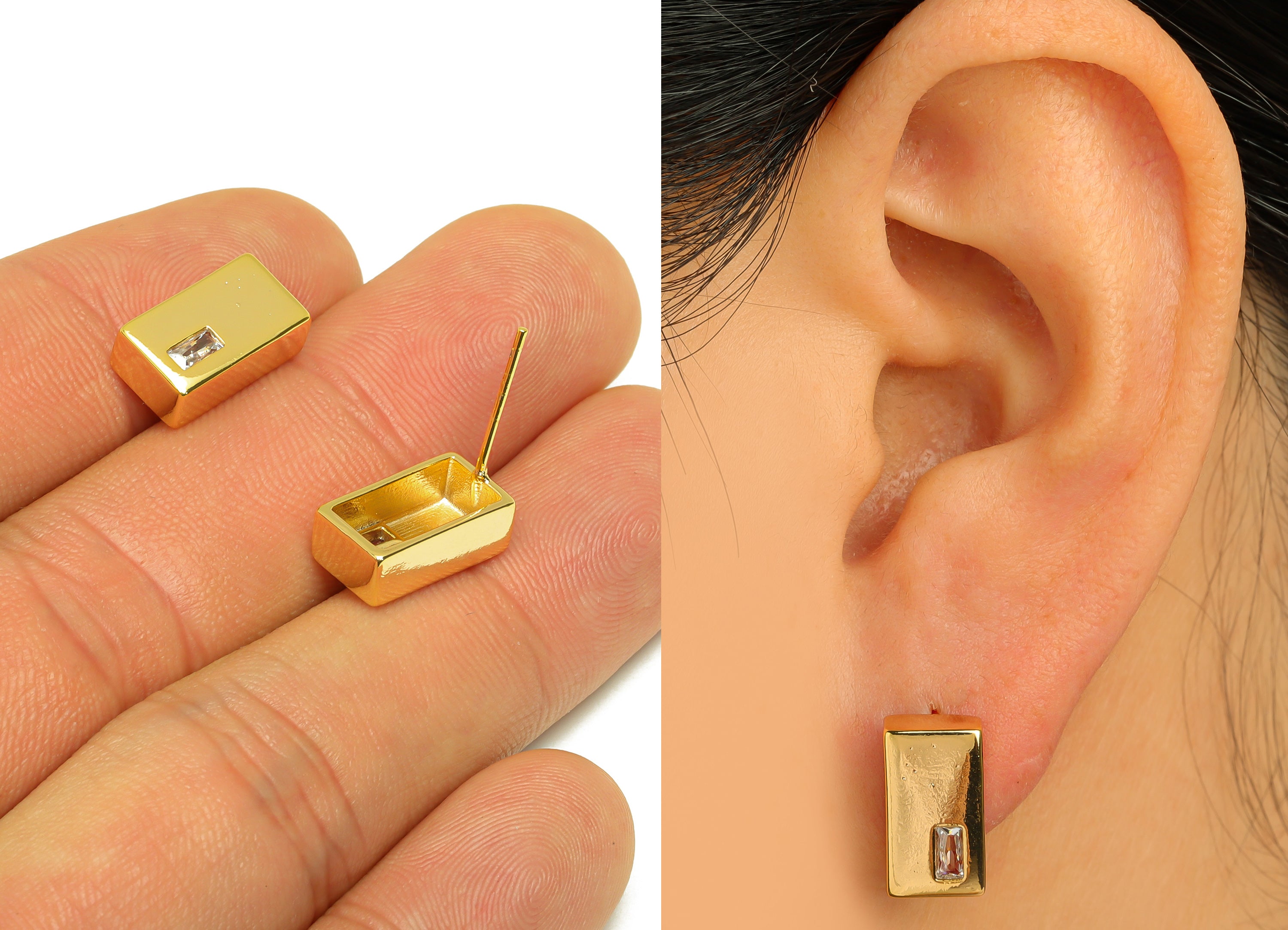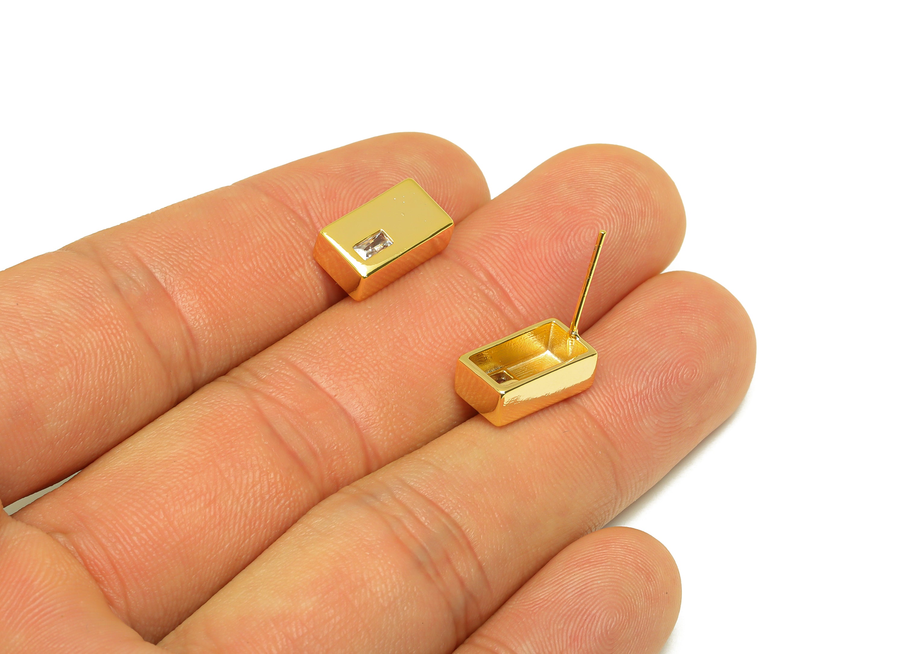 推回式耳钉 - 黄铜 - 锆石 - 黄铜耳钉 - 18k 真金镀层 - 3.4 克 - MJ103183