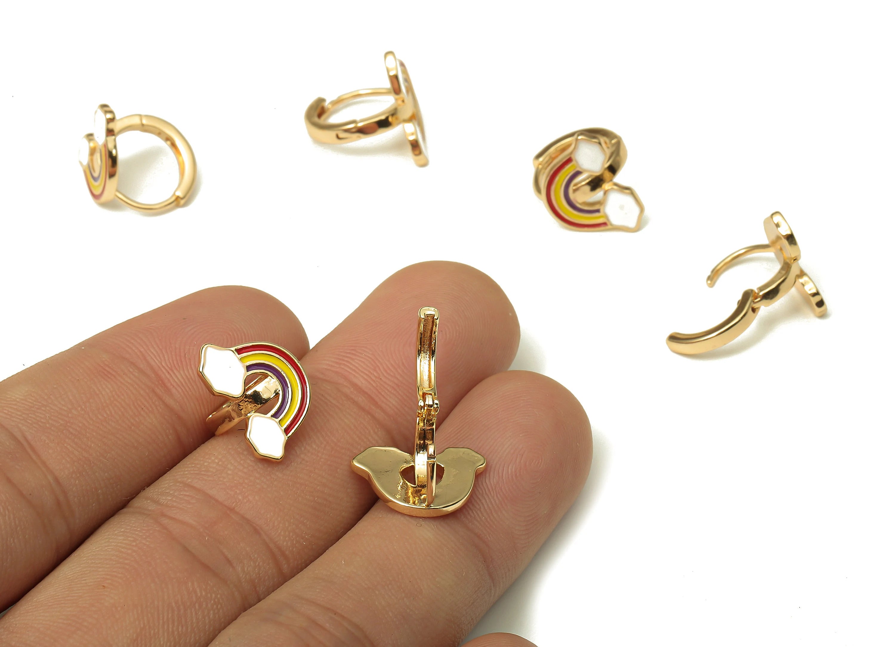 Huggie 环形耳环 - 黄铜 - 珐琅 - 18k 真金镀黄铜 - 4.2 克 - MJ200304
