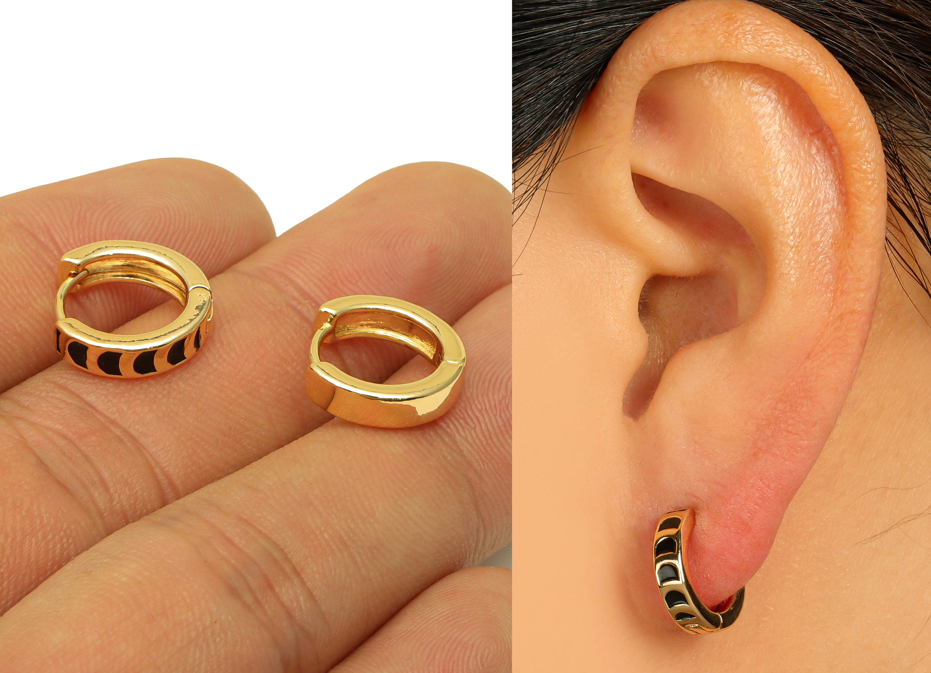 Huggie 环形耳环 - 黄铜 - 珐琅 - 18k 真金镀黄铜 - 4.2 克 - MJ200414