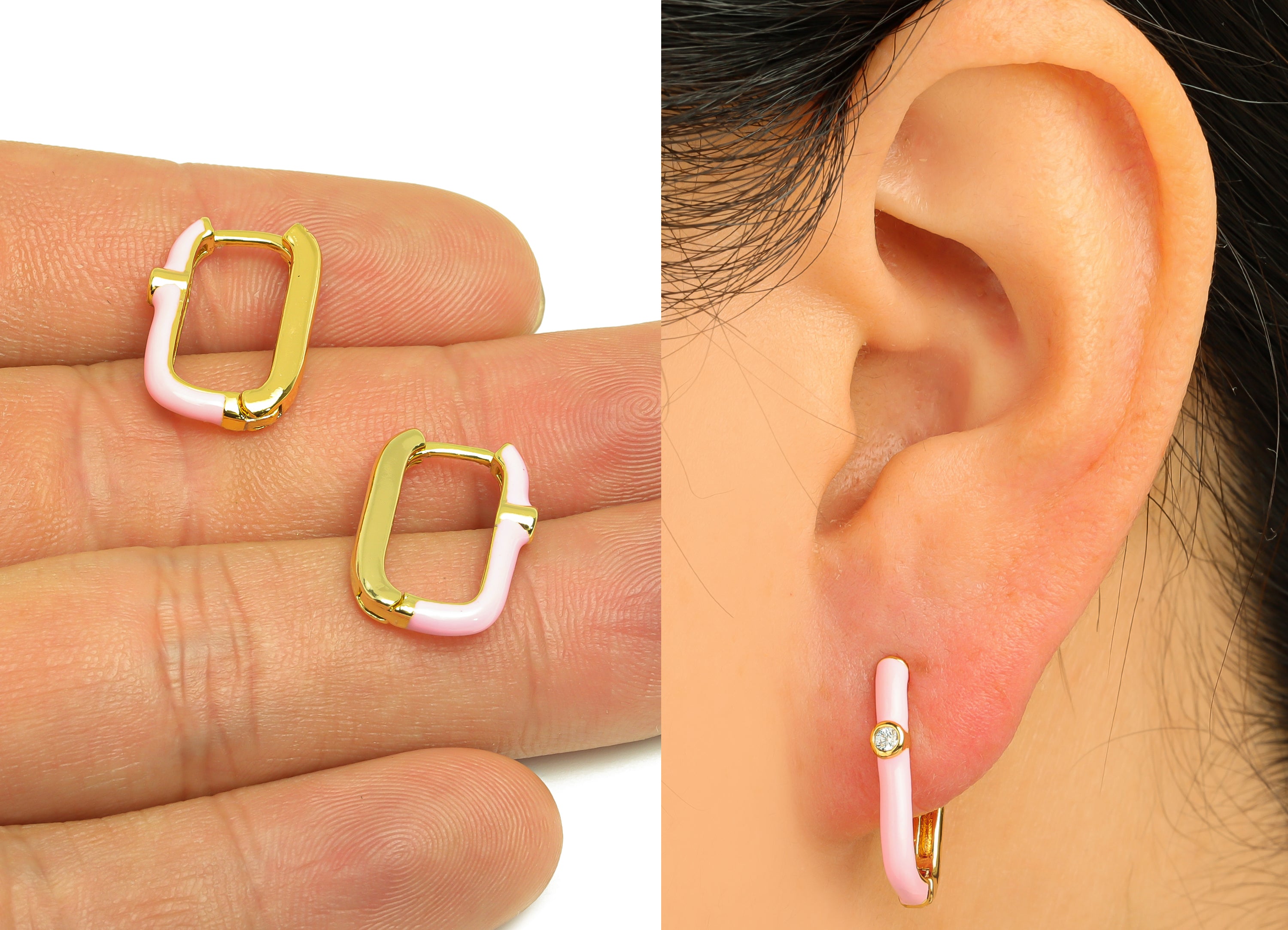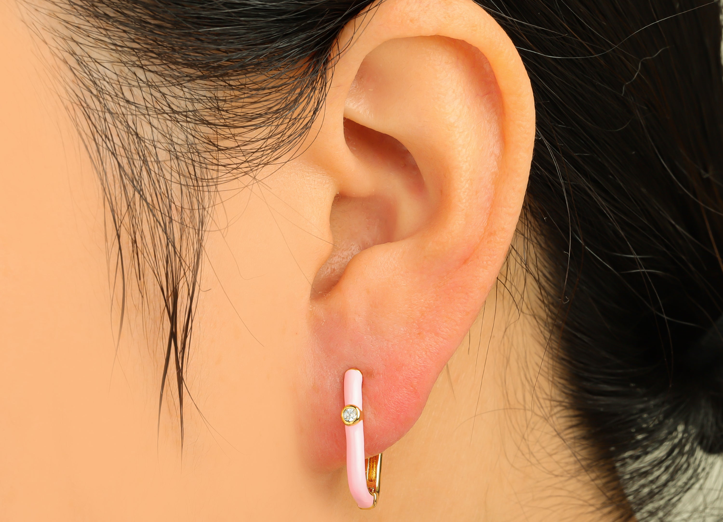 Huggie 环状耳环 - 黄铜 - 珐琅 - 立方锆石 - 18K 真金镀层 - 2.1 克 - MJ103252