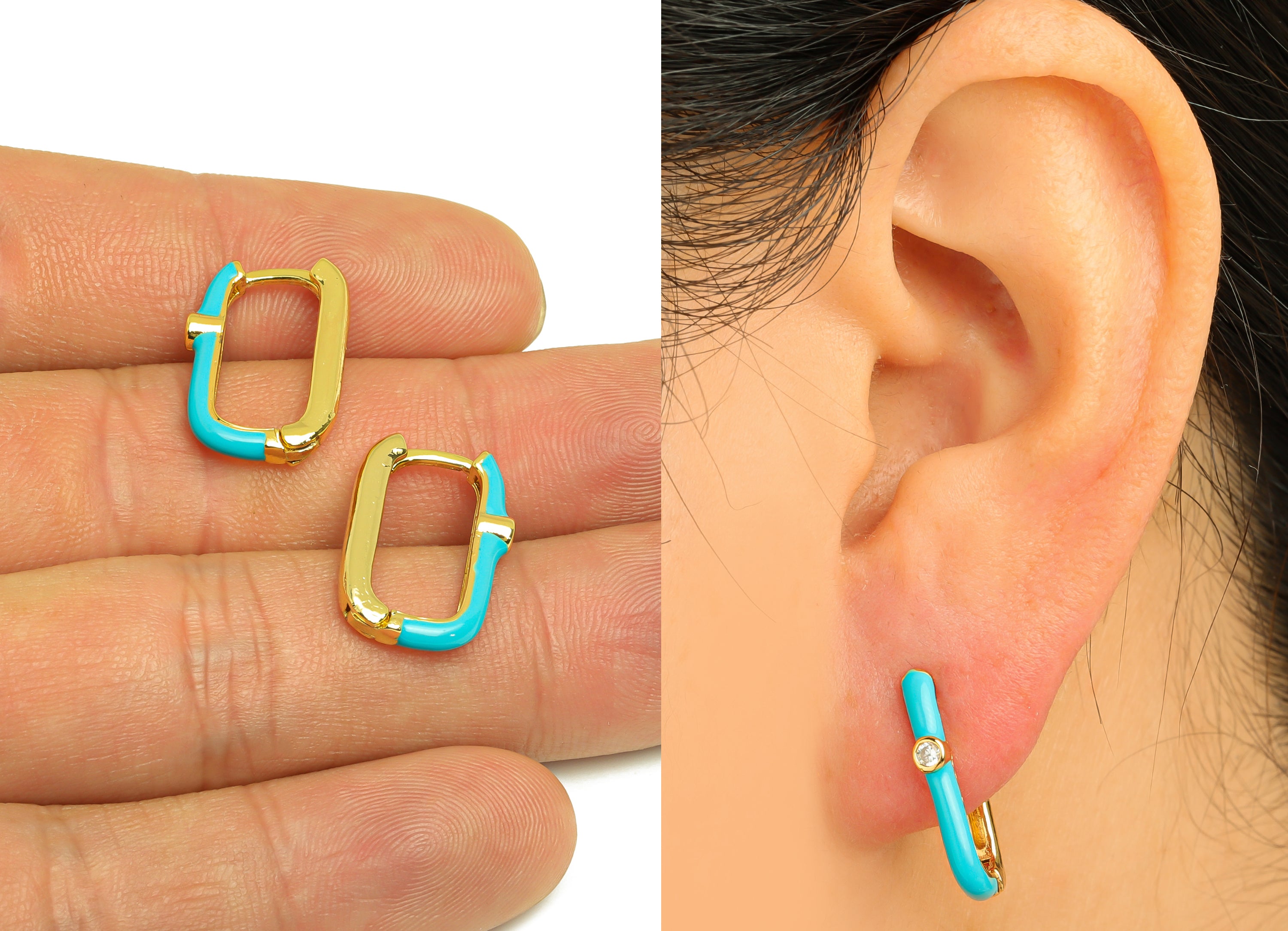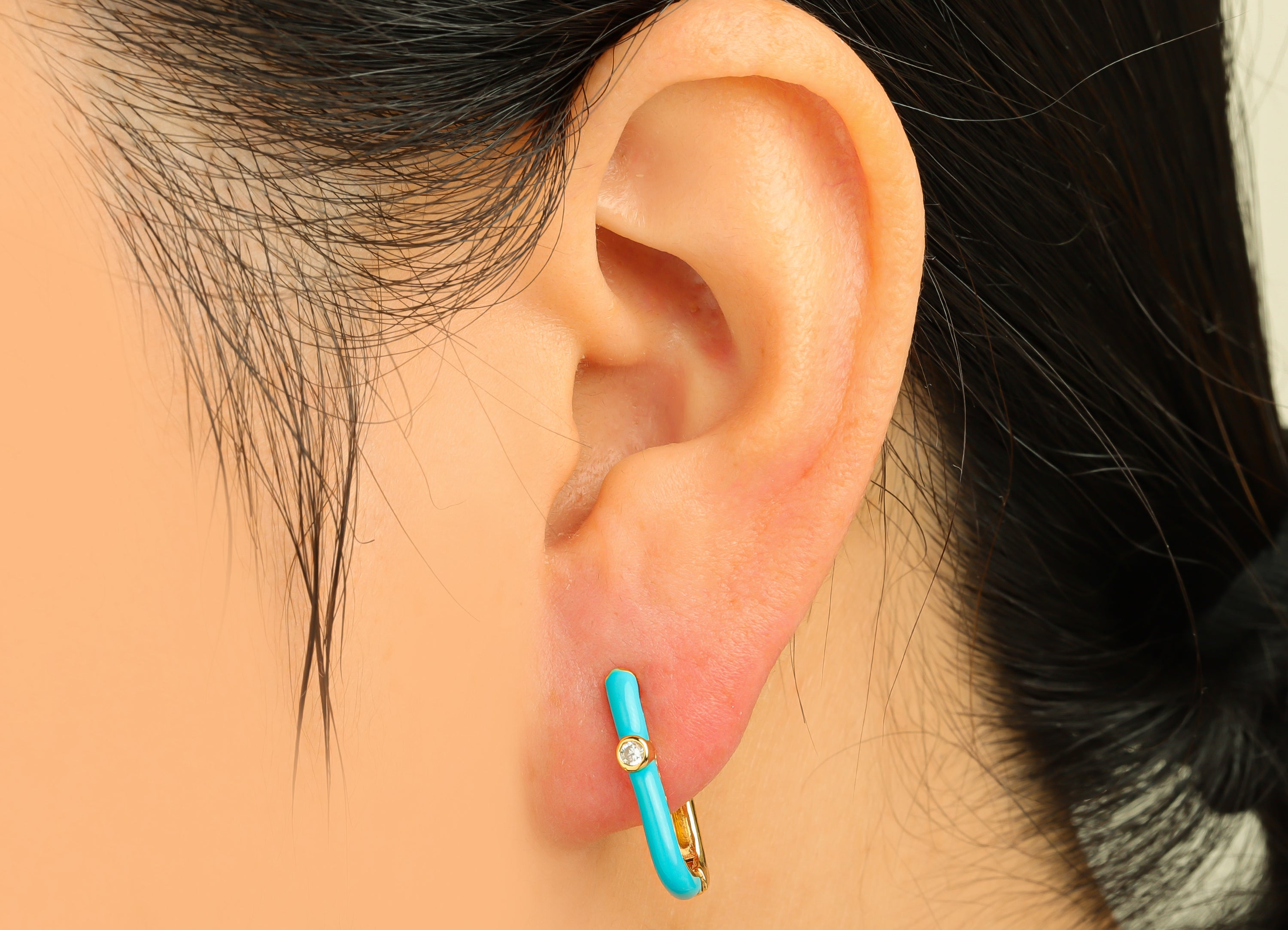 Huggie 环状耳环 - 黄铜 - 珐琅 - 立方锆石 - 18K 真金镀层 - 2.4 克 - MJ103253