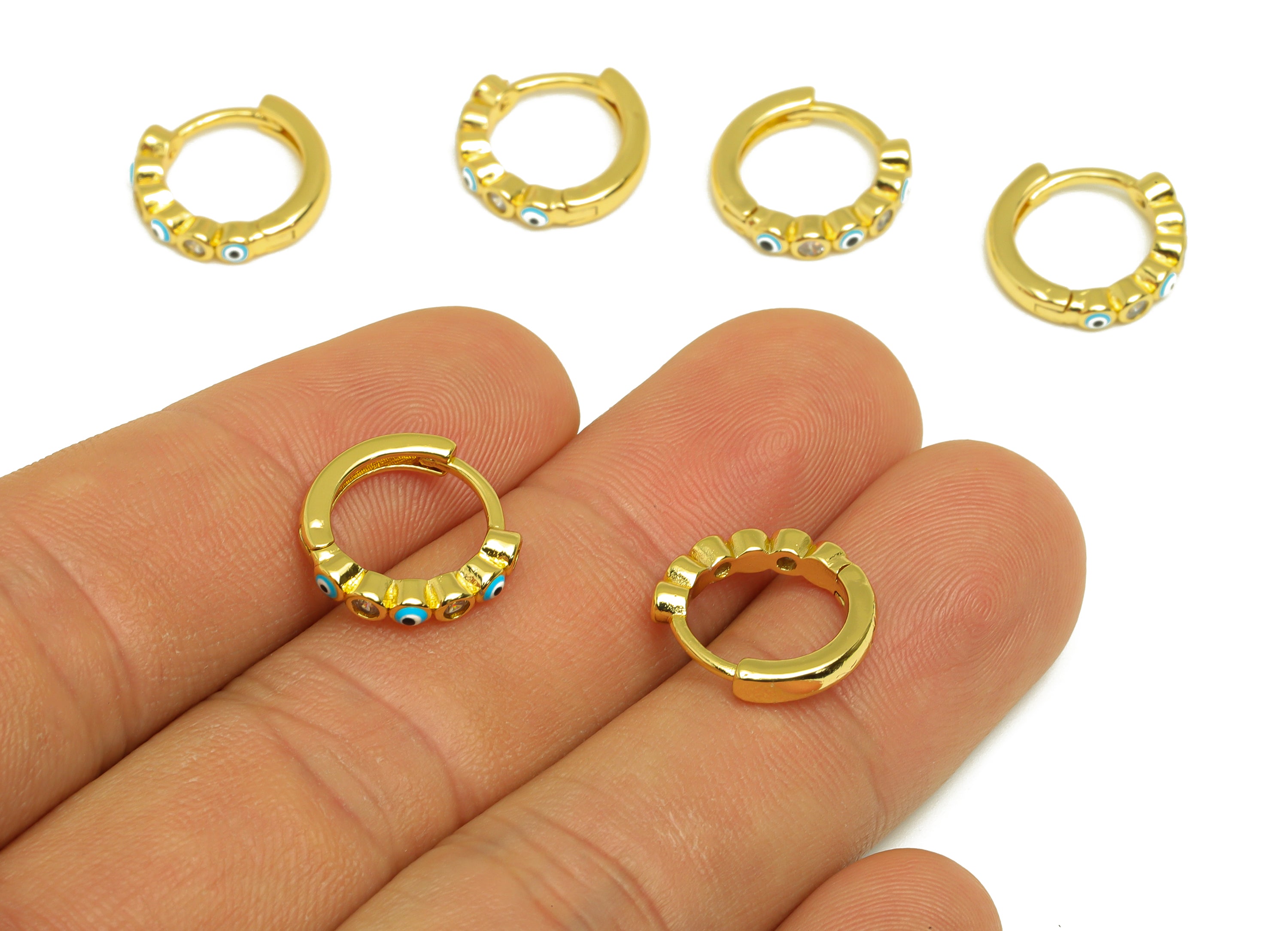 Huggie 环形耳环 - 黄铜 - 珐琅 - 方晶锆石 - 18K 真金镀层 - 2 克 - MJ103244