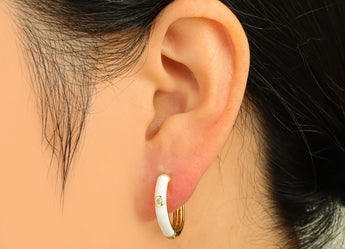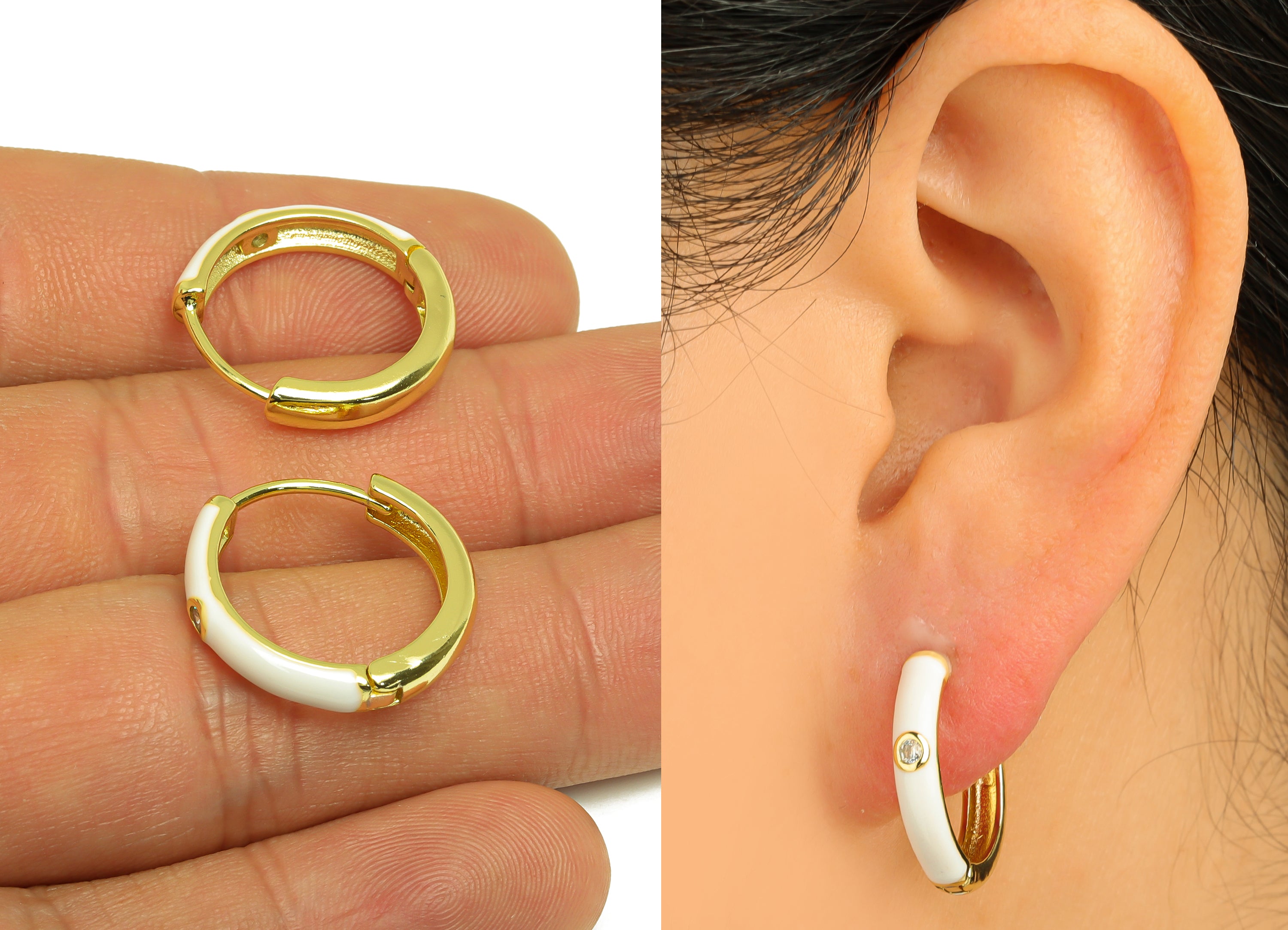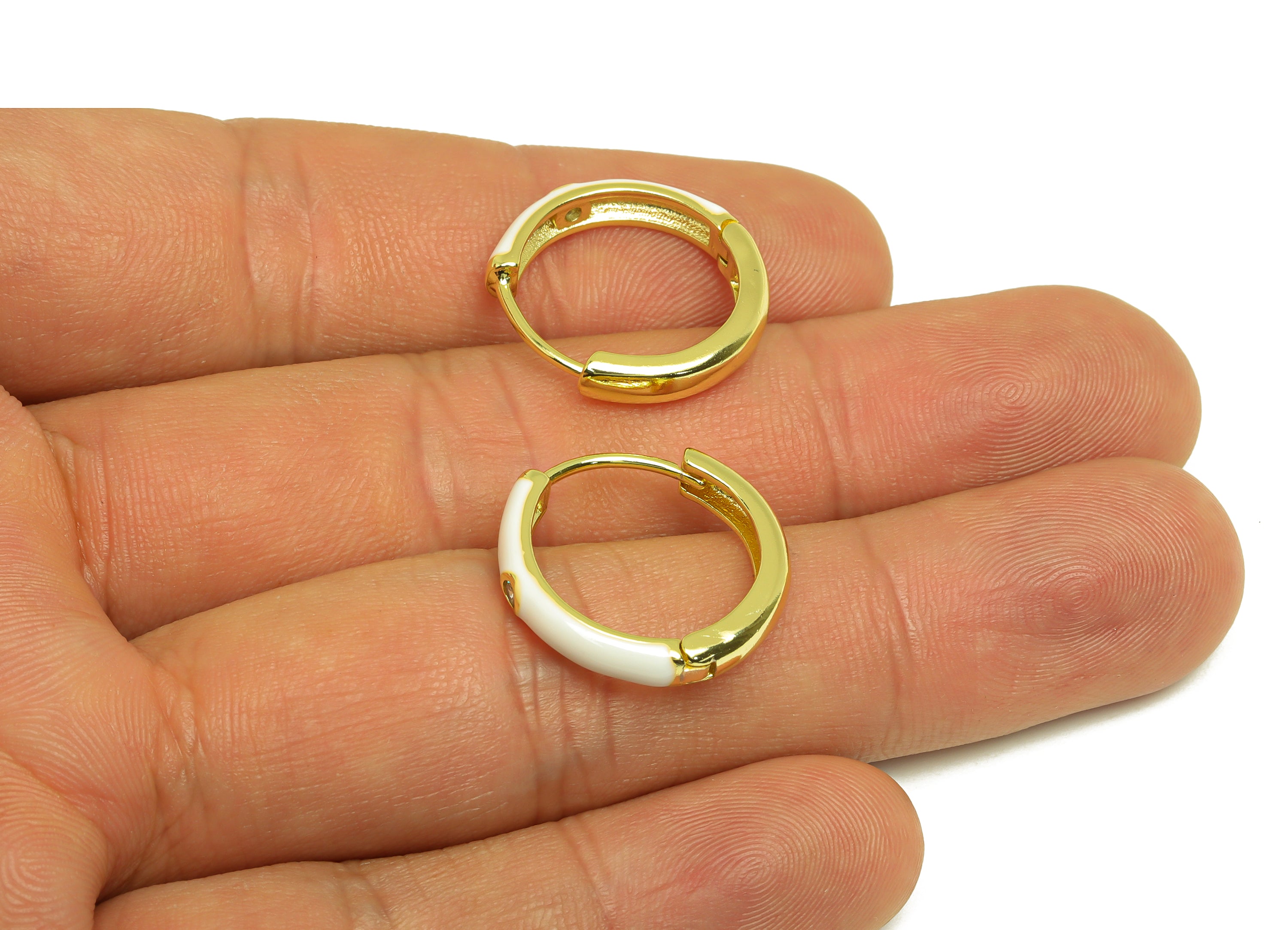 Huggie 环状耳环 - 黄铜 - 珐琅 - 立方锆石 - 18K 真金镀层 - 3.3 克 - MJ103248