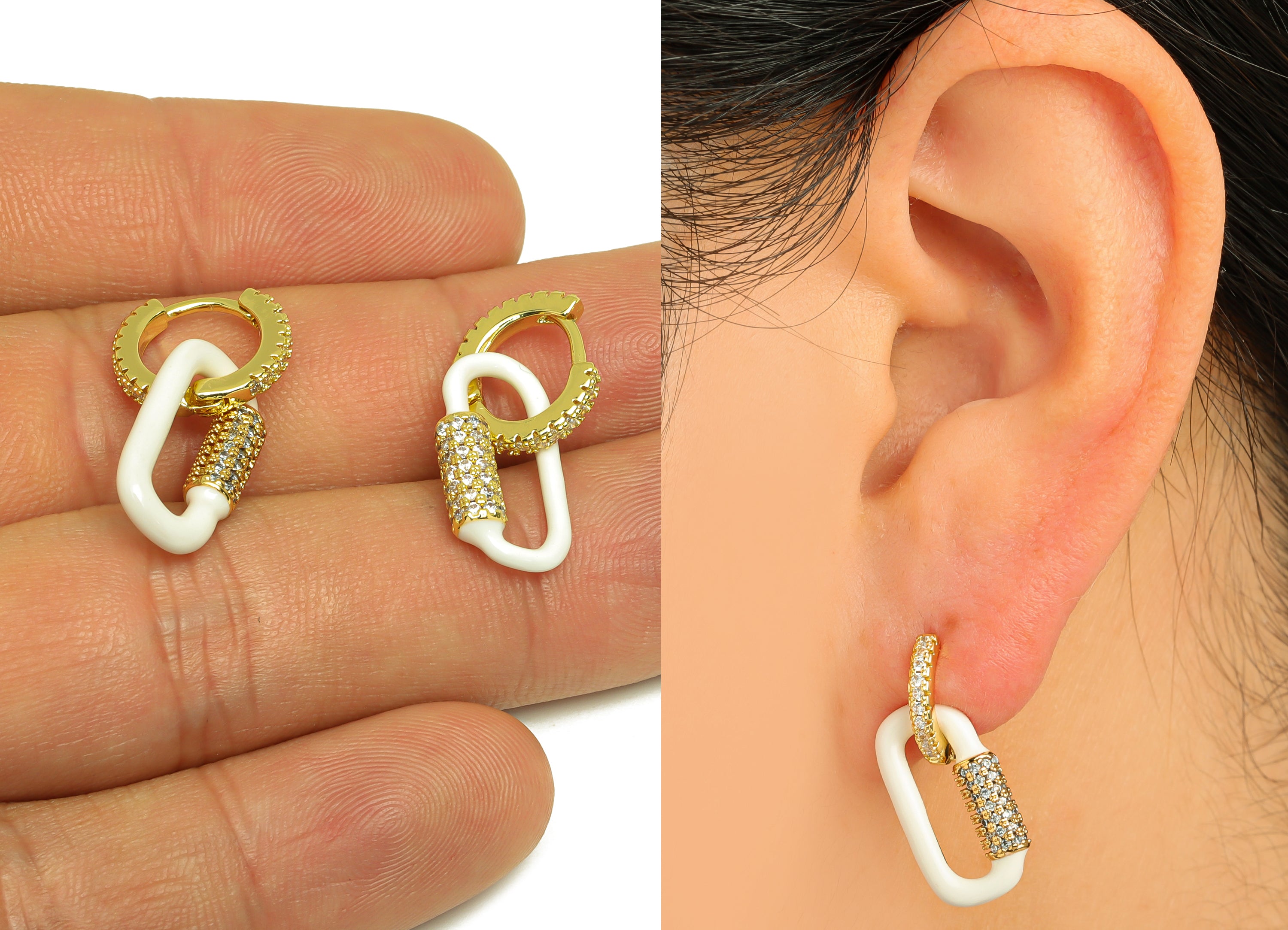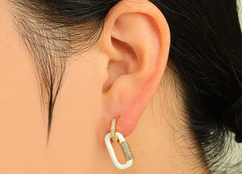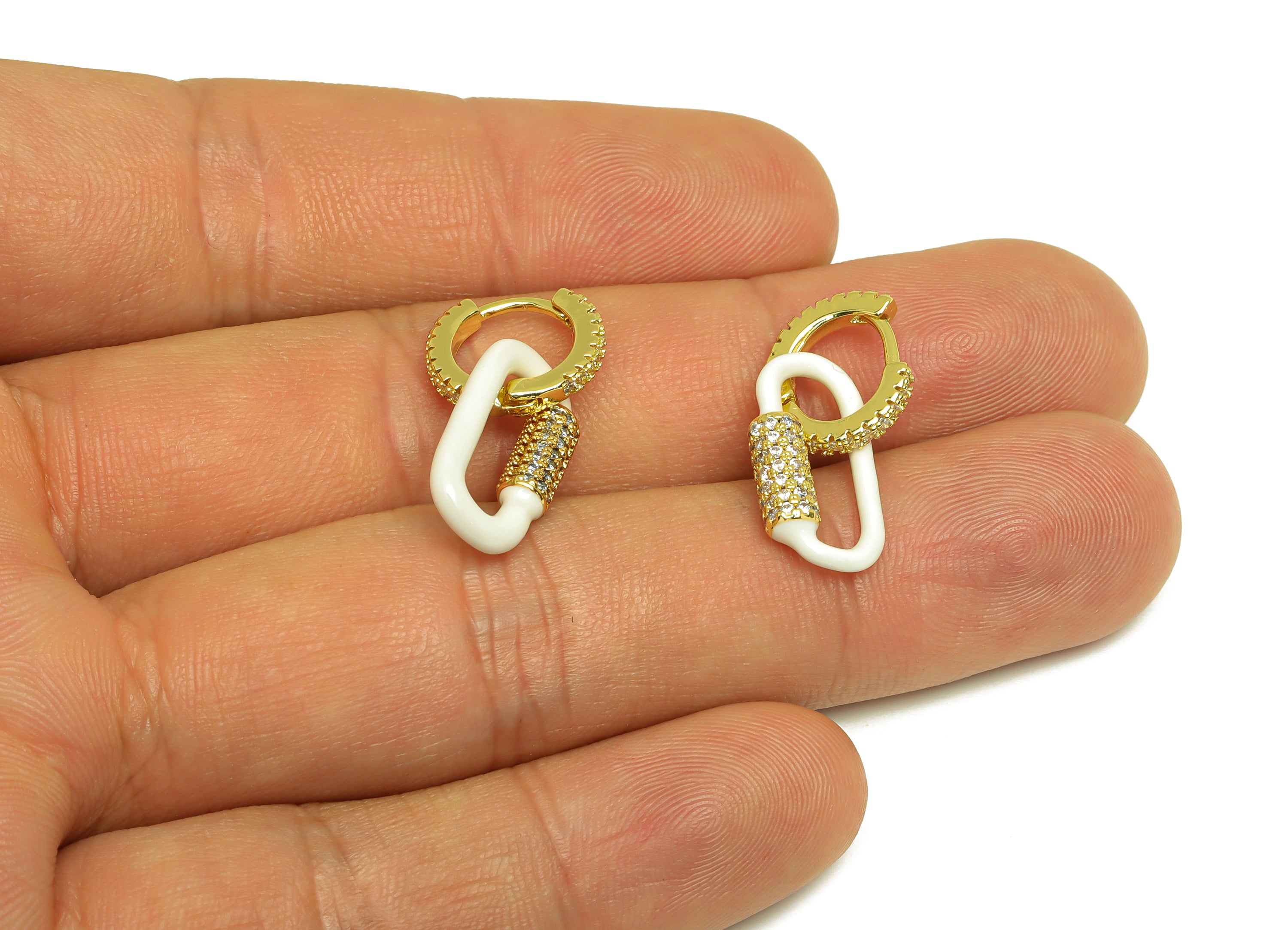 Huggie 环状耳环 - 黄铜 - 珐琅 - 方晶锆石 - 18K 真金镀层 - 3.7 克 - MJ103270