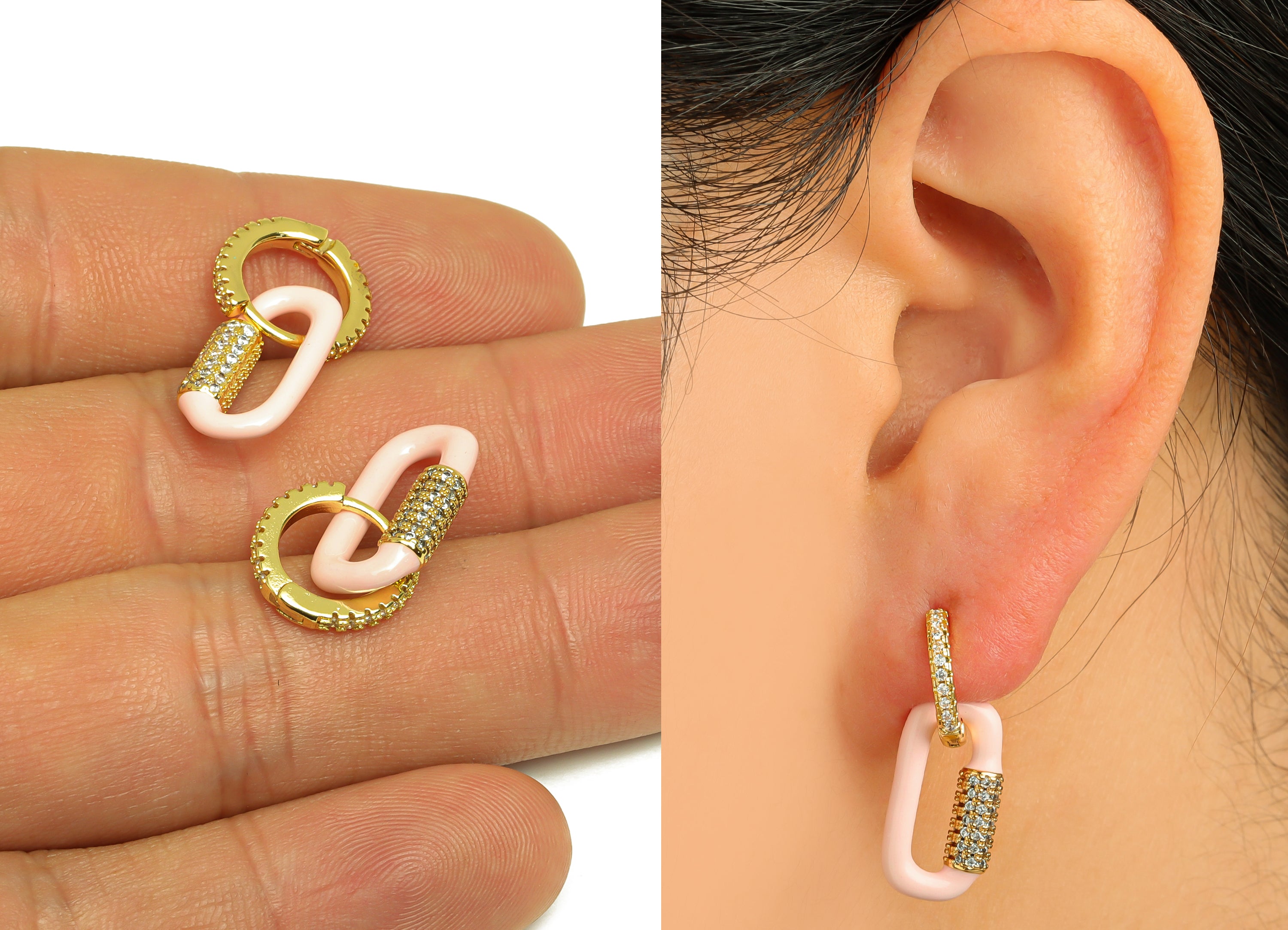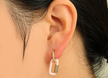 Huggie 环形耳环 - 黄铜 - 珐琅 - 方晶锆石 - 18K 真金镀层 - 4 克 - MJ103271