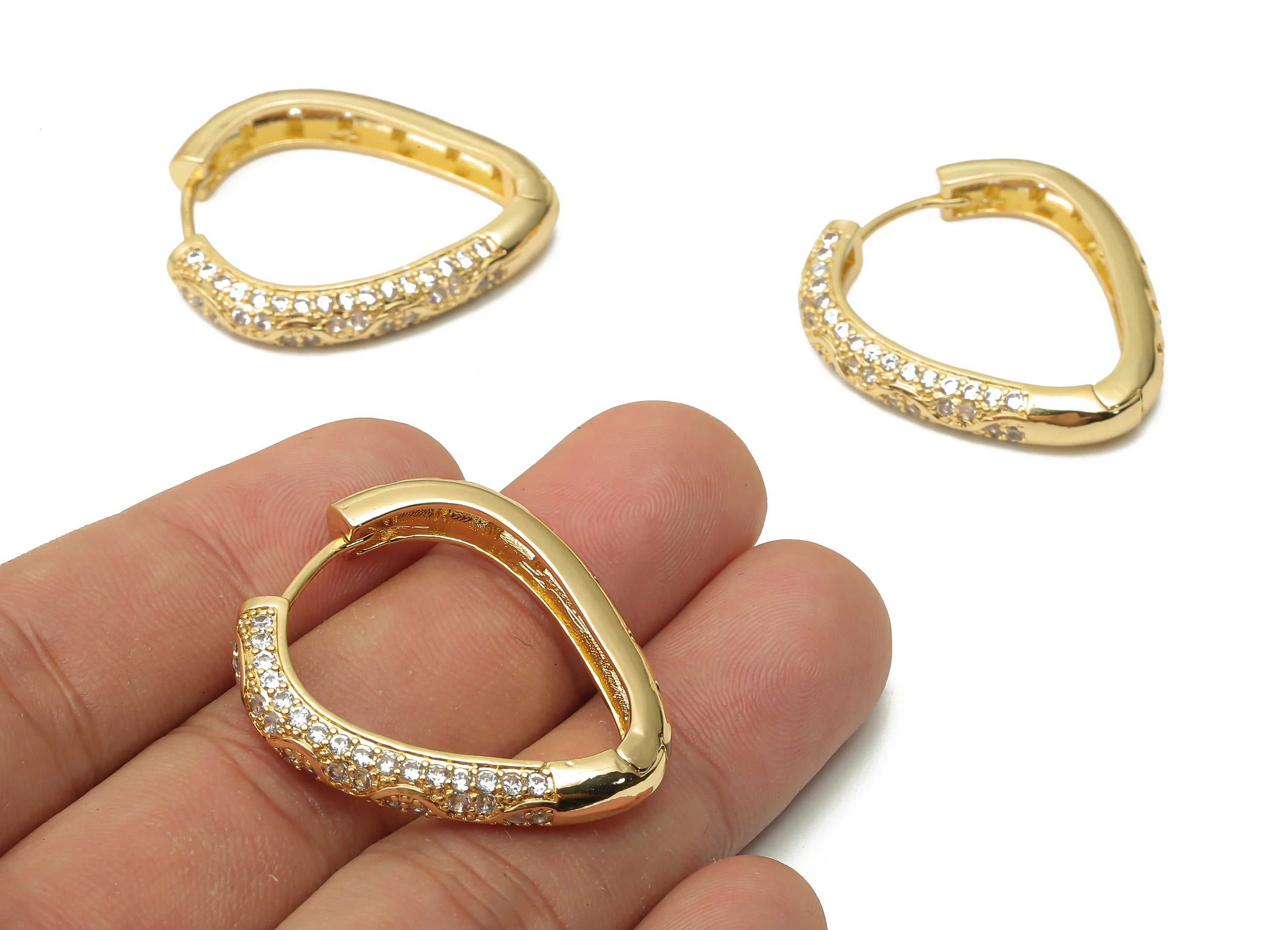 Huggie 环形耳环 - 黄铜 - 锆石 - 18k 真金镀黄铜 - 15 克 - MJ200248