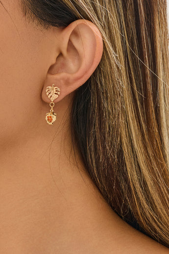 推回式耳钉 - 黄铜 - 316 不锈钢 - 方晶锆石 - 18K 真金镀金 - 7.9 克 - MJ105012