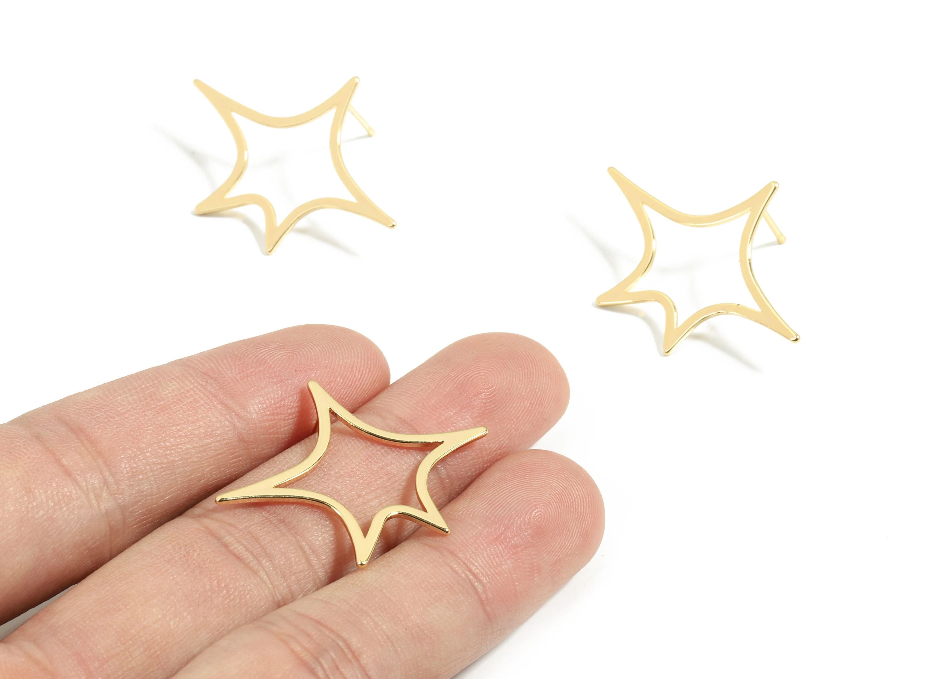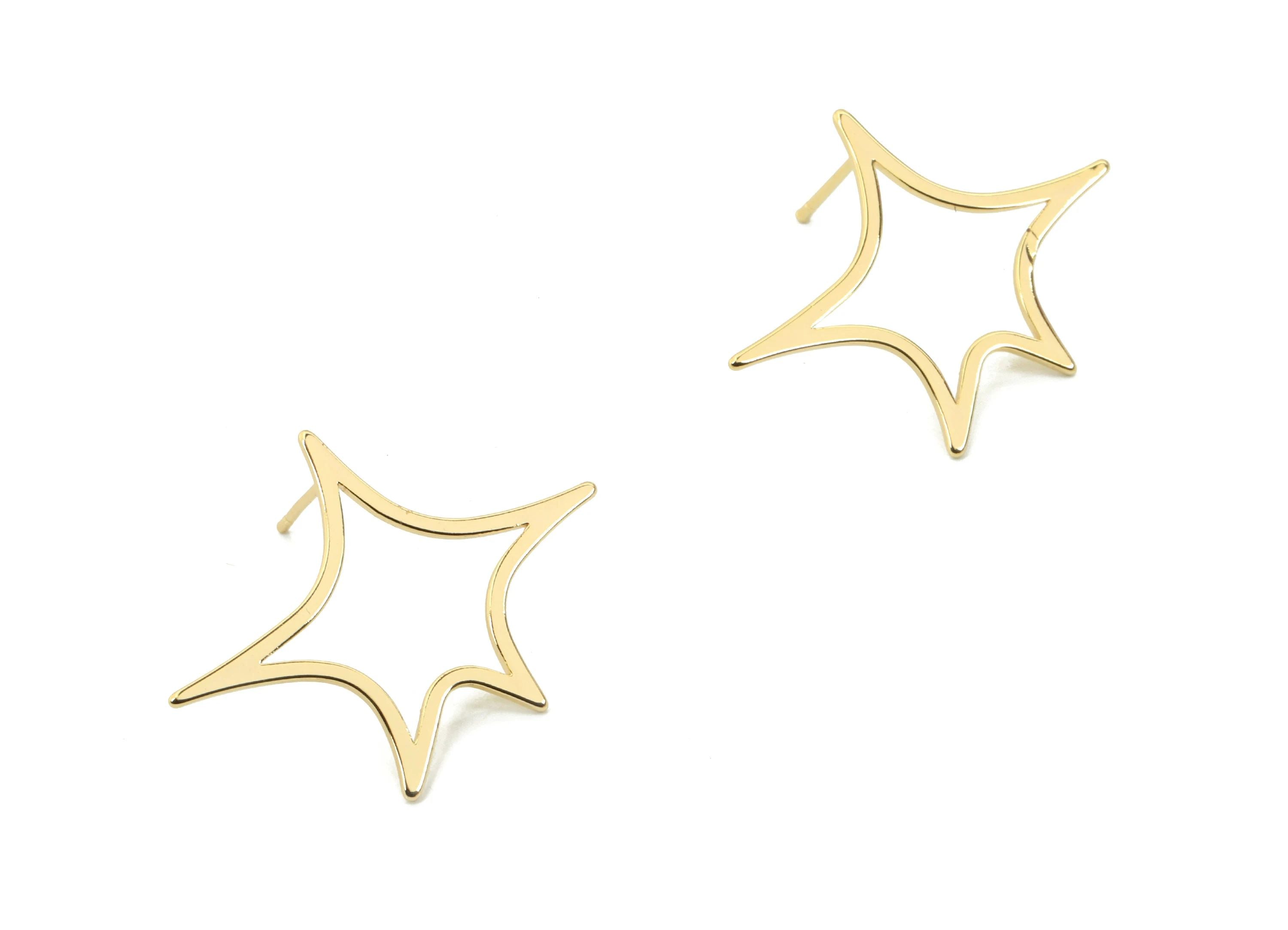 推回式耳钉 - 黄铜 - 316 不锈钢耳钉 - 18k 真金镀金 - 4.5 克 - MJ200592