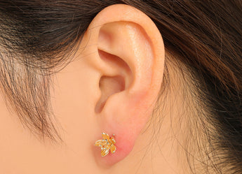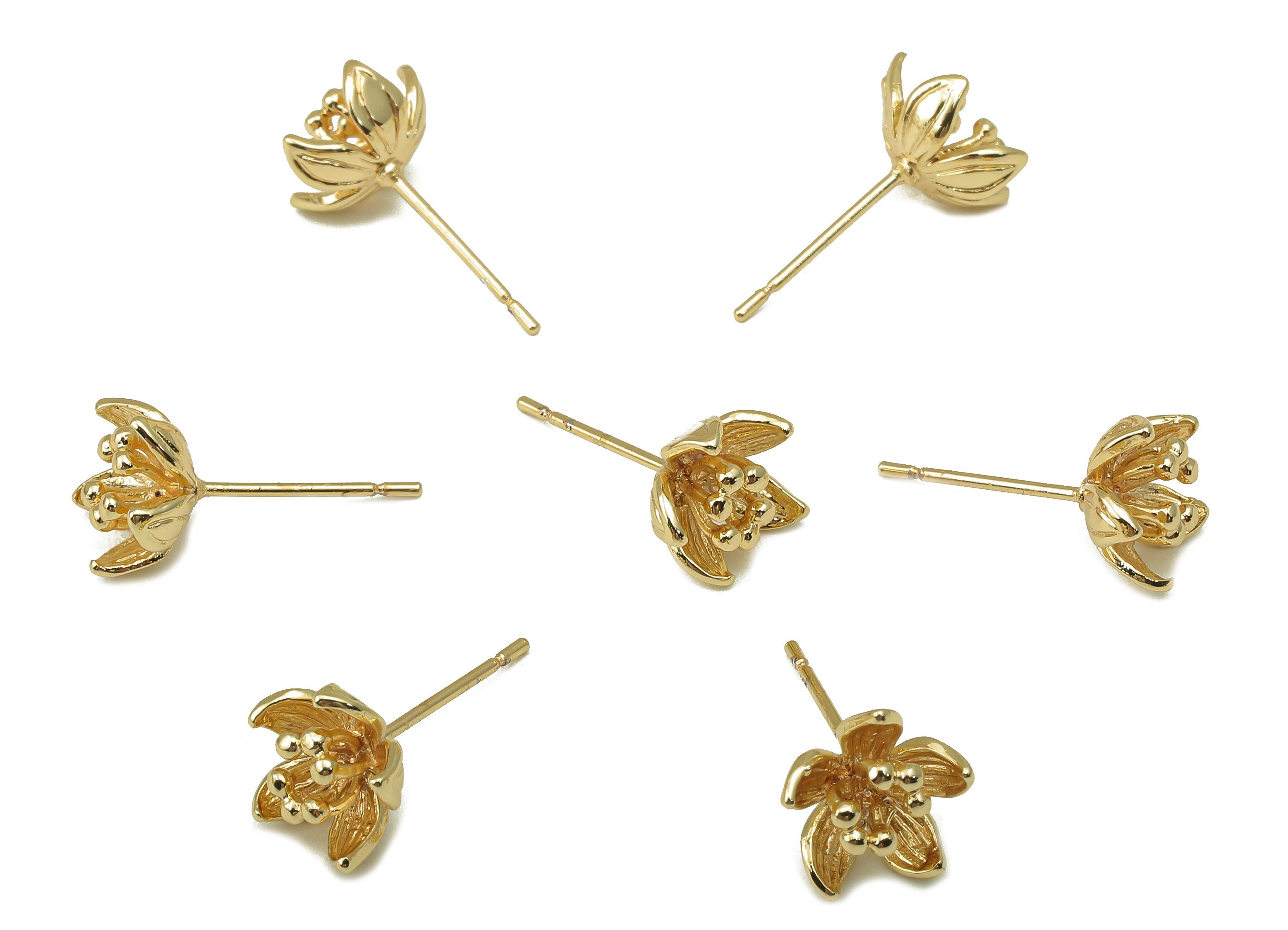 推回式耳钉 - 黄铜 - 316 不锈钢耳钉 - 18K 真金镀黄铜 - 3.2 克 - MJ200434