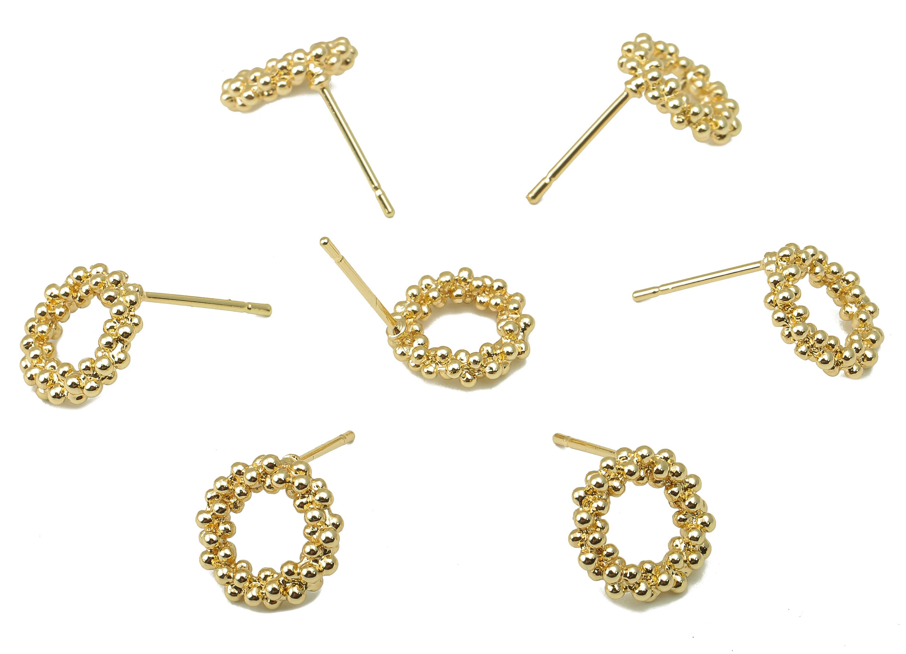推回式耳钉 - 黄铜 - 316 不锈钢耳钉 - 18K 真金镀黄铜 - 3.7 克 - MJ200453