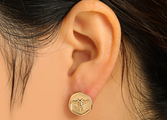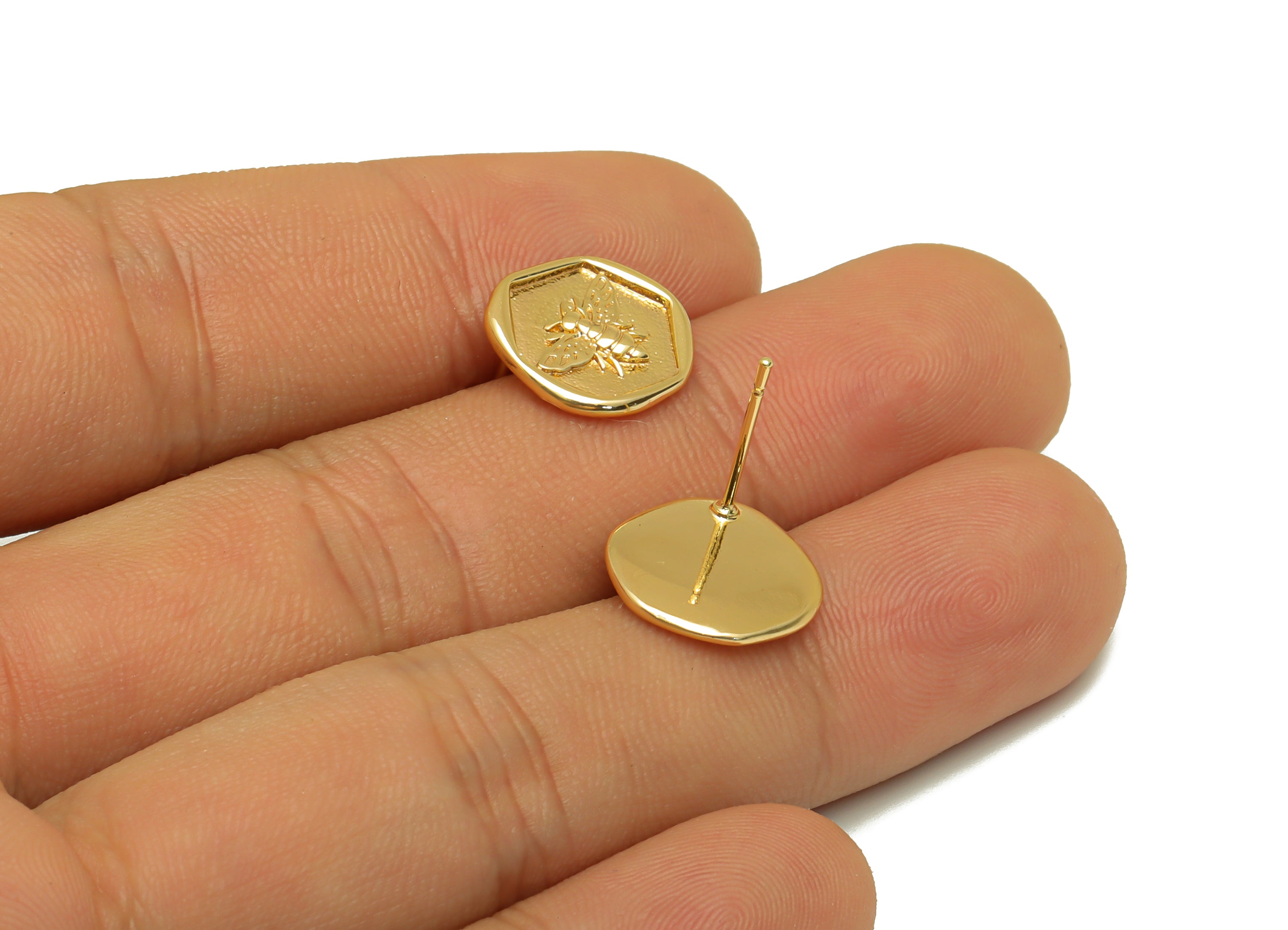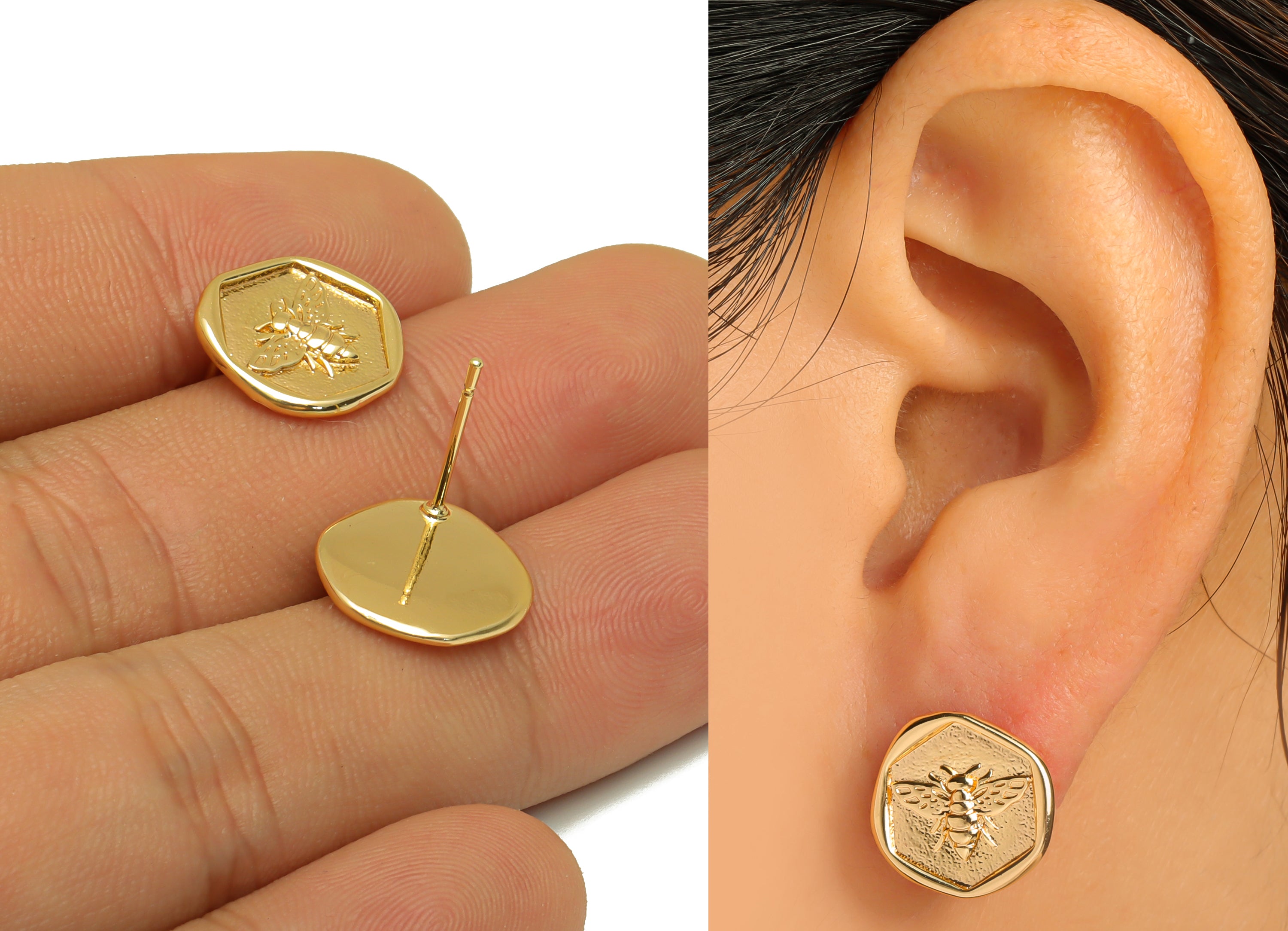 推回式耳钉 - 黄铜 - 316 不锈钢耳钉 - 18K 真金镀黄铜 - 4.5 克 - MJ200394