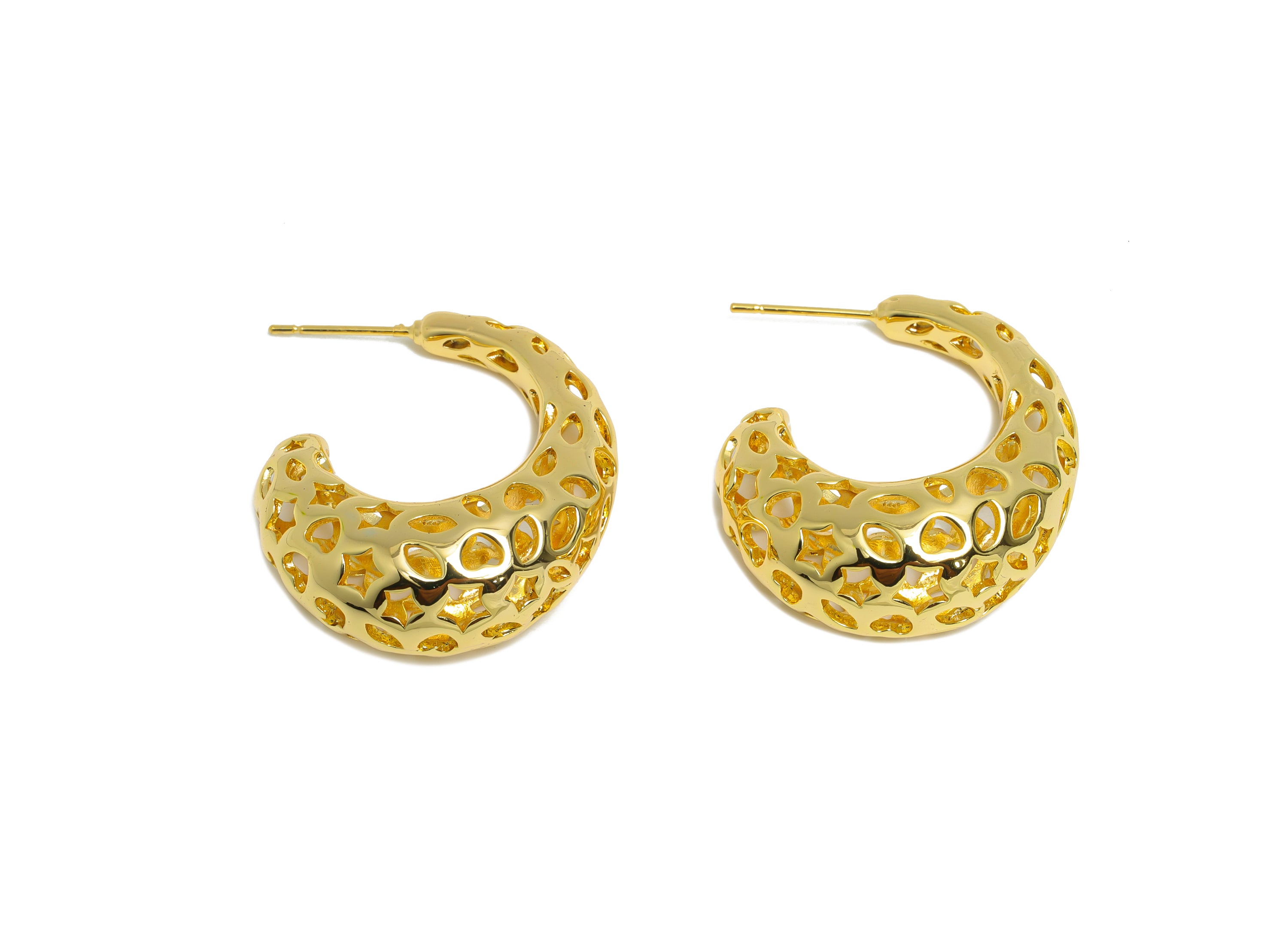 推回式耳钉 - 黄铜 - 316 不锈钢耳钉 - 18K 真金镀层 - 10.1 克 - MJ102824