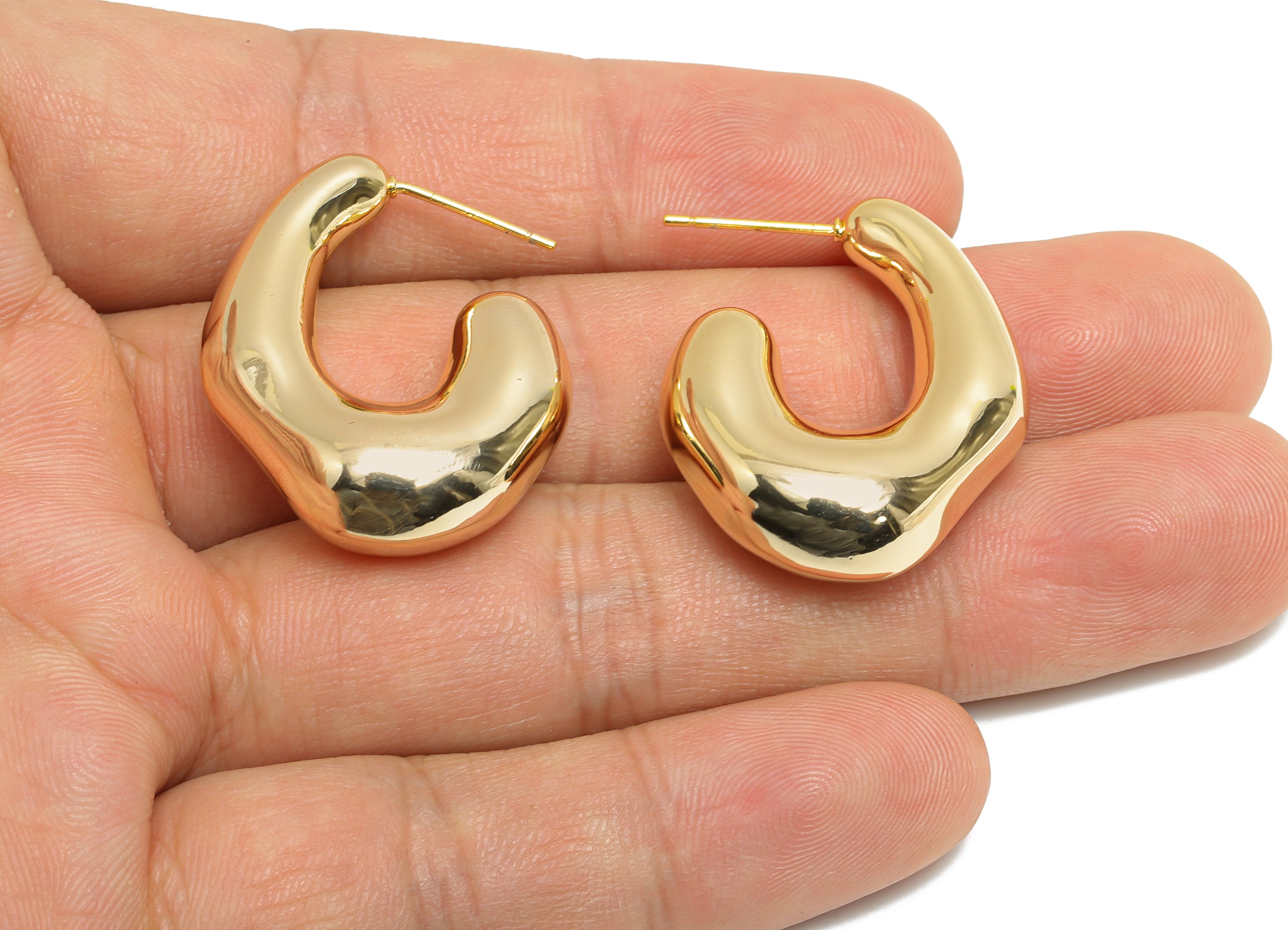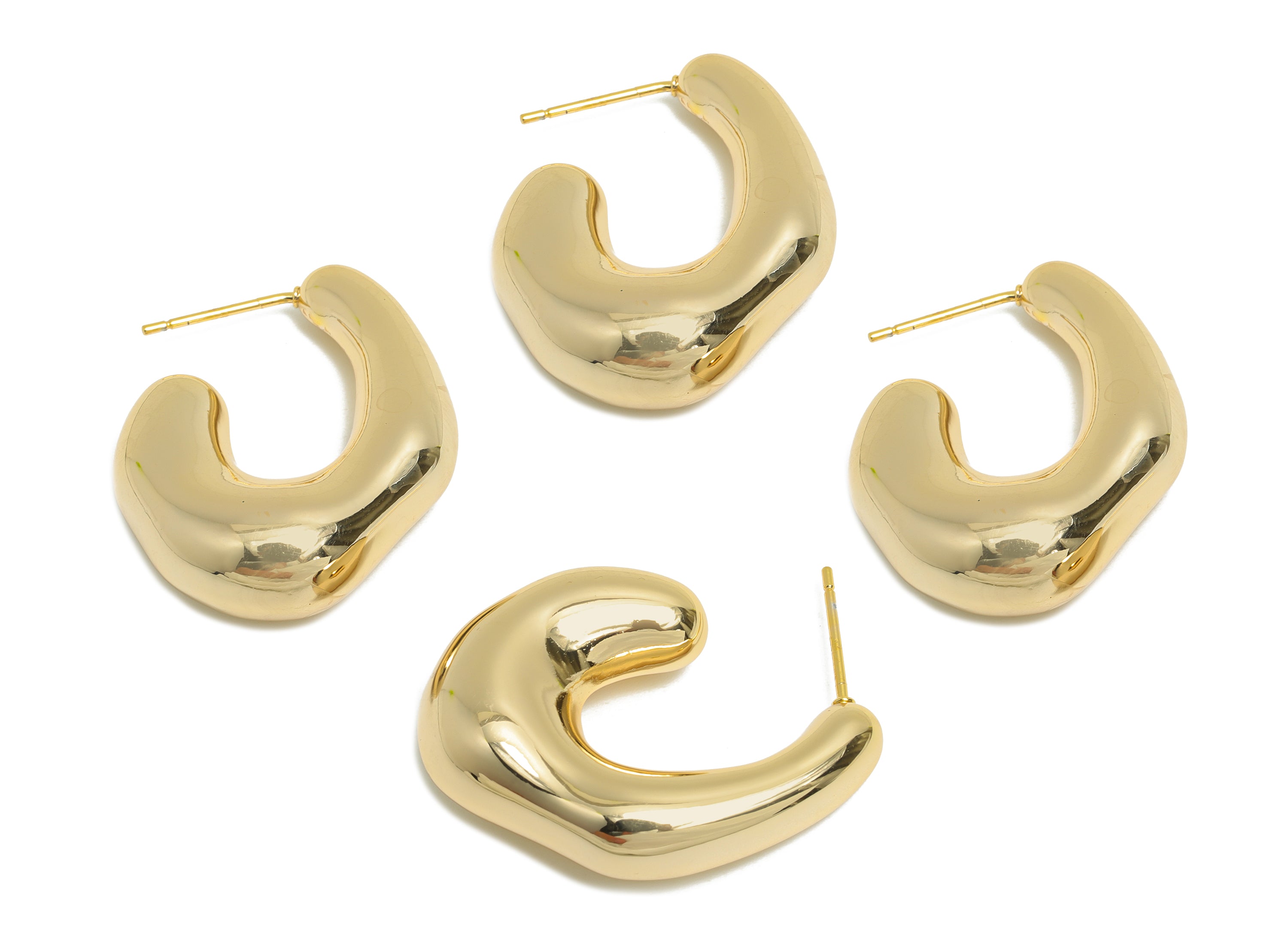 推回式耳钉 - 黄铜 - 316 不锈钢耳钉 - 18K 真金镀层 - 10.3 克 - MJ102923