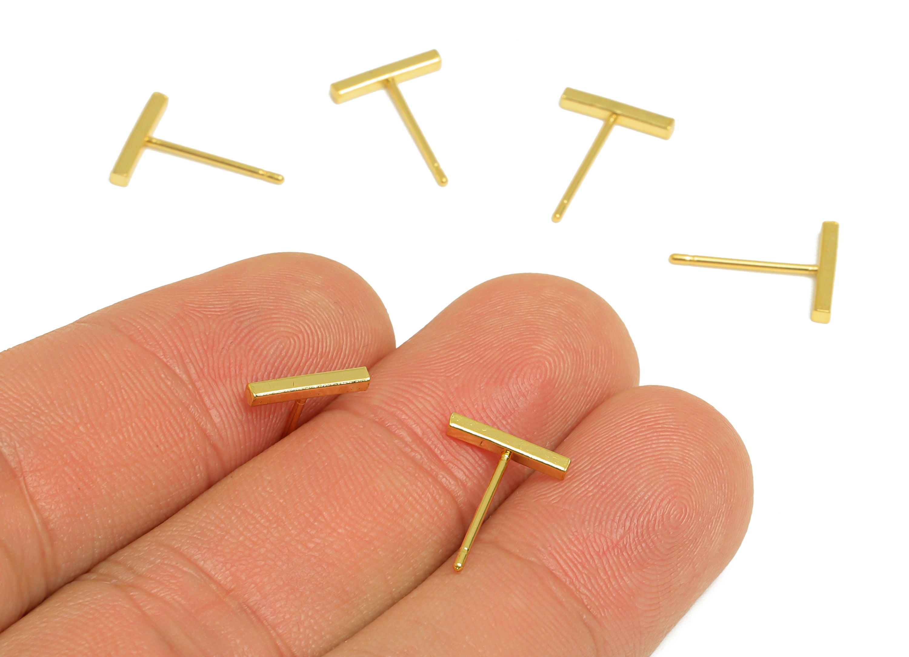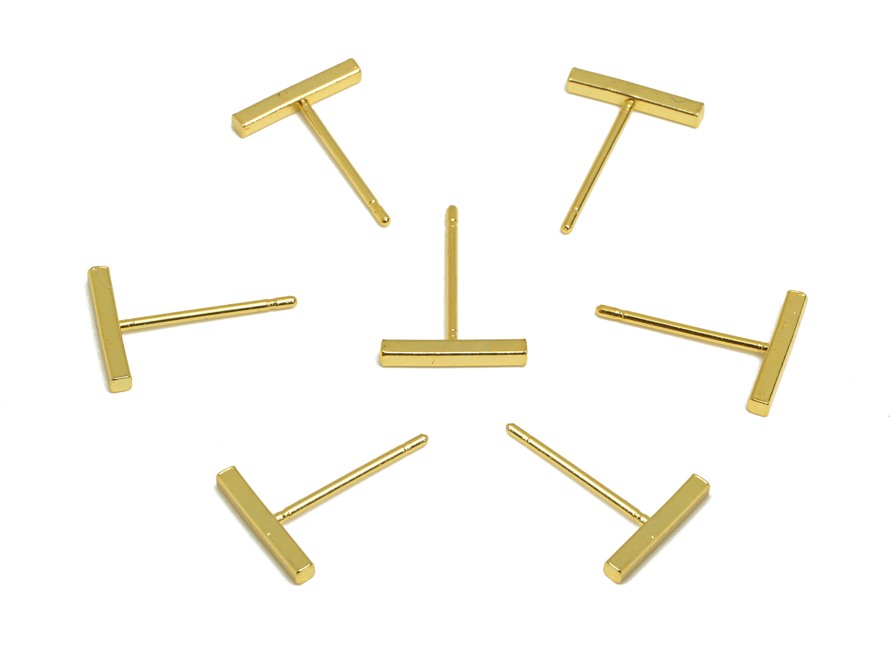 推回式耳钉 - 黄铜 - 316 不锈钢耳钉 - 18k 真金镀层 - 2.5 克 - MJ200647