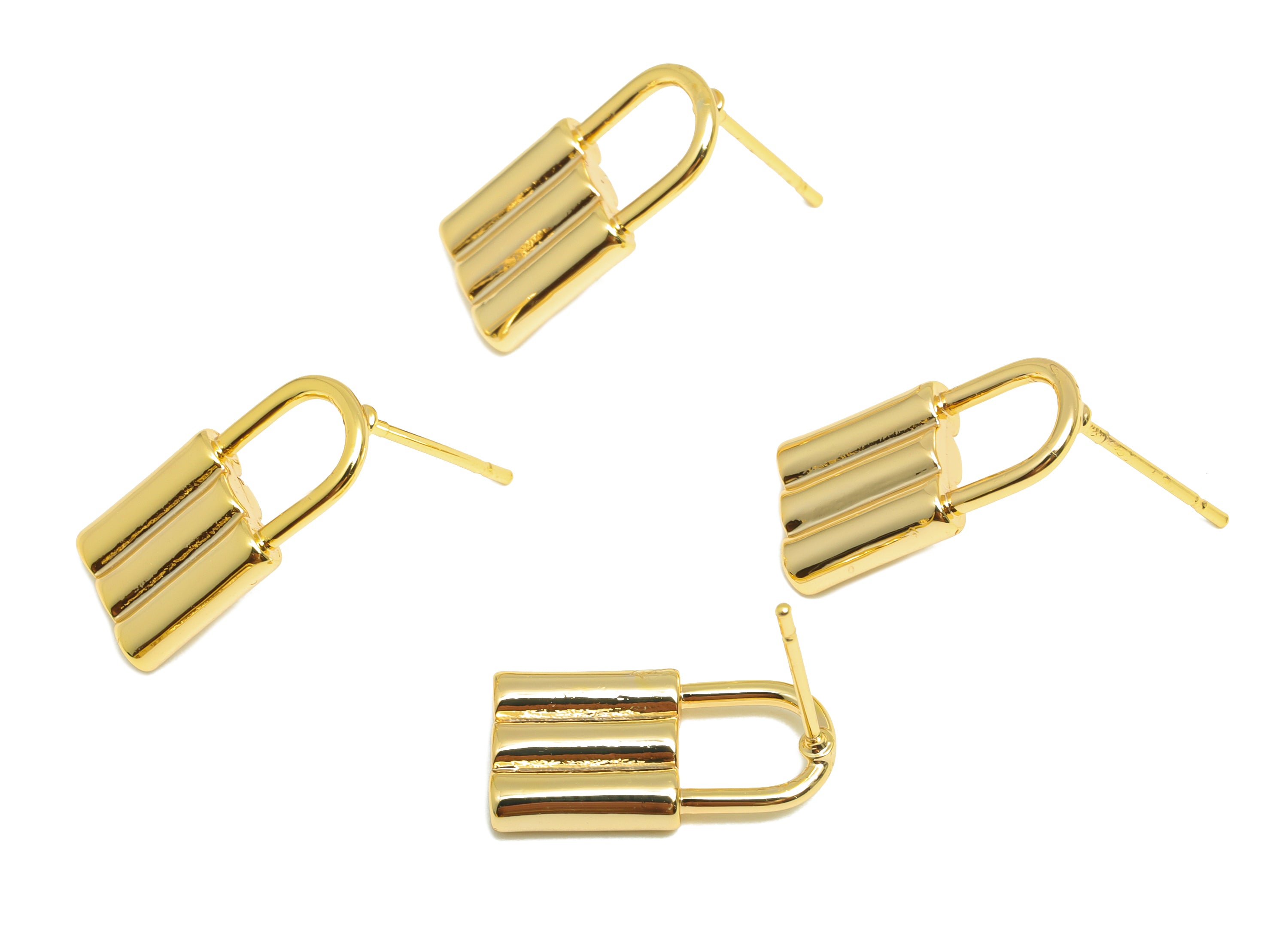 推回式耳钉 - 黄铜 - 316 不锈钢耳钉 - 18K 真金镀层 - 3.6 克 - MJ104067