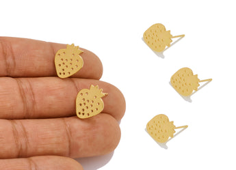 推回式耳钉 - 黄铜 - 316 不锈钢耳钉 - 18K 真金镀层 - 4.2 克 - MJ201412