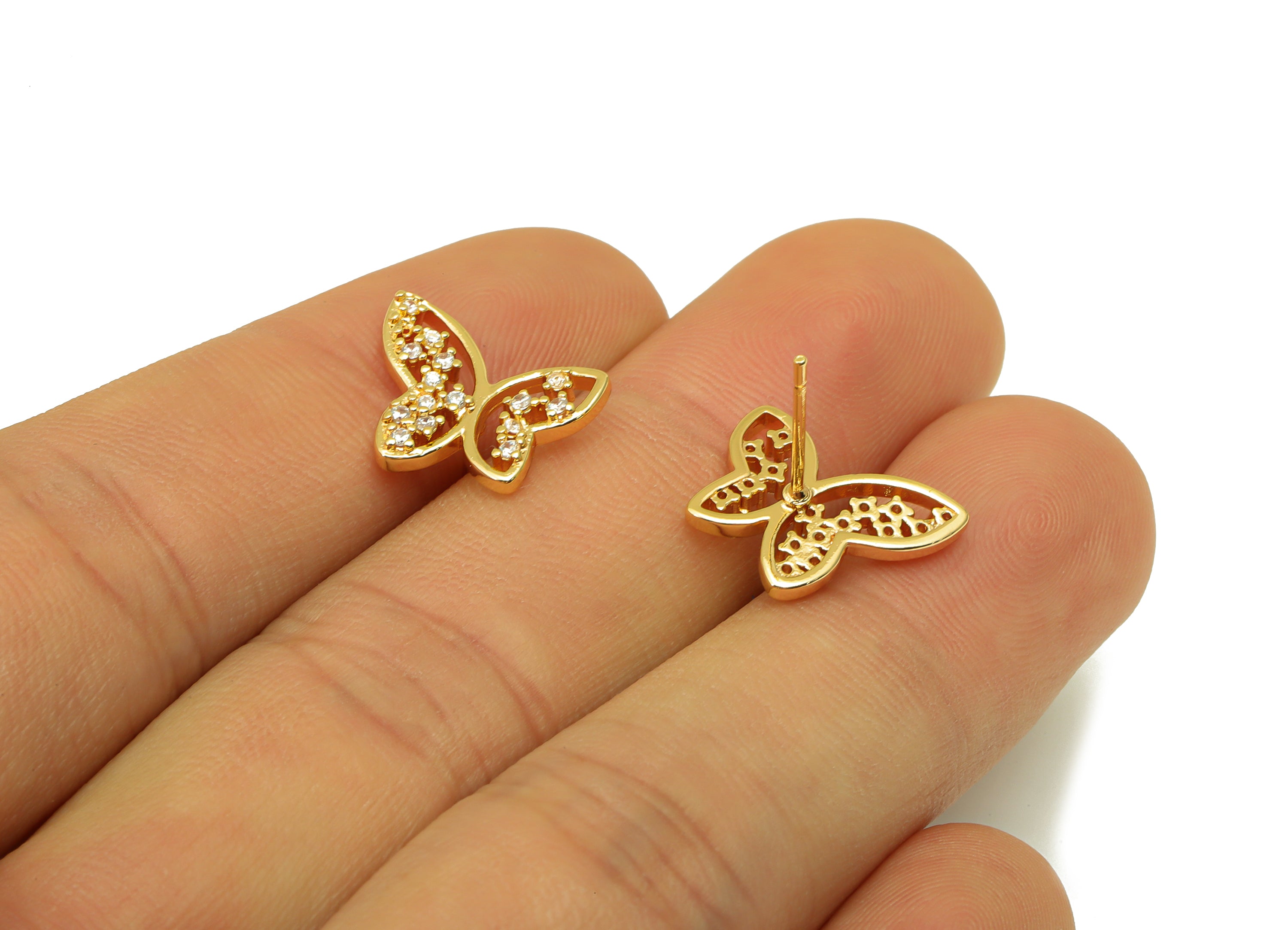 推回式耳钉 - 黄铜 - 316 不锈钢耳钉 - 18K 真金镀层 - 4 克 - MJ200596