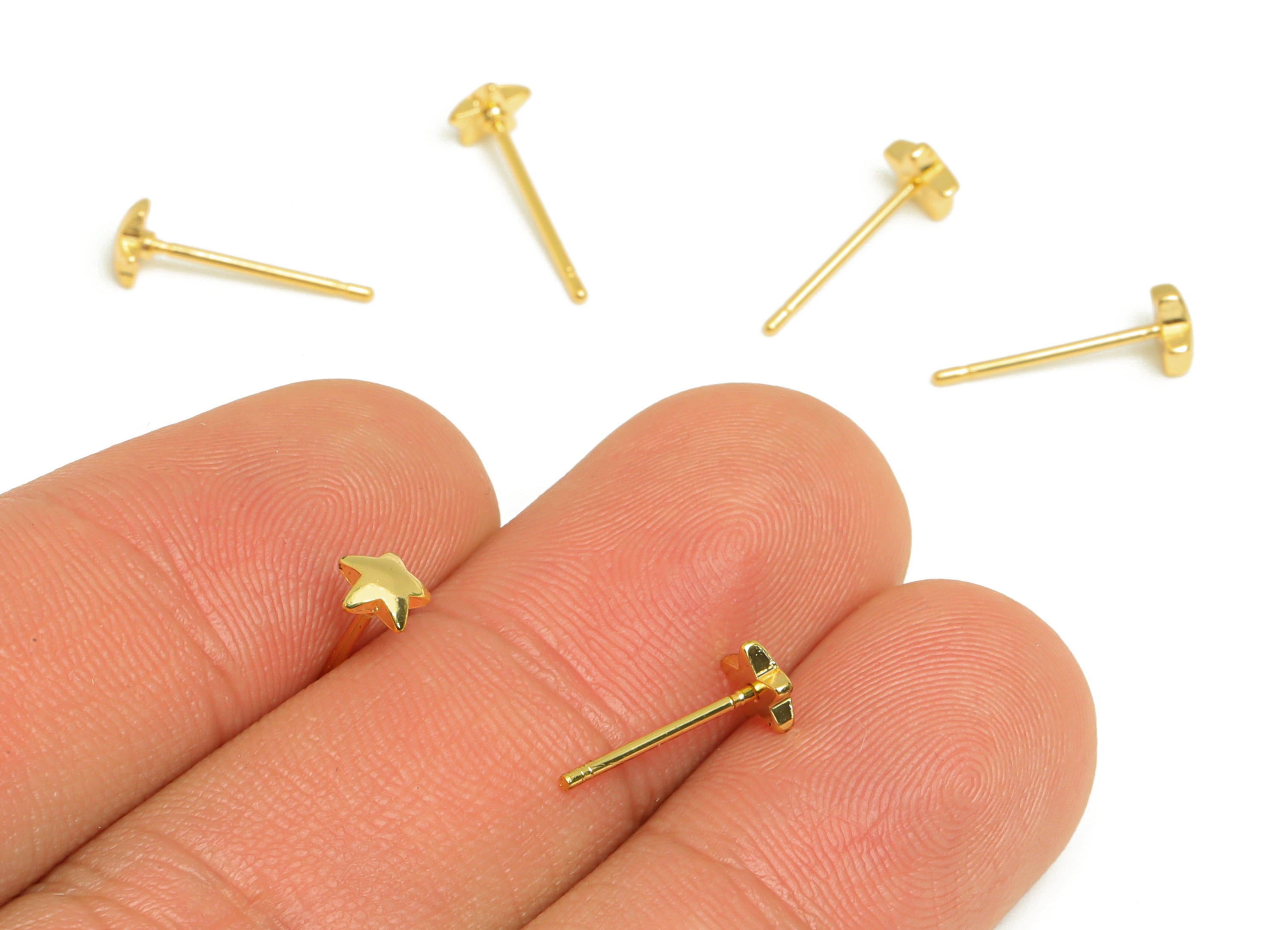 推回式耳钉 - 黄铜 - 316 医用不锈钢 - 18k 真金镀层 - 2.4 克 - MJ201402