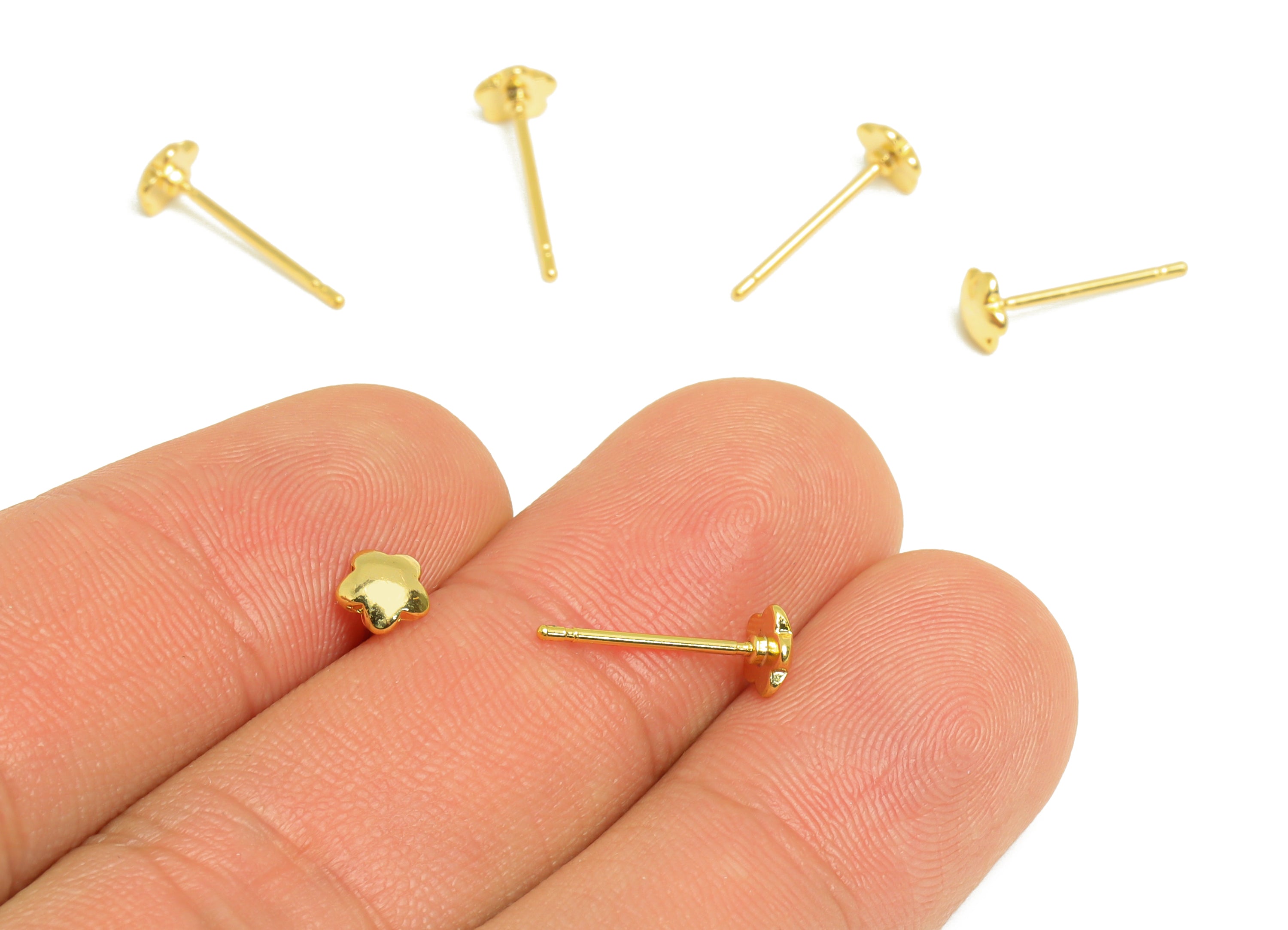 推回式耳钉 - 黄铜 - 316 医用不锈钢 - 18k 真金镀层 - 2.5 克 - MJ200653