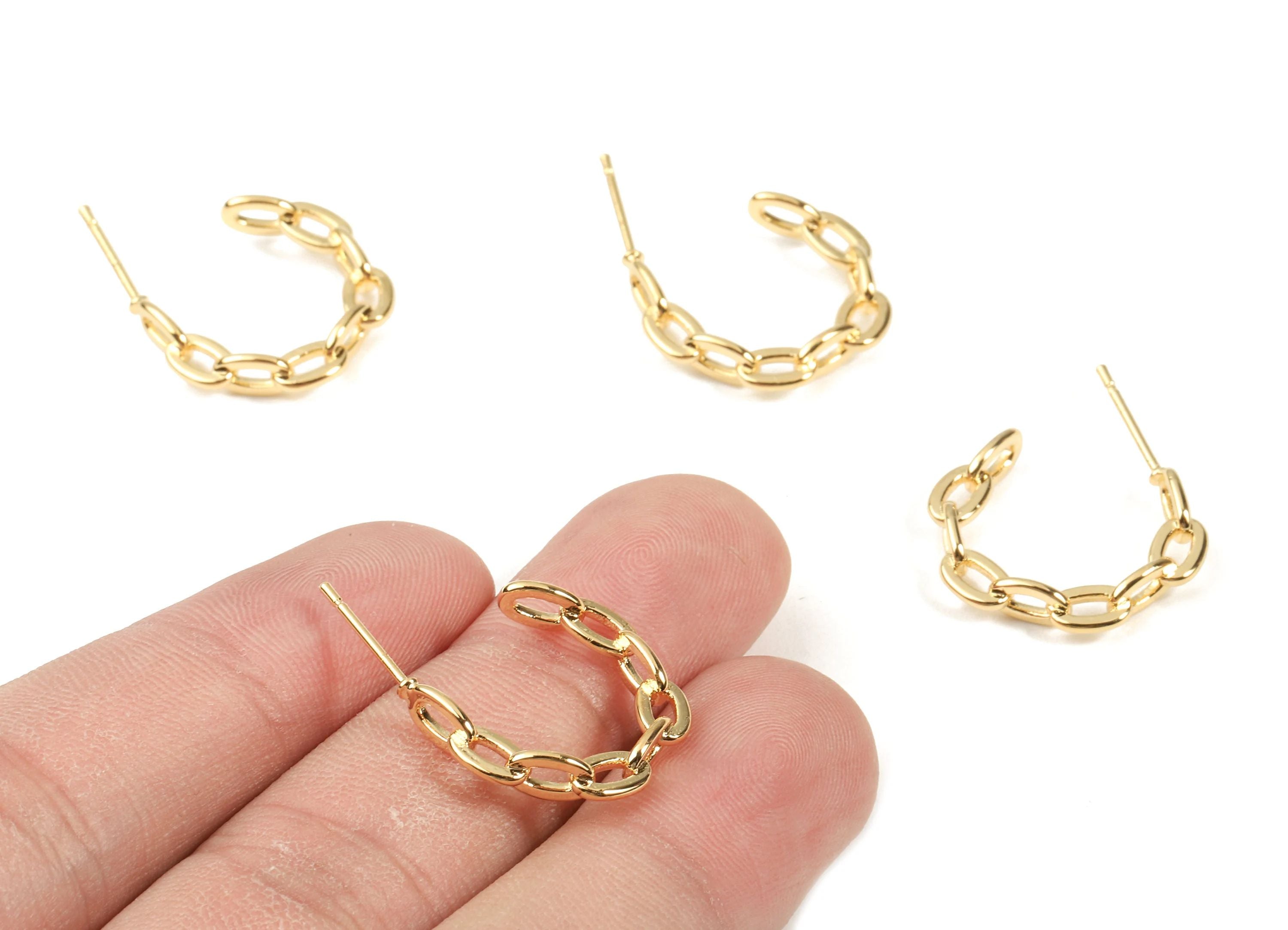 推回式耳钉 - 黄铜 - 316 医用不锈钢耳钉 - 18K 真金镀层 - 5.1 克 - MJ200614